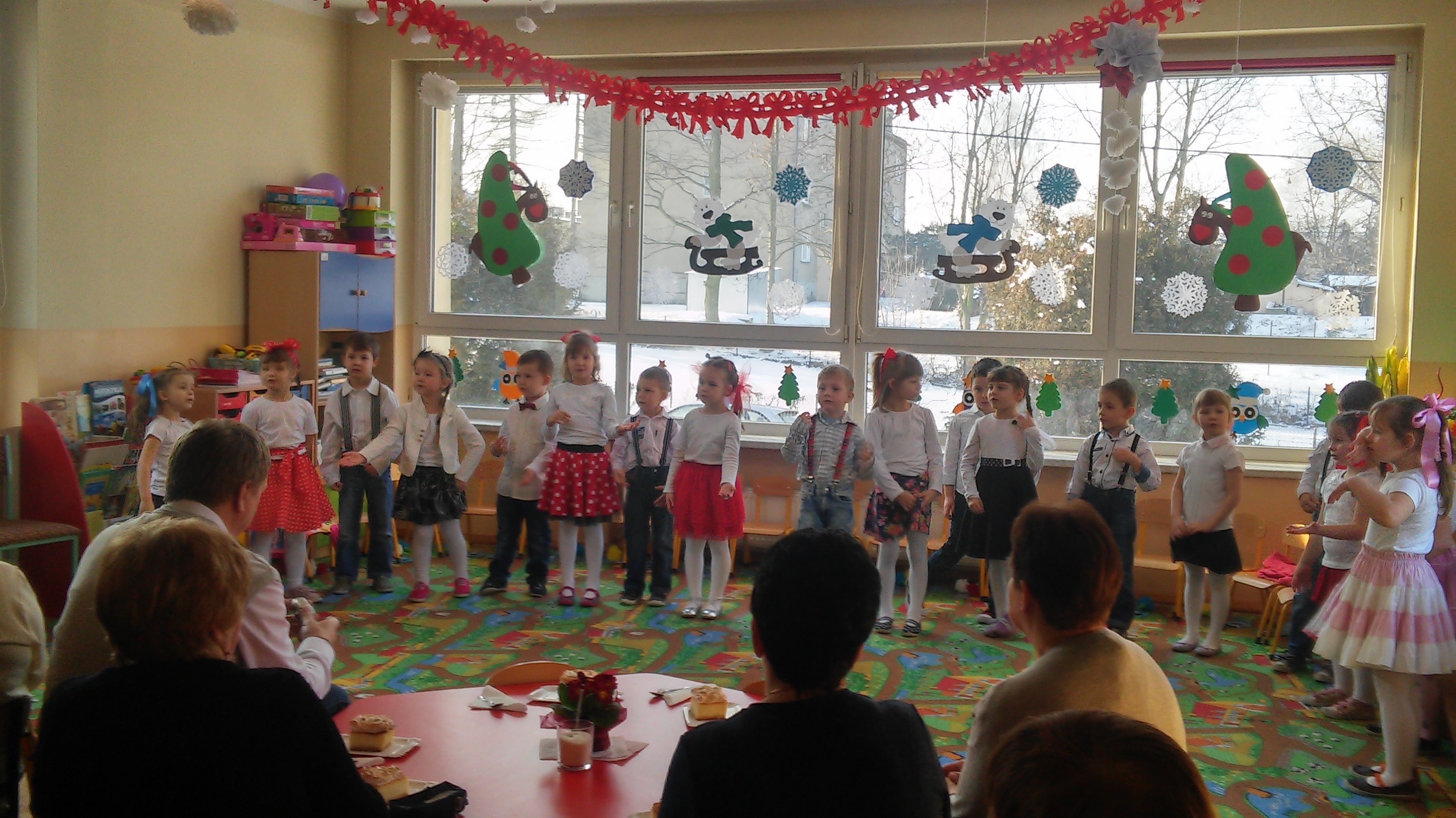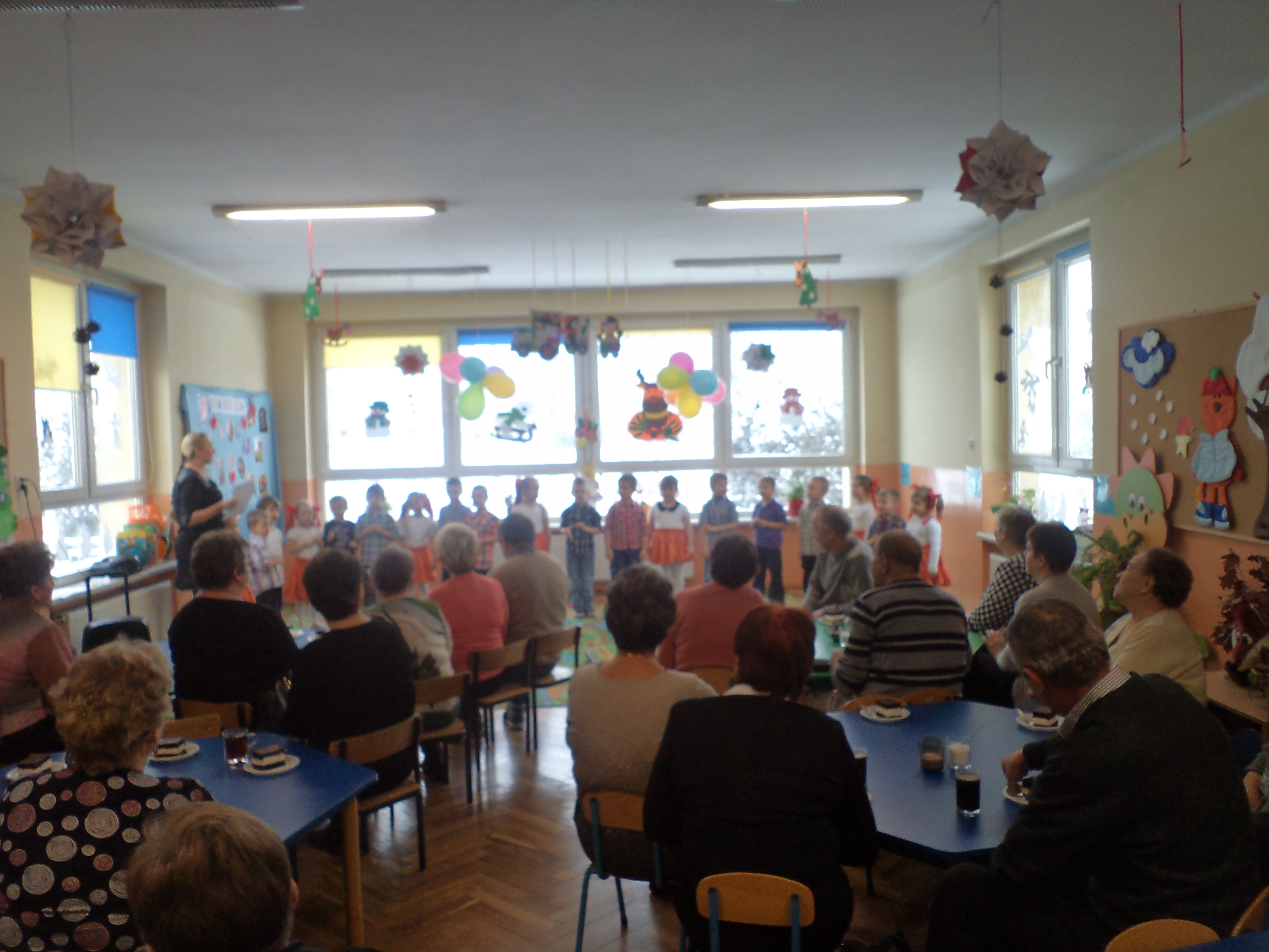 Tak też było w naszym przedszkolu, do którego licznie w ten dzień przybyli nasi najukochańszy dziadkowie . Każda grupa przedszkolaków przedstawiła swój program artystyczny, w którym pokazała swoje umiejętności muzyczne, ruchowe oraz recytatorskie. Dumni dziadkowie ze wzruszeniem podziwiali występy swoich milusińskich, a przedszkolaki odważnie i bez tremy reprezentowały swoje umiejętności. Dzieci dla swoich dziadków przygotowały laurki. Następnie wszyscy zostali zaproszeni na słodki poczęstunek.