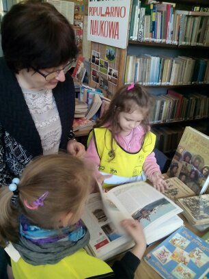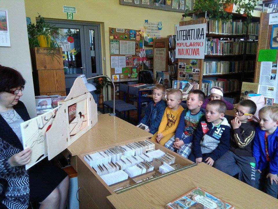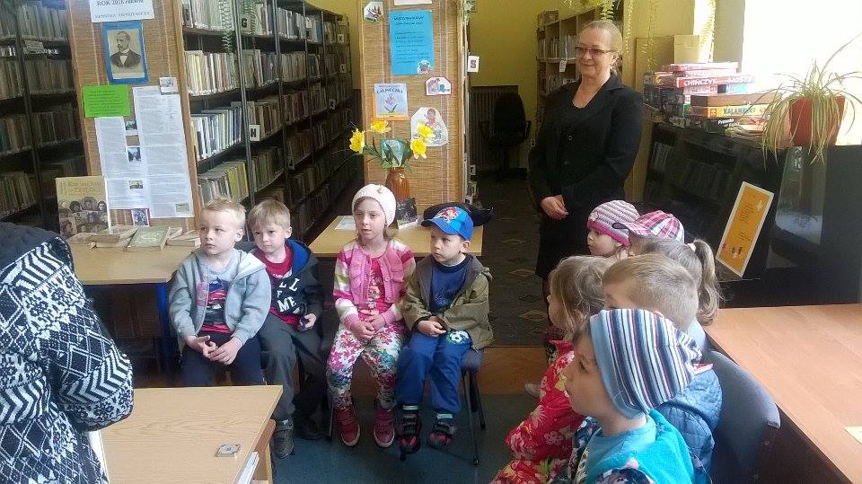 W poniedziałek 09 maja przedszkolaki wybrały się na wycieczkę do biblioteki miejskiej. Przywitały je Pani dyrektor Iwona Grotecka oraz Urszula Ścigała. Panie bibliotekarki pokazały dzieciom, gdzie znajduje się przeznaczony specjalnie dla nich dział z książkami. Wytłumaczyły zasady wypożyczania i omówiły charakter ich pracy. Następnie zaprezentowały i dały do obejrzenia dzieciom książeczki z działu dziecięcego oraz albumy, encyklopedie. Przedszkolakom bardzo spodobały się kolorowe i bogato ilustrowane książeczki, które z chęcią oglądały. Ponad to dzieci mogły obejrzeć japoński teatrzyk, rozwiązywały również zagadki o znanych bohaterach bajek. Spotkanie odbywało się w miłej, pełnej uśmiechów i wrażeń atmosferze. Dla wielu przedszkolaków, była to pierwsza wizyta w „domu książek”, ale na pewno nie ostatnia. Dzieci obiecały, że niedługo znów tu wrócą.
