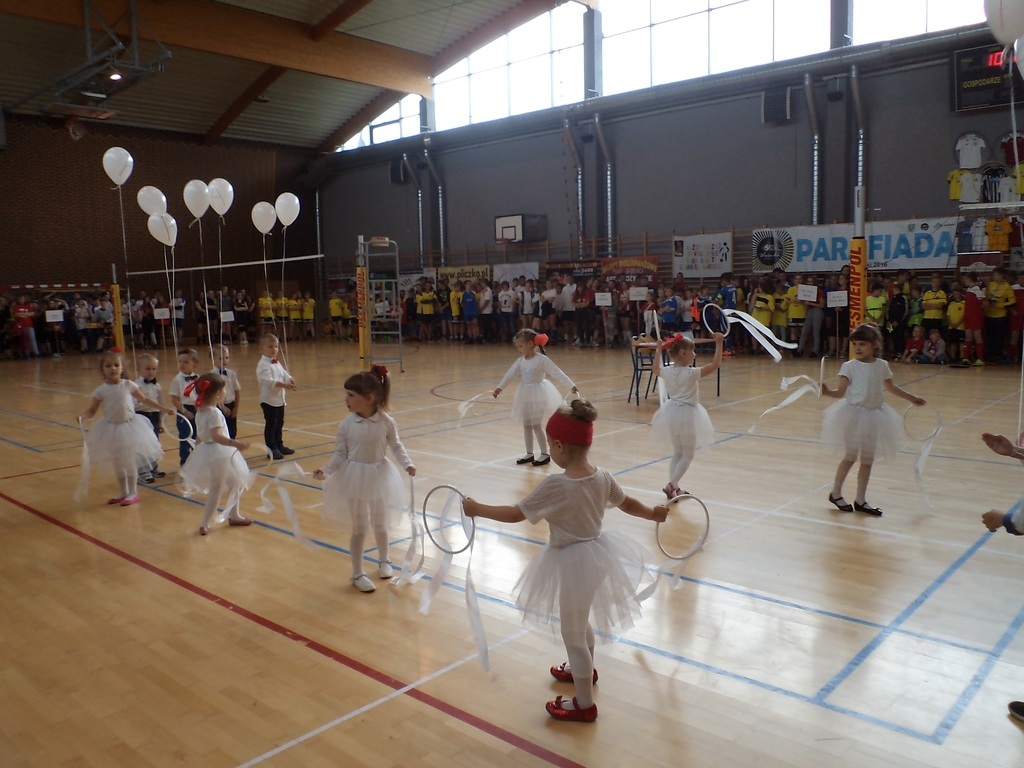 Dzieci z grupy II w raz z wychowawcą Anną Adamus zaprezentowały układ taneczny do utworu "El taxi". Najmłodsza grupa oraz dzieci z grupy IV zaprezentowały dwa układy taneczne. Pierwszy do utworu "Hallelujah" Aleksandry Burke. Punktem kulminacyjnym występu było wypuszczenie w górę białych balonów z napisem Parafiada 2016. Następnie zaprezentowały się w tańcu z chustą animacyjną przy piosence "Zostań moją przyjaciółką"