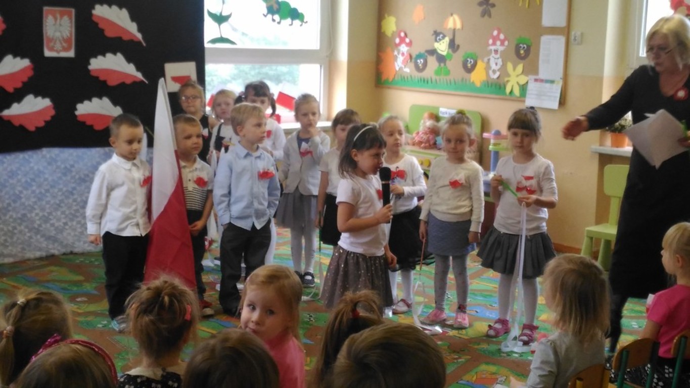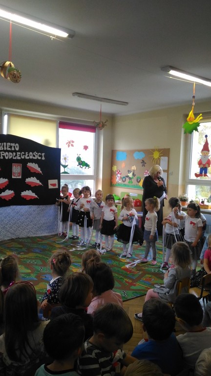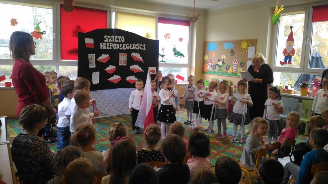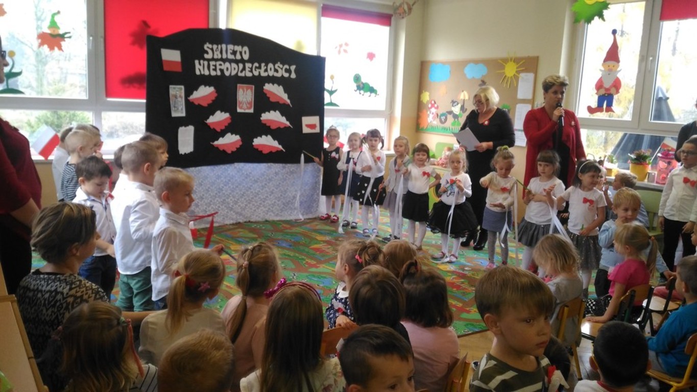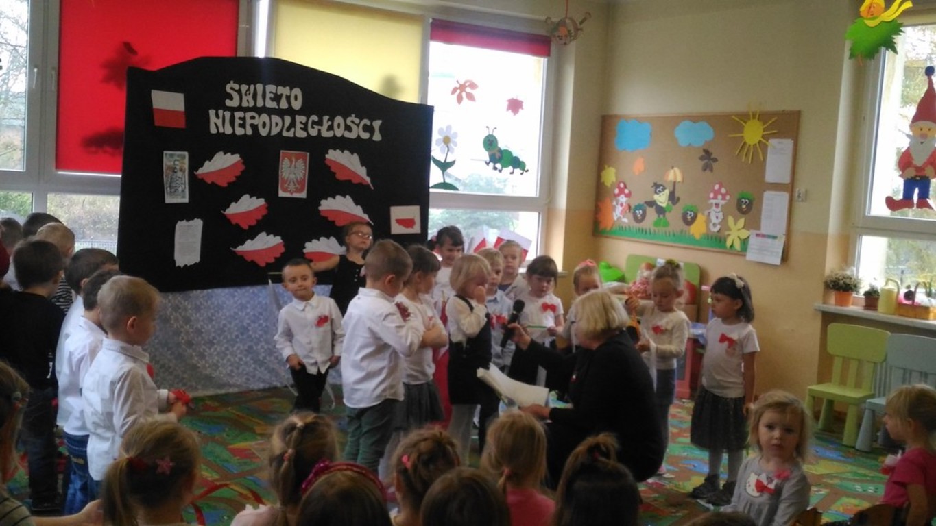 11 Listopada to ważna dla Polaków data, wiedzą o tym i nasze przedszkolaki, którzy by uczcić ten wyjątkowy dzień przygotowali akademię. W tym roku grupa Pani Filomeny Siodłak zaprezentowała wiersze, wykonała układ taneczny do muzyki Chopina, wszystko to poprzedziło uroczyste wprowadzenie flagi Polski oraz odśpiewanie przez wszystkich zebranych hymnu Polski. W tym wyjątkowym dniu zaproszeni na uroczystość zostali rodzice grupy II.