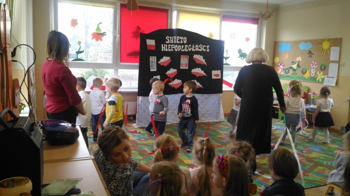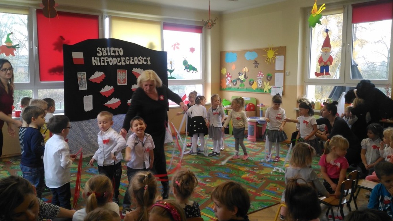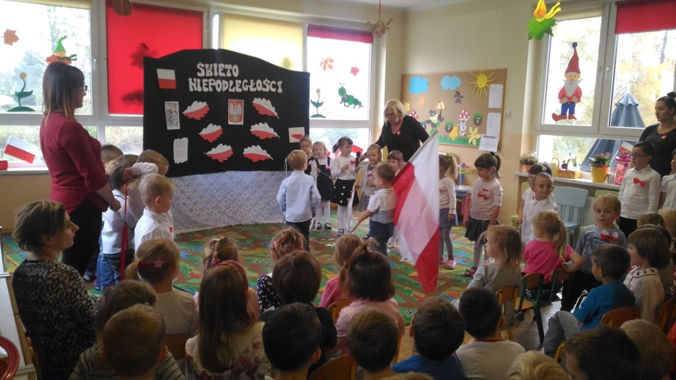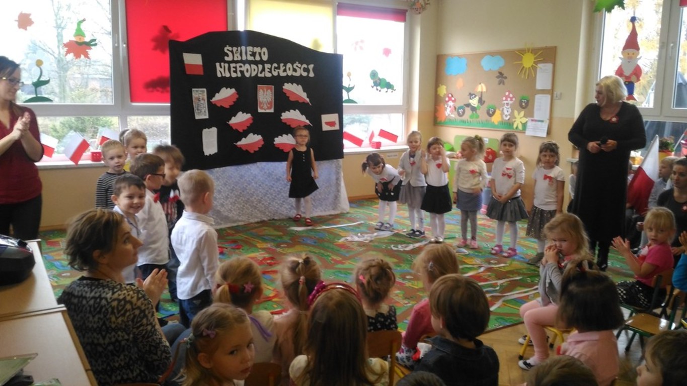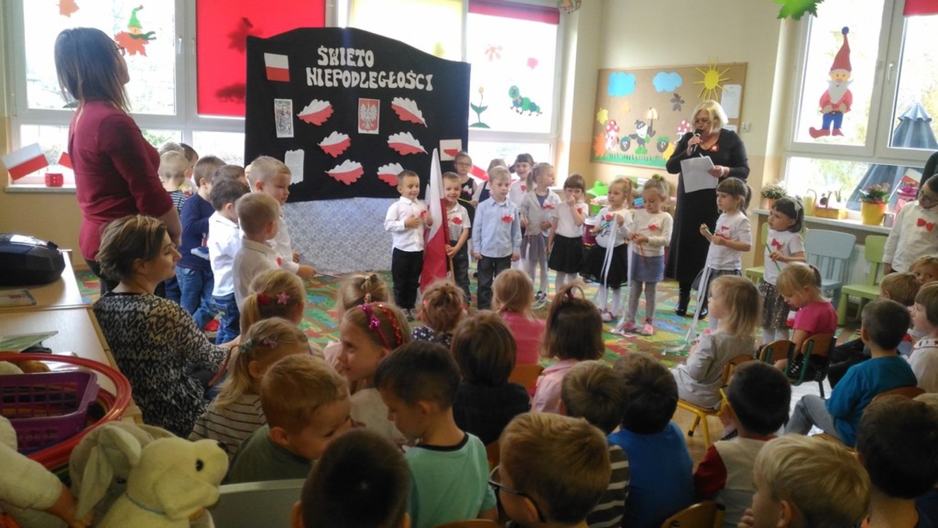 11 Listopada to ważna dla Polaków data, wiedzą o tym i nasze przedszkolaki, którzy by uczcić ten wyjątkowy dzień przygotowali akademię. W tym roku grupa Pani Filomeny Siodłak zaprezentowała wiersze, wykonała układ taneczny do muzyki Chopina, wszystko to poprzedziło uroczyste wprowadzenie flagi Polski oraz odśpiewanie przez wszystkich zebranych hymnu Polski. W tym wyjątkowym dniu zaproszeni na uroczystość zostali rodzice grupy II.