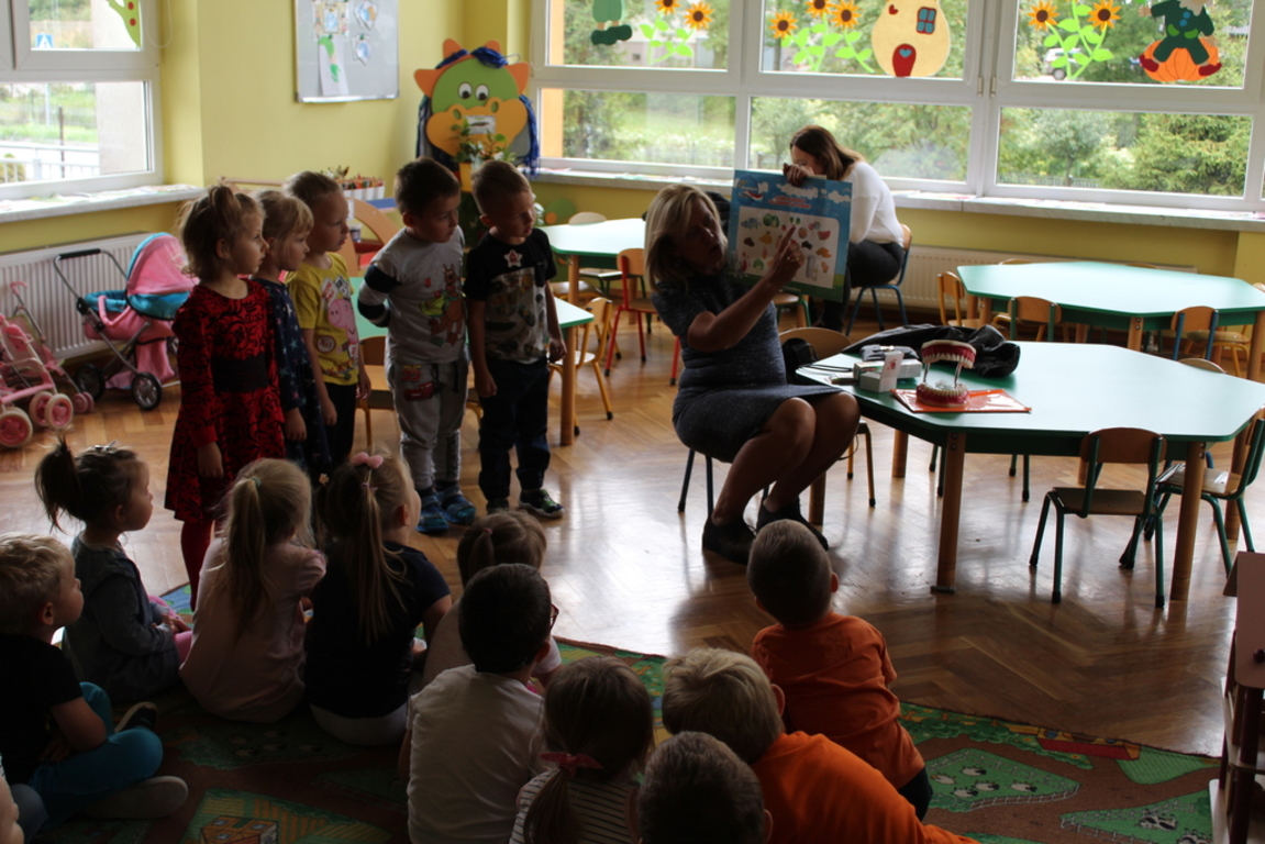 W dniach od 17 -19 września nasze przedszkole odwiedził Dentobus - mobilny gabinet dentystyczny. W ramach akcji wśród dzieci zostały przeprowadzone pogadanki na temat prawidłowego odżywiania oraz prawidłowej higieny jamy ustnej. Podsumowaniem akcji była nauka mycia zębów oraz przegląd stomatologiczny dla dzieci, których rodzice uprzednio wyrazili pisemnie na to zgodę.