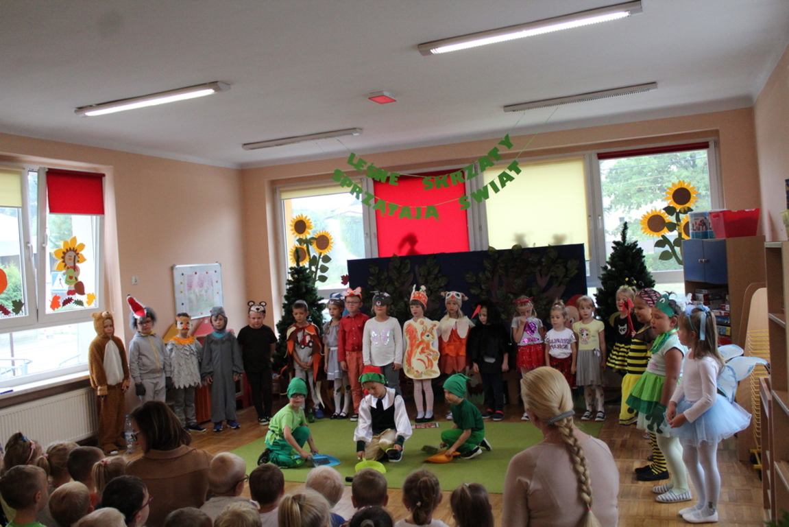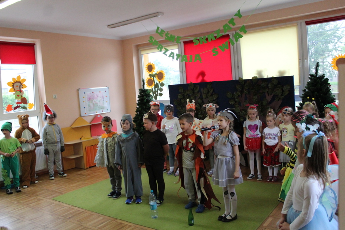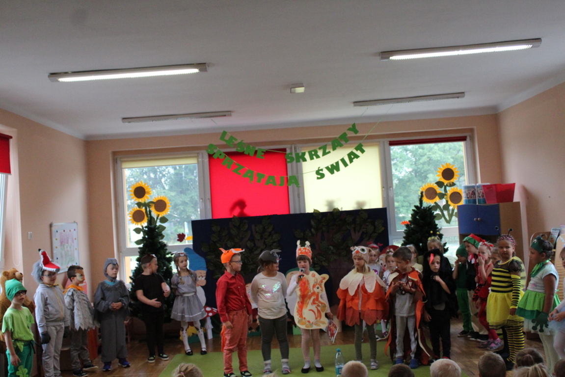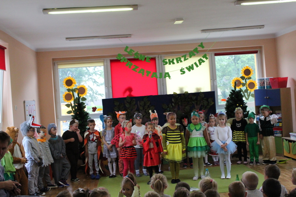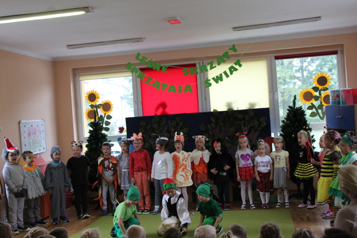 Tego dnia w przedszkolu zostały przeprowadzone zajęcia, które zainspirowały dzieci do działań mających na celu dbanie o nasze środowisko, ponadto grupa VI zaprezentowała przedstawienie pt " Leśne skrzaty sprzątają świat".