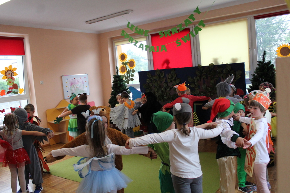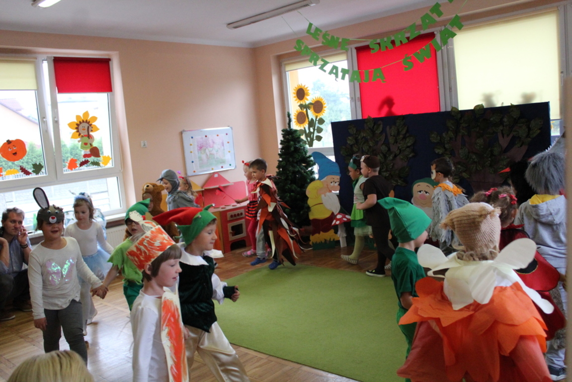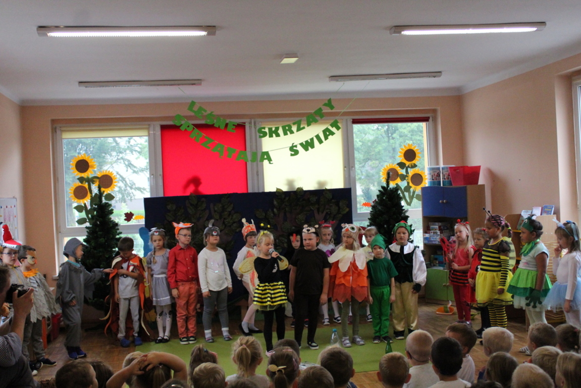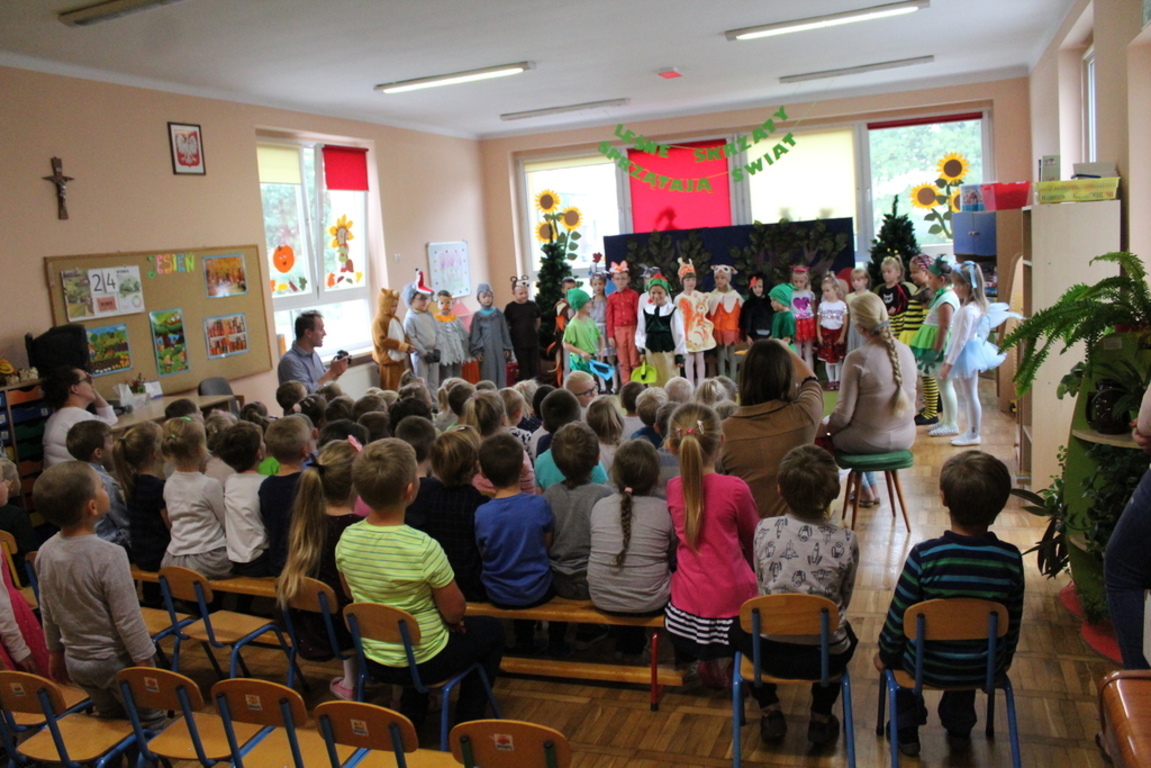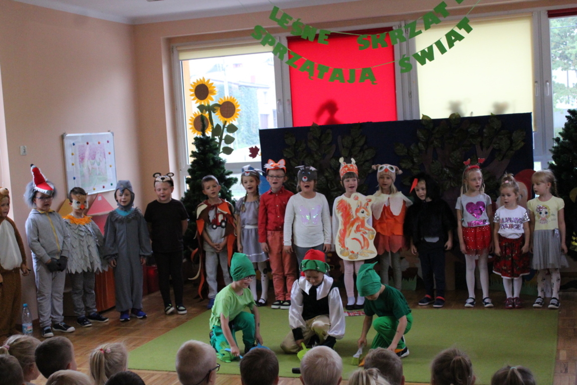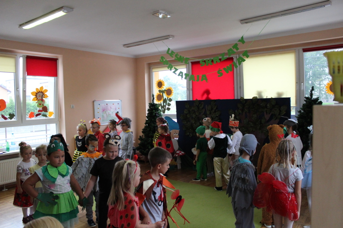 Tego dnia w przedszkolu zostały przeprowadzone zajęcia, które zainspirowały dzieci do działań mających na celu dbanie o nasze środowisko, ponadto grupa VI zaprezentowała przedstawienie pt " Leśne skrzaty sprzątają świat".
