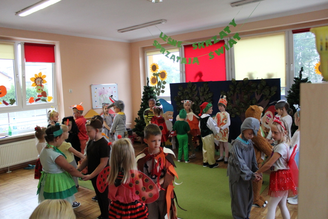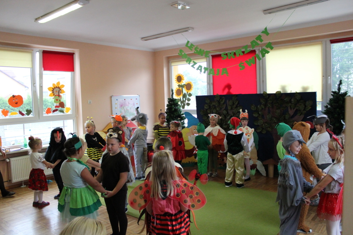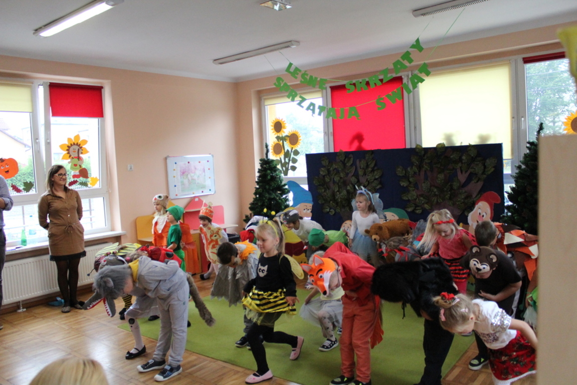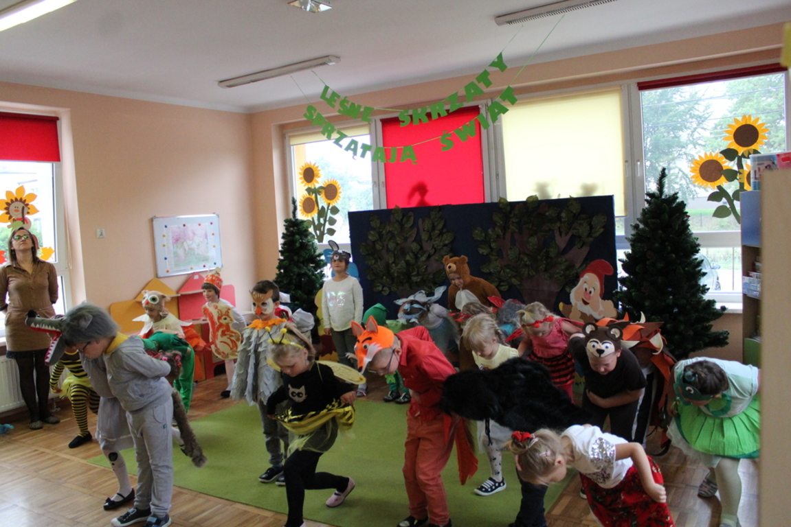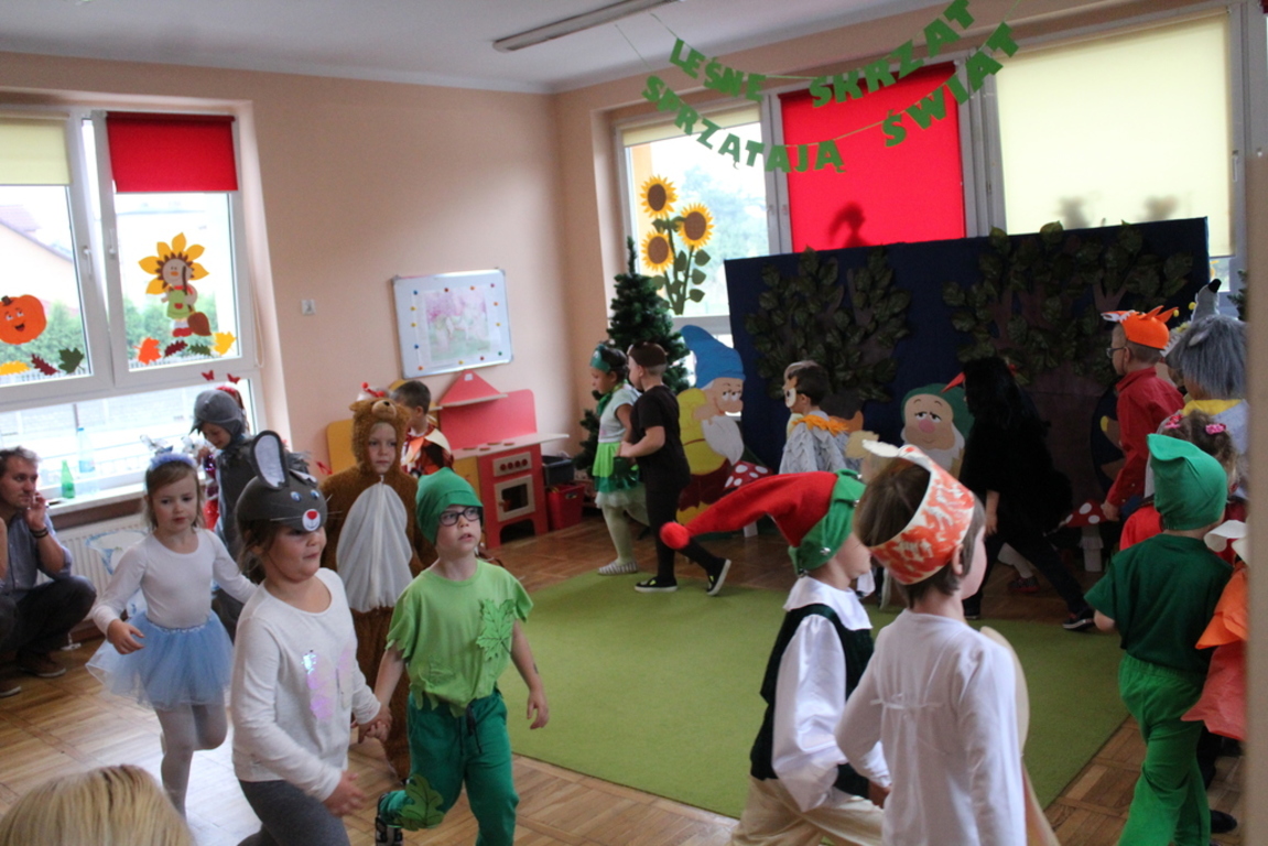 Tego dnia w przedszkolu zostały przeprowadzone zajęcia, które zainspirowały dzieci do działań mających na celu dbanie o nasze środowisko, ponadto grupa VI zaprezentowała przedstawienie pt " Leśne skrzaty sprzątają świat".