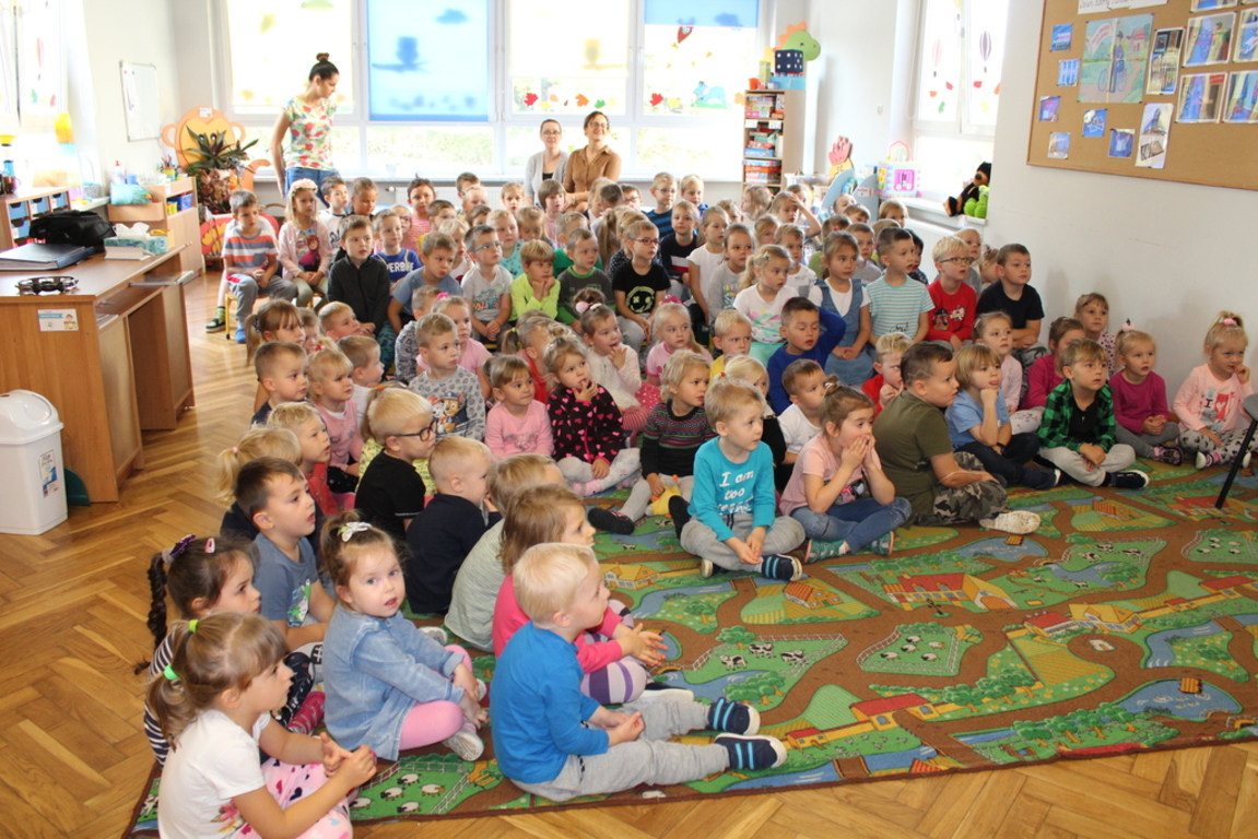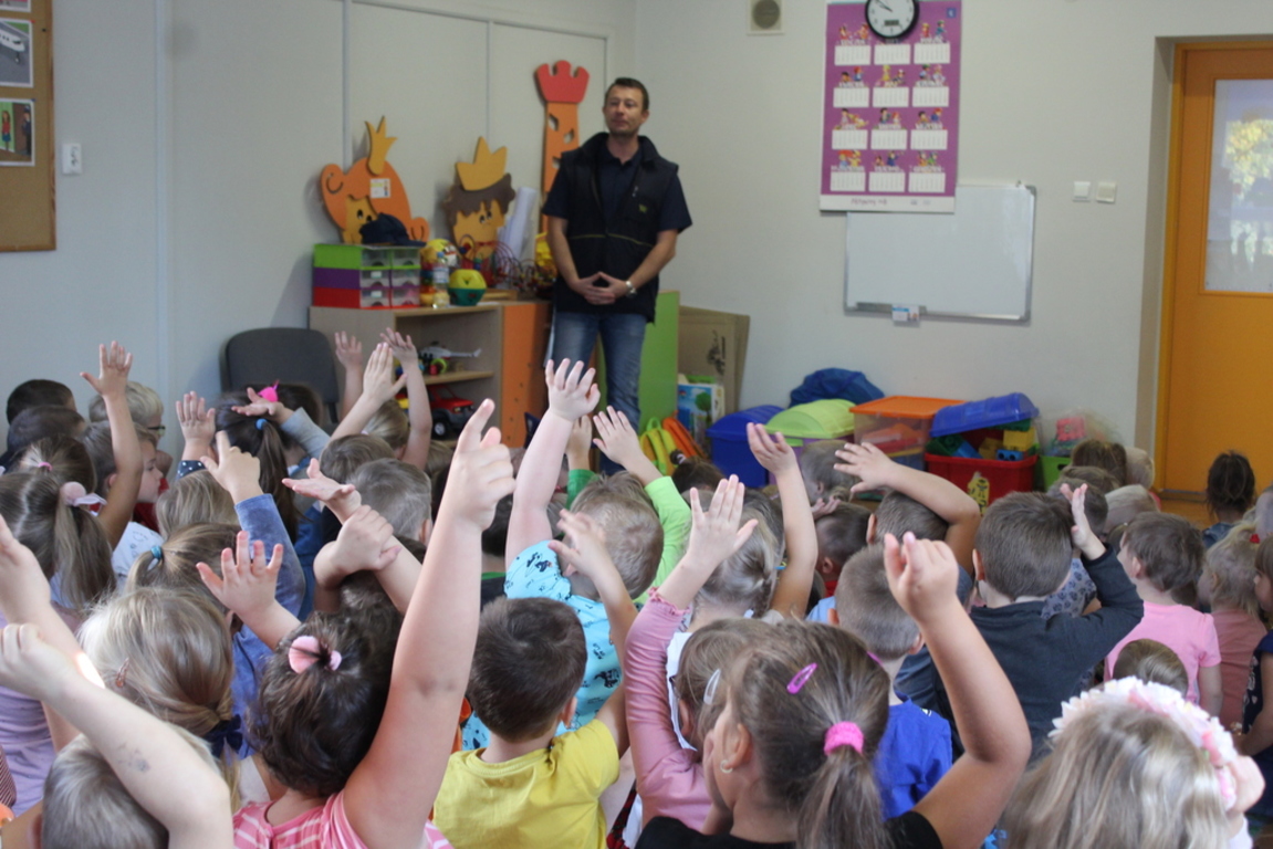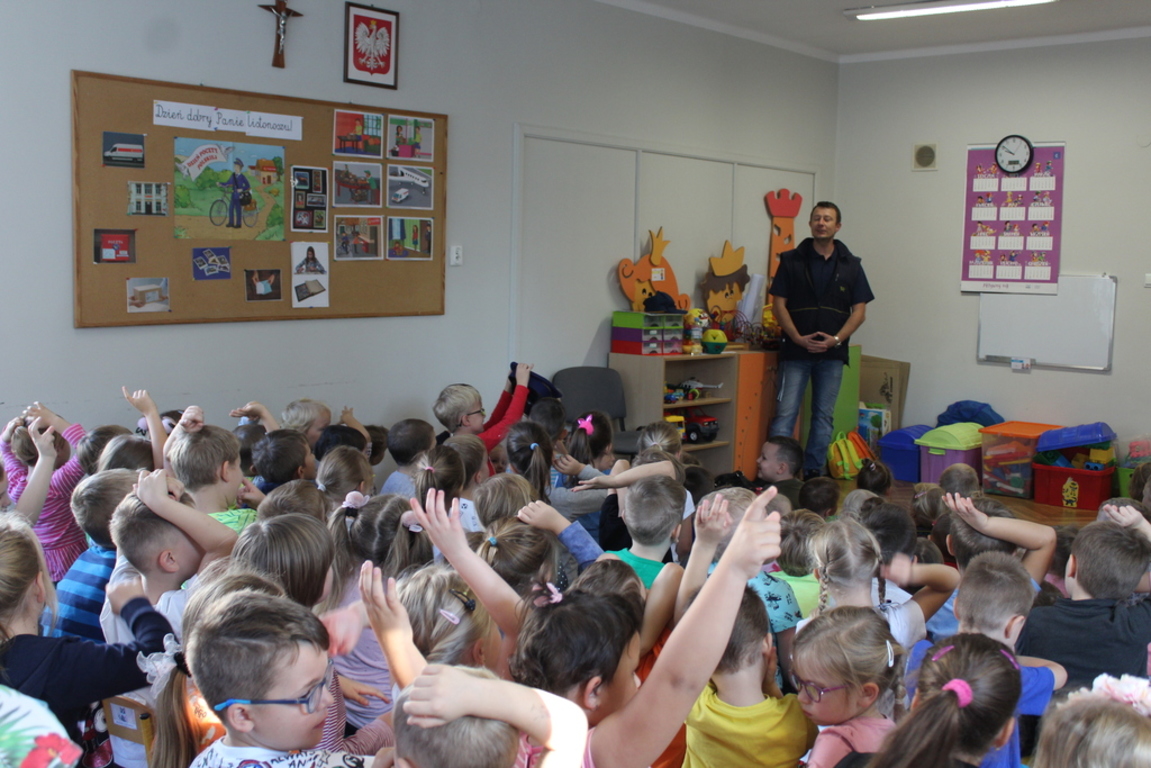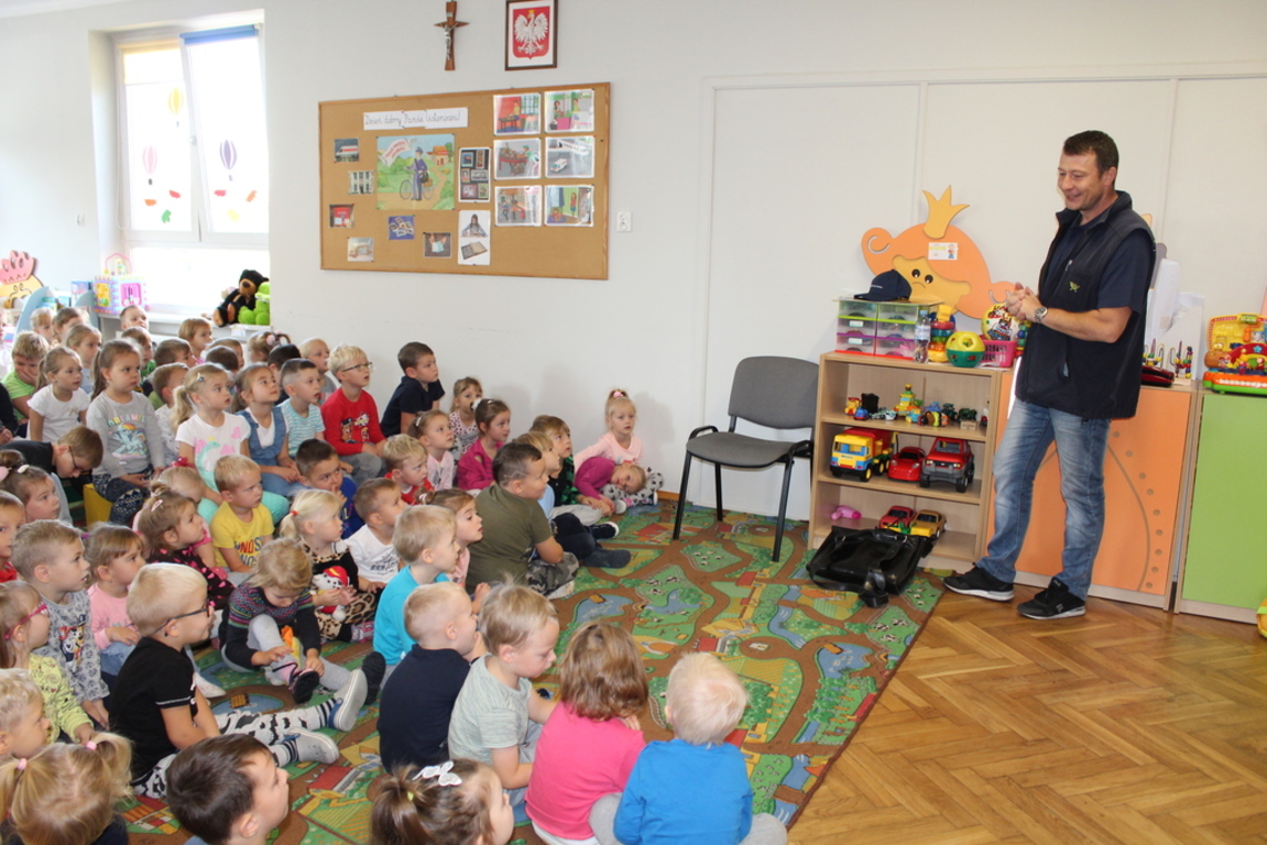 Gościem, który odwiedził nasze przedszkole 18 października był miejscowy listonosz pan Grzegorz Mośny przedszkolaki z ciekawością zapoznały się z wykonywaną przez niego pracą. Pan listonosz w ciekawy sposób opowiedział o wędrówce listu oraz jak należy go prawidłowo zaadresować. Dzieci z dużym zainteresowaniem oglądały jego czapkę, którą mogły przymierzyć jaki i torbę w której przynosi listy. Przedszkolaki dowiedziały się jak trudna i odpowiedzialna jest to praca. Na zakończenie pan listonosz odpowiadał na nurtujące dzieci pytania. Naszemu gościowi serdecznie dziękujemy.