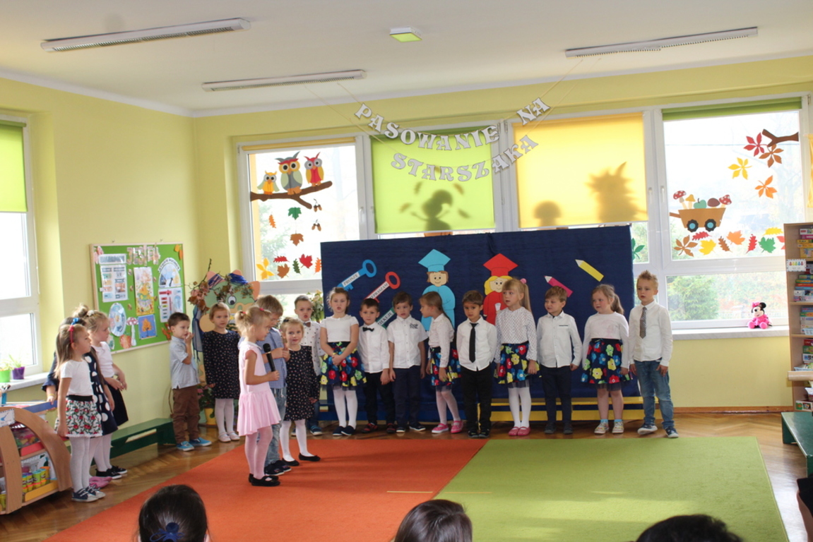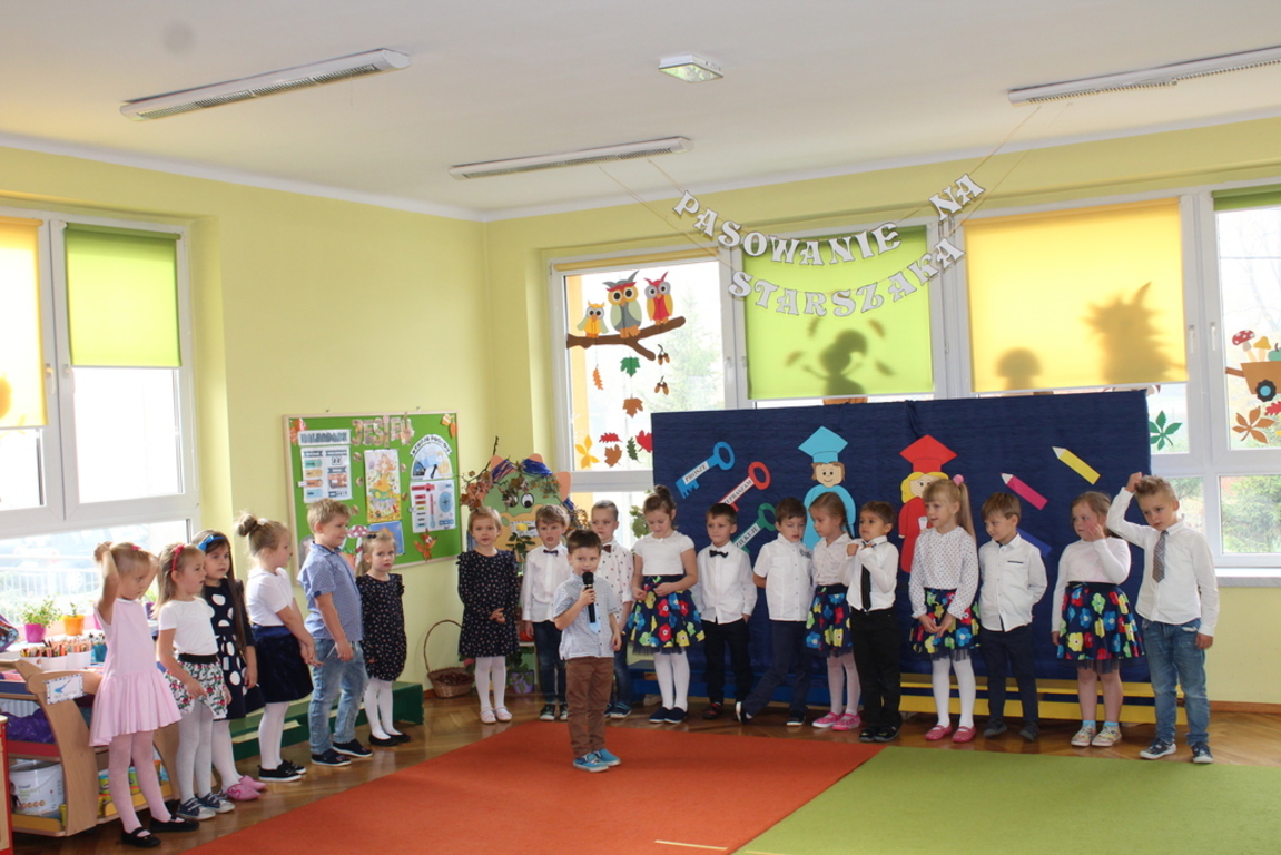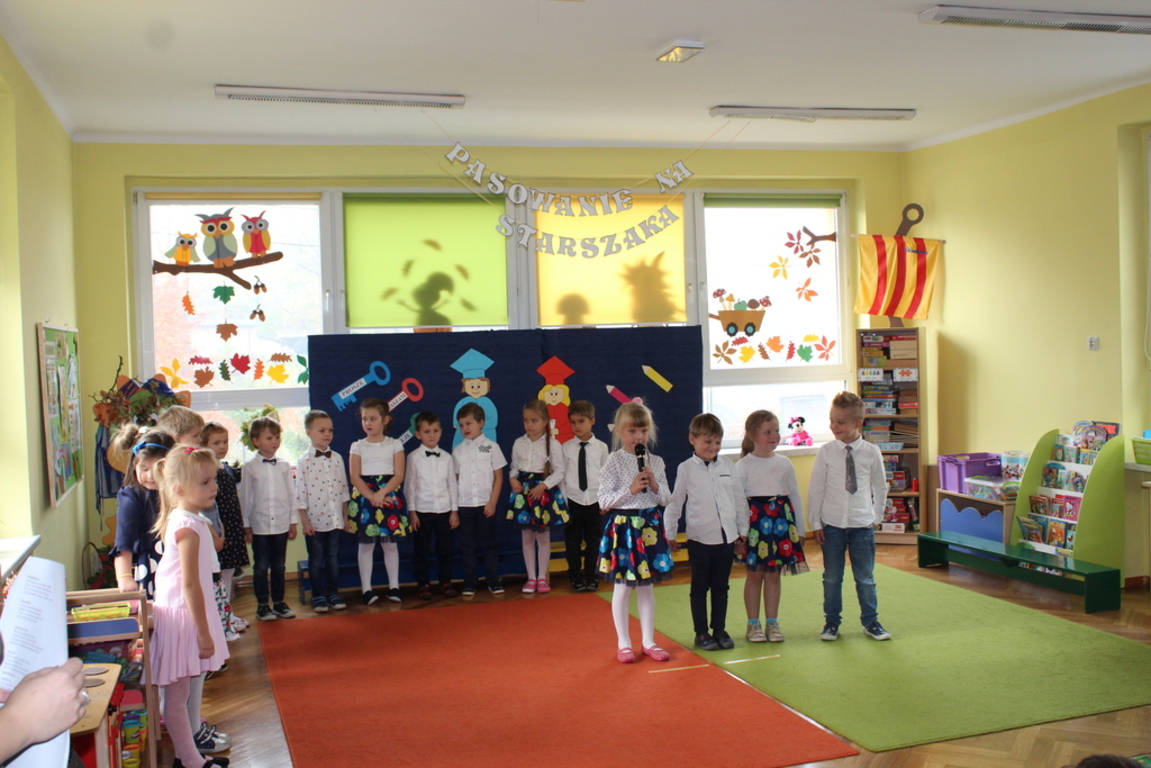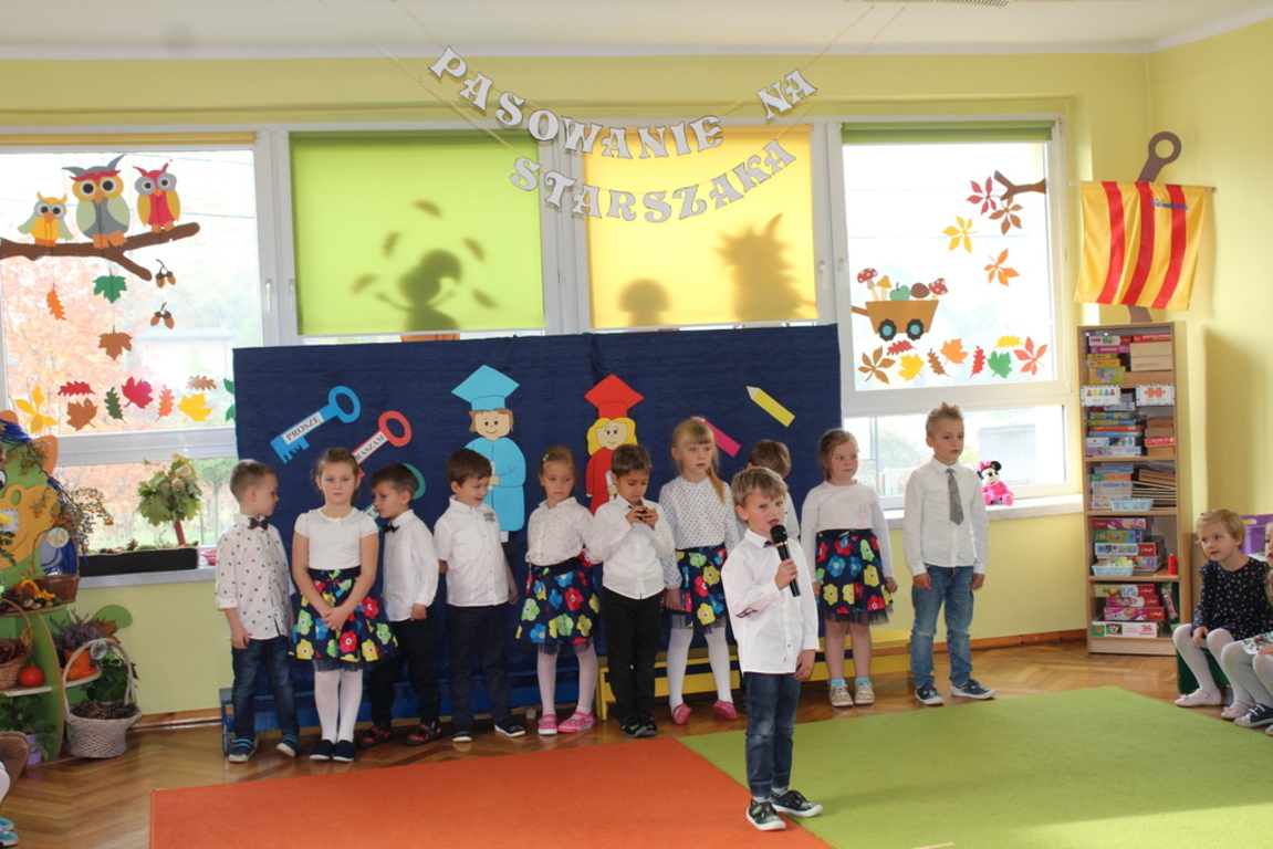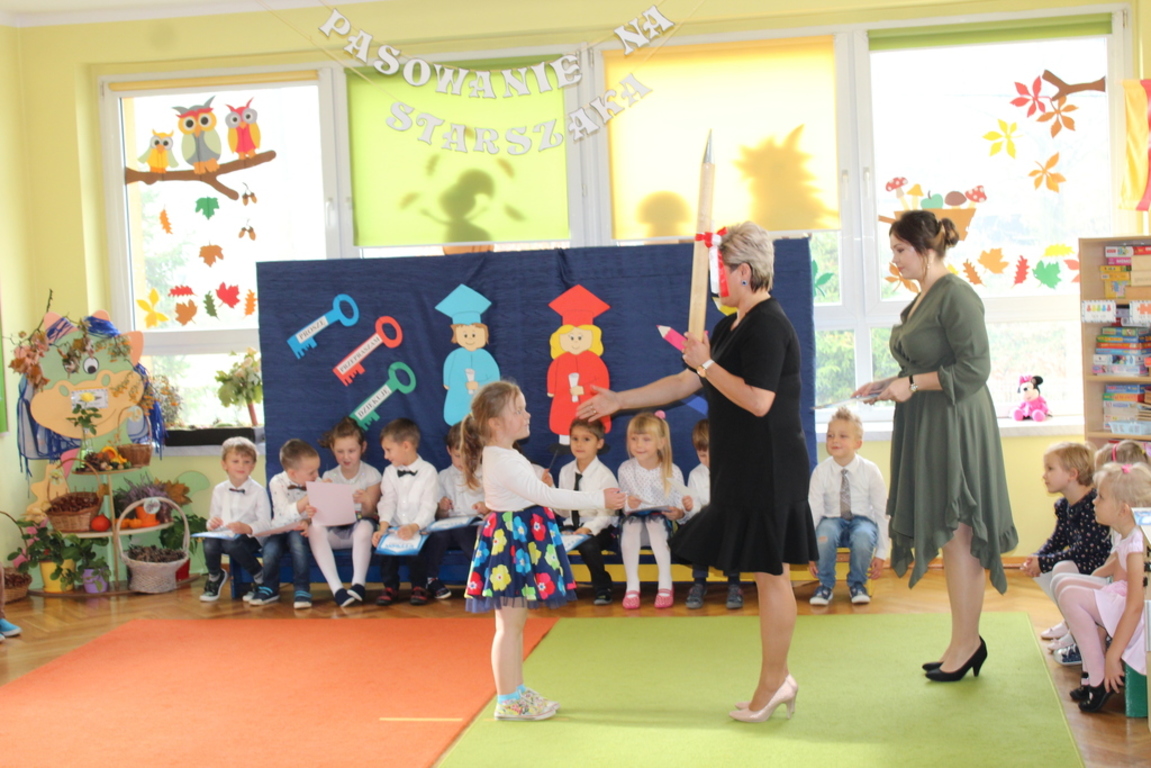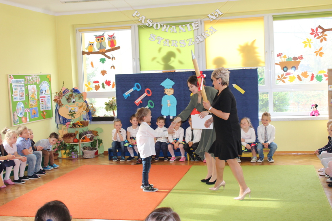 Pasowanie na przedszkolaka to wyjątkowa uroczystość, która odbyła się 22 października. Od samego rana trwały przygotowania, a w sali gromadzili się goście. Uroczystość rozpoczęły występy dzieci, które zaprezentowały przygotowane piosenki, tańce oraz wierszyki. Dla dzieci był to bardzo ważny występ. Po części artystycznej nastąpił akt pasowania, czyli dotknięcie ramienia każdego przedszkolaka ogromną kredką przez Panią Dyrektor Ewelinę Gawlik. Dla przedszkolaków było to wielkie przeżycie, a dla rodziców powód do dumy i zadowolenia ze swoich pociech.