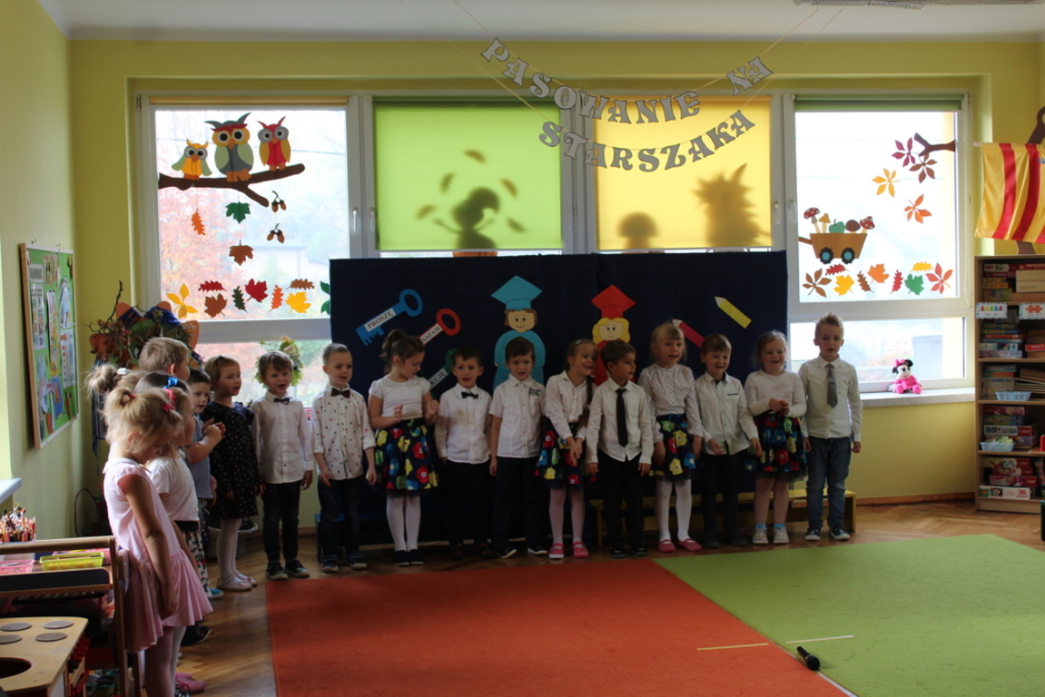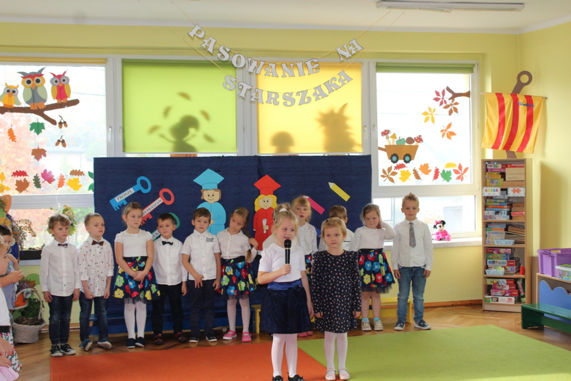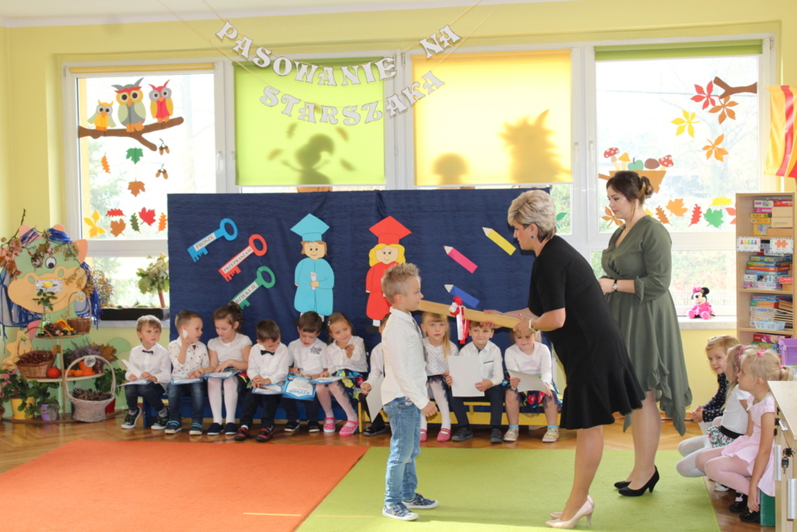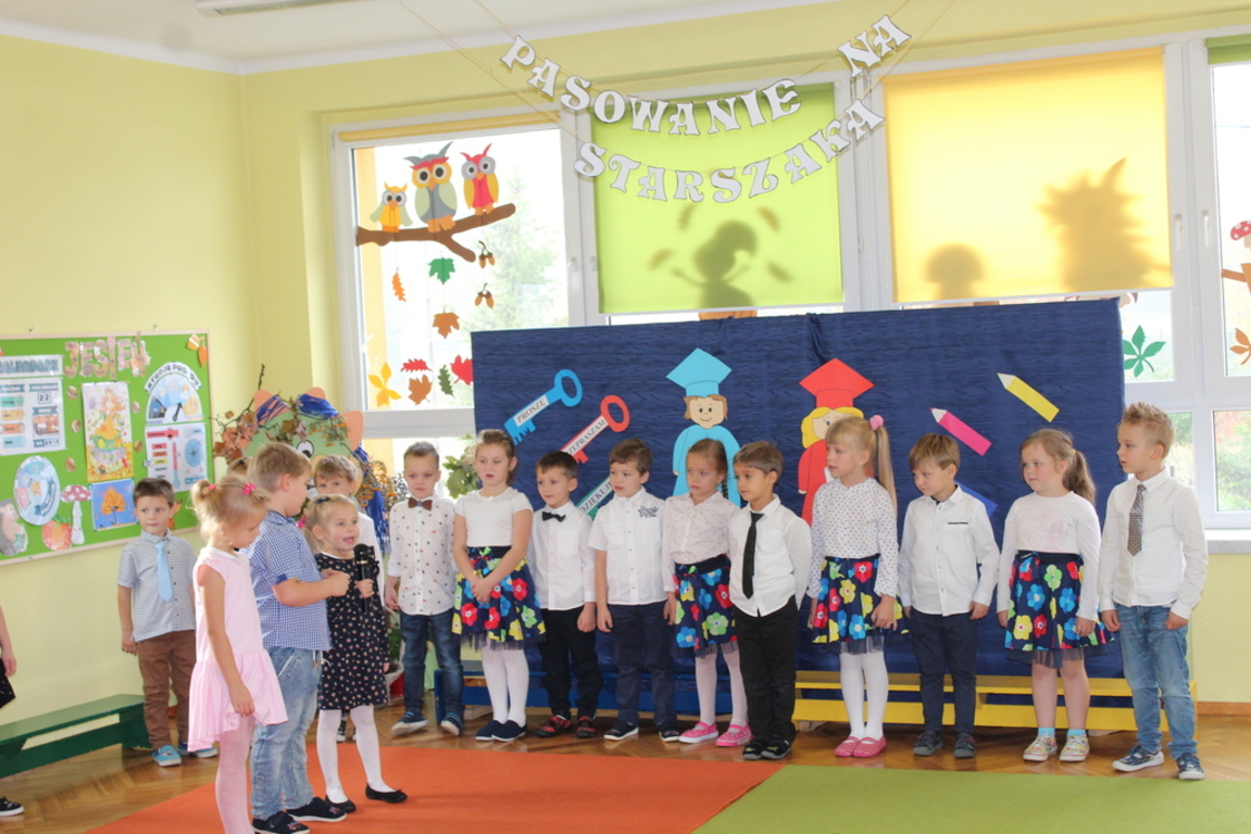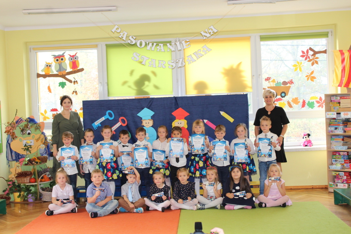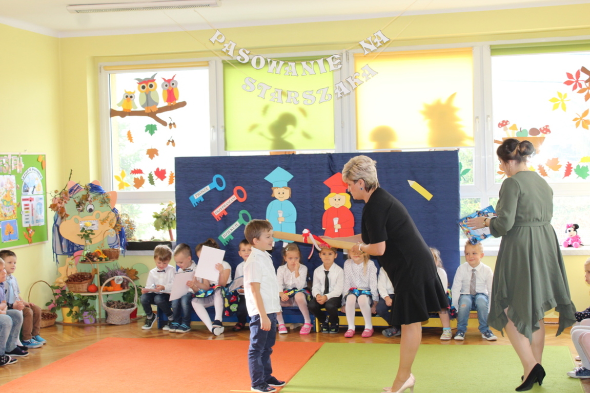 Pasowanie na przedszkolaka to wyjątkowa uroczystość, która odbyła się 22 października. Od samego rana trwały przygotowania, a w sali gromadzili się goście. Uroczystość rozpoczęły występy dzieci, które zaprezentowały przygotowane piosenki, tańce oraz wierszyki. Dla dzieci był to bardzo ważny występ. Po części artystycznej nastąpił akt pasowania, czyli dotknięcie ramienia każdego przedszkolaka ogromną kredką przez Panią Dyrektor Ewelinę Gawlik. Dla przedszkolaków było to wielkie przeżycie, a dla rodziców powód do dumy i zadowolenia ze swoich pociech.
