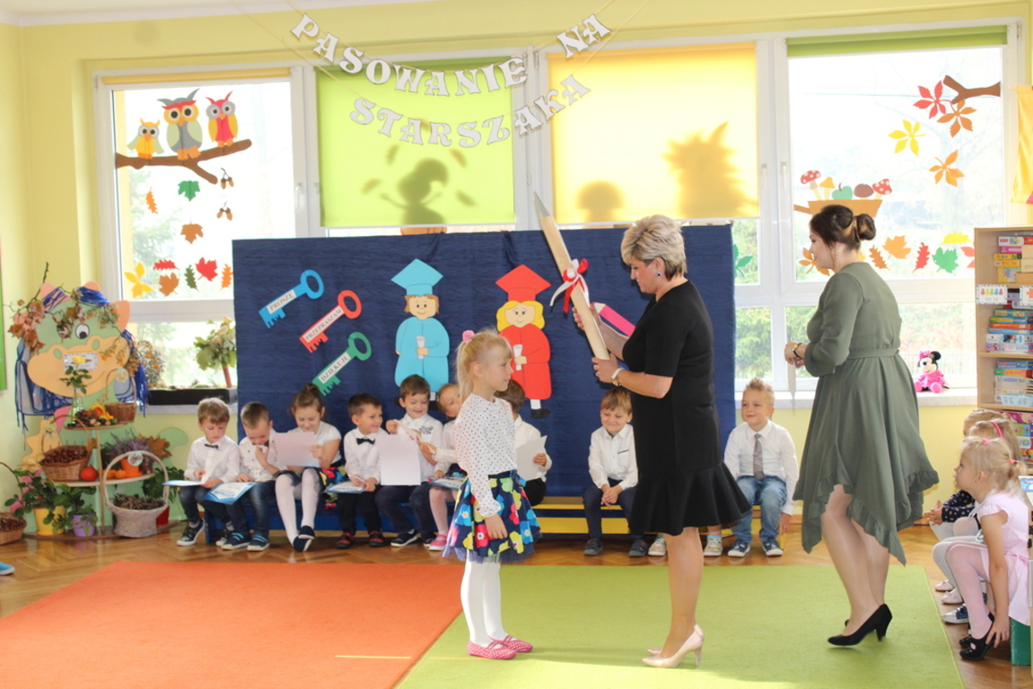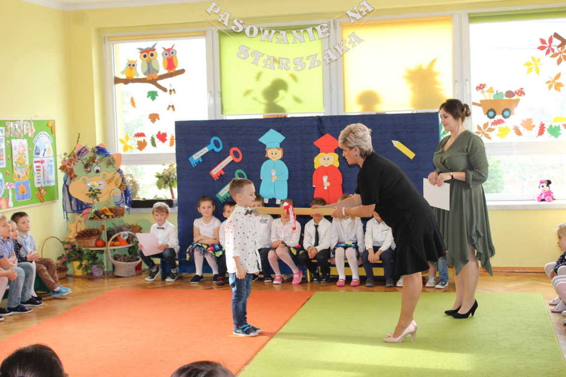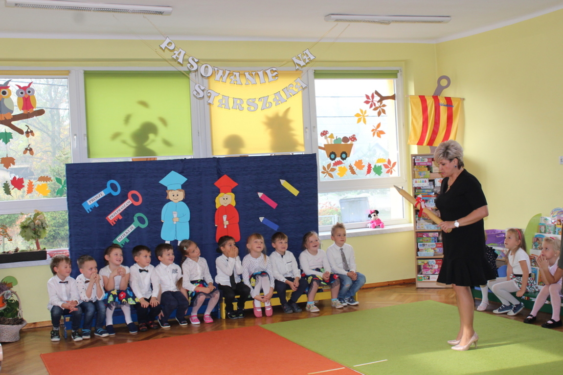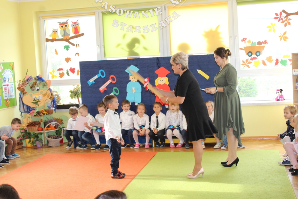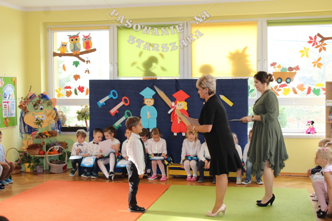 Pasowanie na przedszkolaka to wyjątkowa uroczystość, która odbyła się 22 października. Od samego rana trwały przygotowania, a w sali gromadzili się goście. Uroczystość rozpoczęły występy dzieci, które zaprezentowały przygotowane piosenki, tańce oraz wierszyki. Dla dzieci był to bardzo ważny występ. Po części artystycznej nastąpił akt pasowania, czyli dotknięcie ramienia każdego przedszkolaka ogromną kredką przez Panią Dyrektor Ewelinę Gawlik. Dla przedszkolaków było to wielkie przeżycie, a dla rodziców powód do dumy i zadowolenia ze swoich pociech.