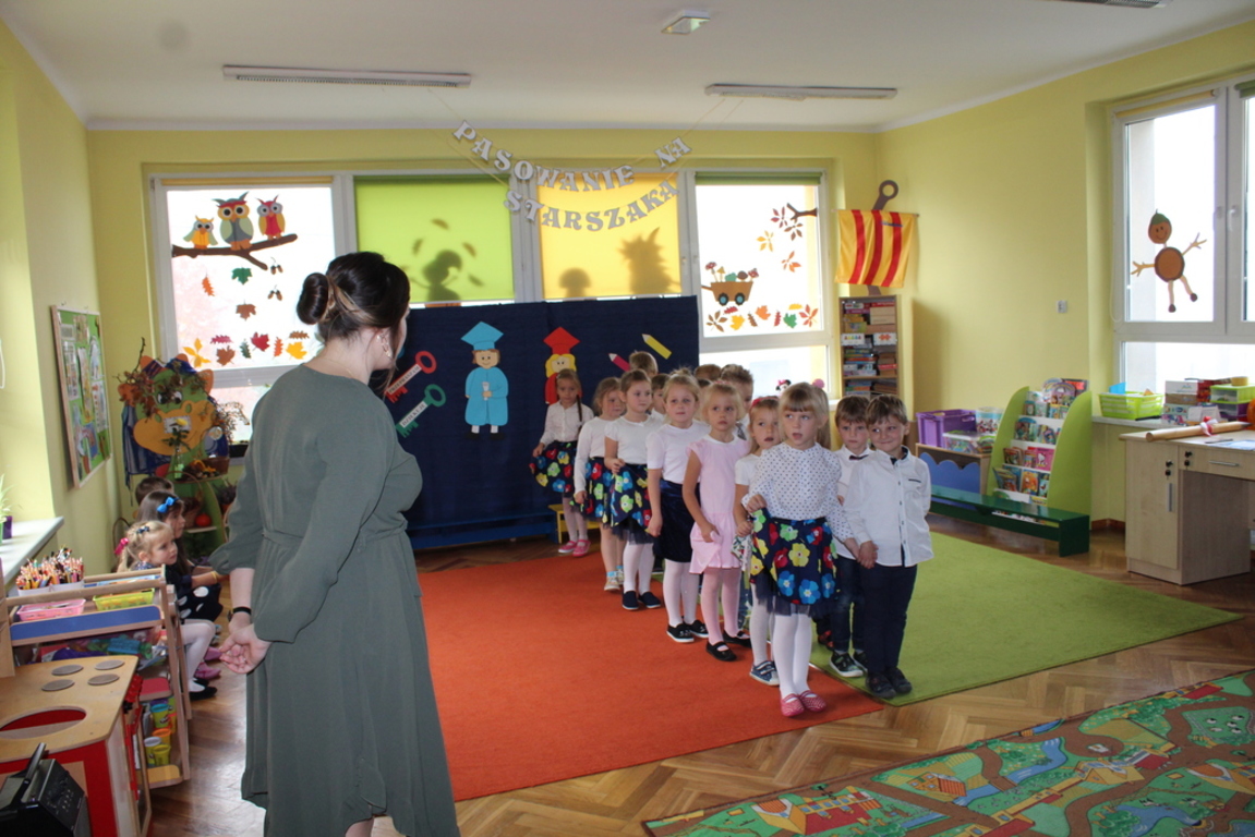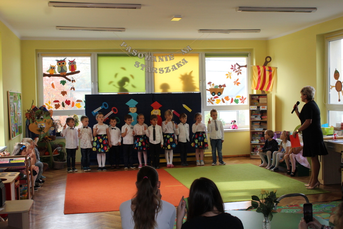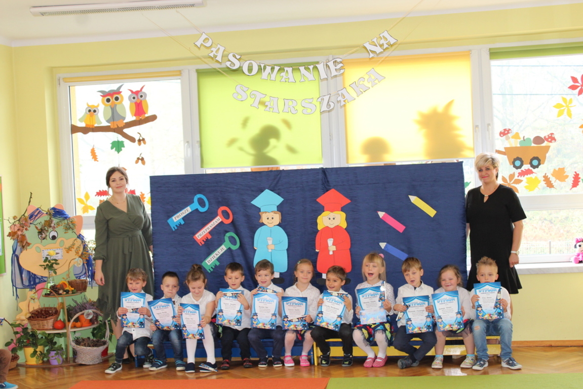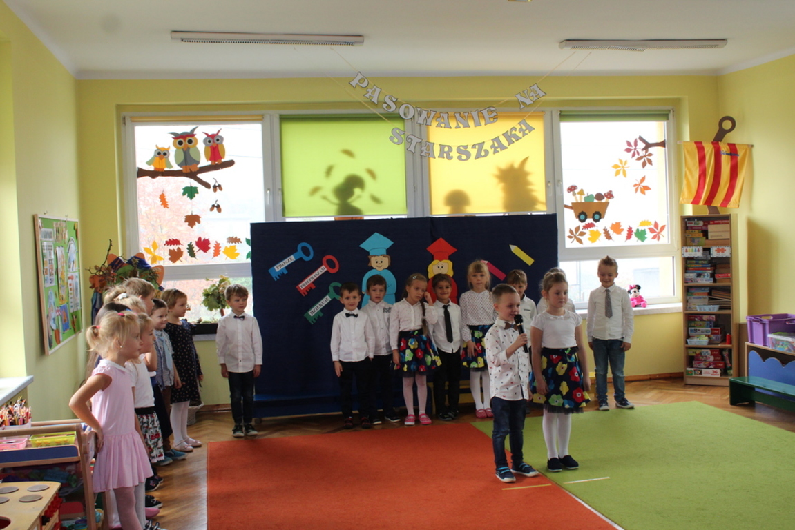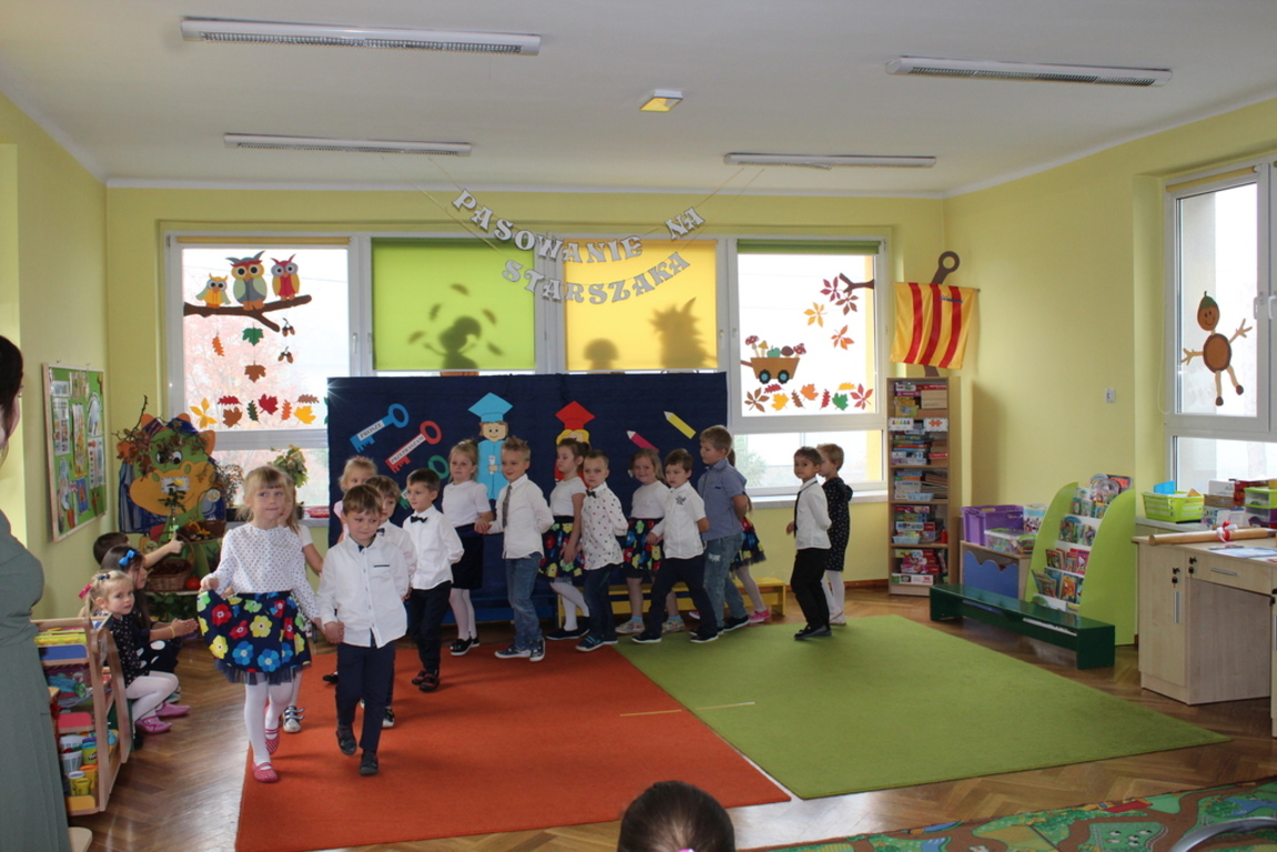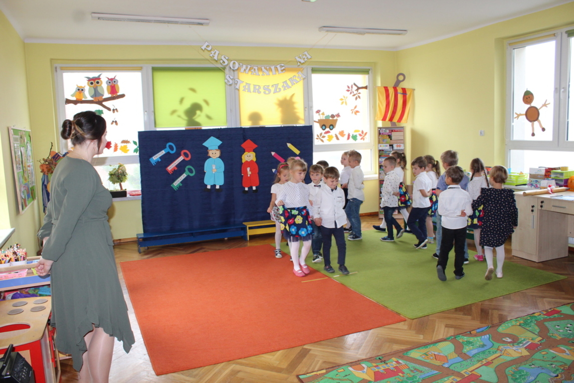 Pasowanie na przedszkolaka to wyjątkowa uroczystość, która odbyła się 22 października. Od samego rana trwały przygotowania, a w sali gromadzili się goście. Uroczystość rozpoczęły występy dzieci, które zaprezentowały przygotowane piosenki, tańce oraz wierszyki. Dla dzieci był to bardzo ważny występ. Po części artystycznej nastąpił akt pasowania, czyli dotknięcie ramienia każdego przedszkolaka ogromną kredką przez Panią Dyrektor Ewelinę Gawlik. Dla przedszkolaków było to wielkie przeżycie, a dla rodziców powód do dumy i zadowolenia ze swoich pociech.