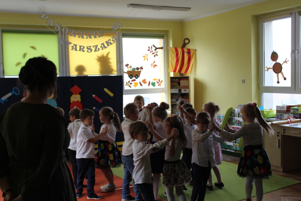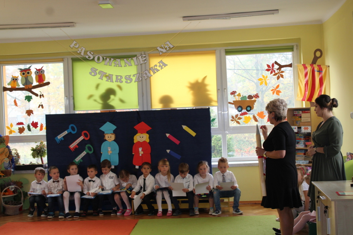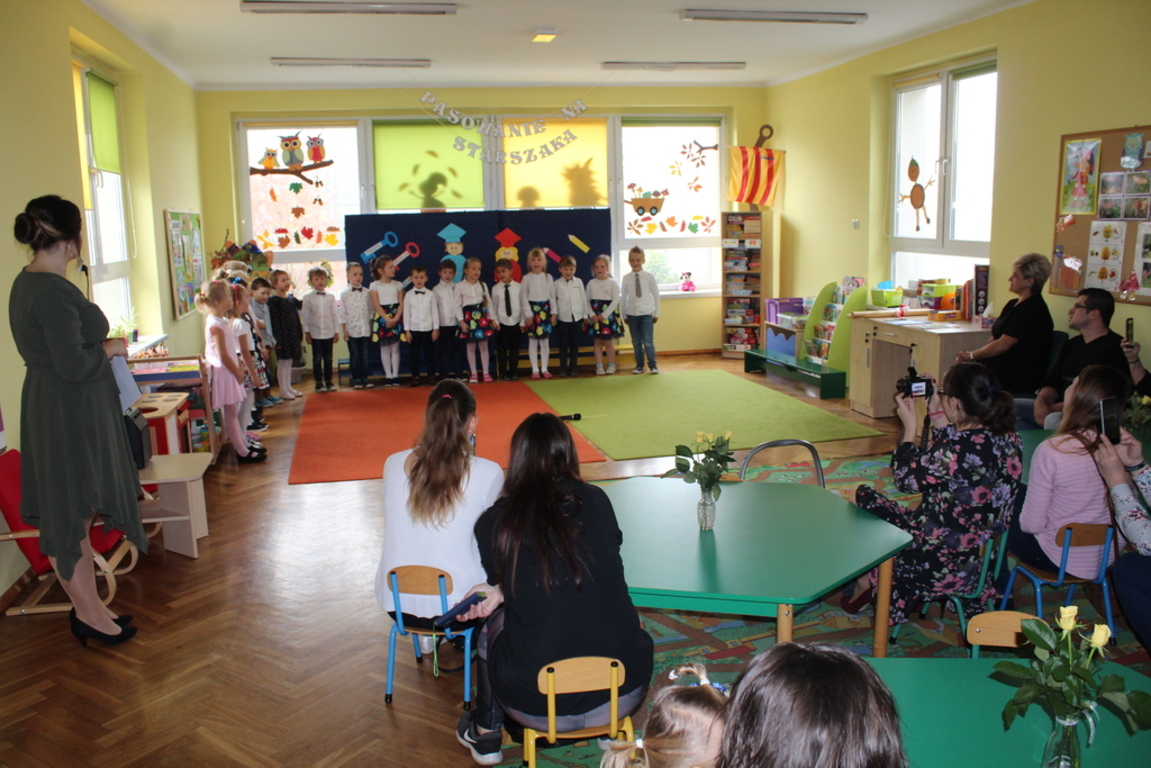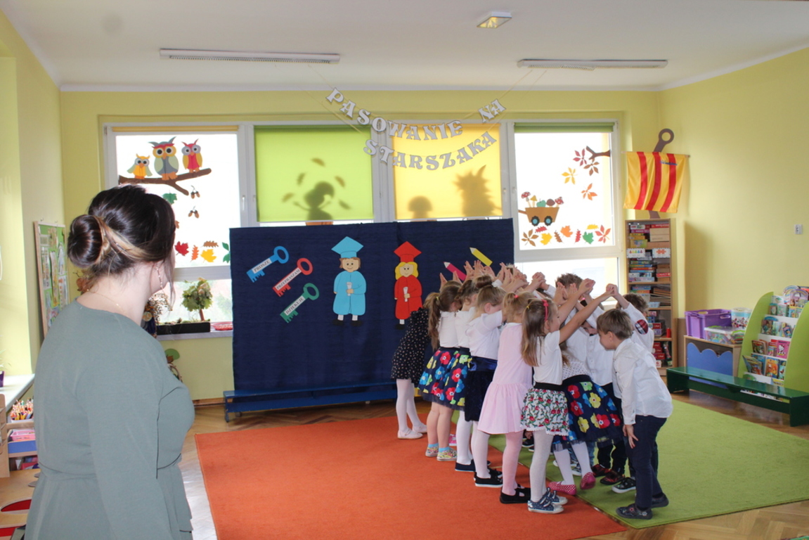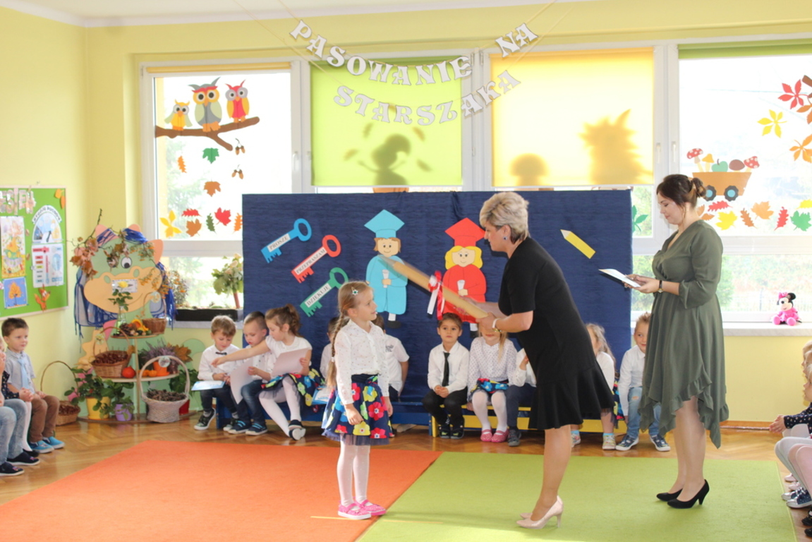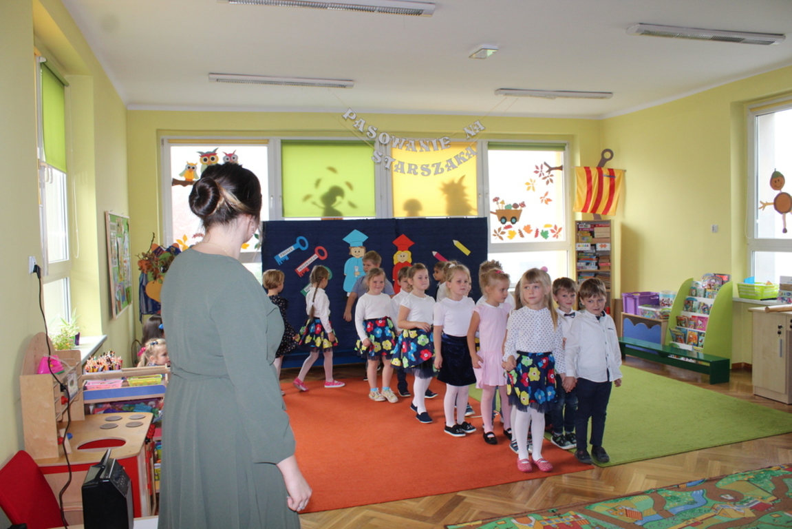 Pasowanie na przedszkolaka to wyjątkowa uroczystość, która odbyła się 22 października. Od samego rana trwały przygotowania, a w sali gromadzili się goście. Uroczystość rozpoczęły występy dzieci, które zaprezentowały przygotowane piosenki, tańce oraz wierszyki. Dla dzieci był to bardzo ważny występ. Po części artystycznej nastąpił akt pasowania, czyli dotknięcie ramienia każdego przedszkolaka ogromną kredką przez Panią Dyrektor Ewelinę Gawlik. Dla przedszkolaków było to wielkie przeżycie, a dla rodziców powód do dumy i zadowolenia ze swoich pociech.