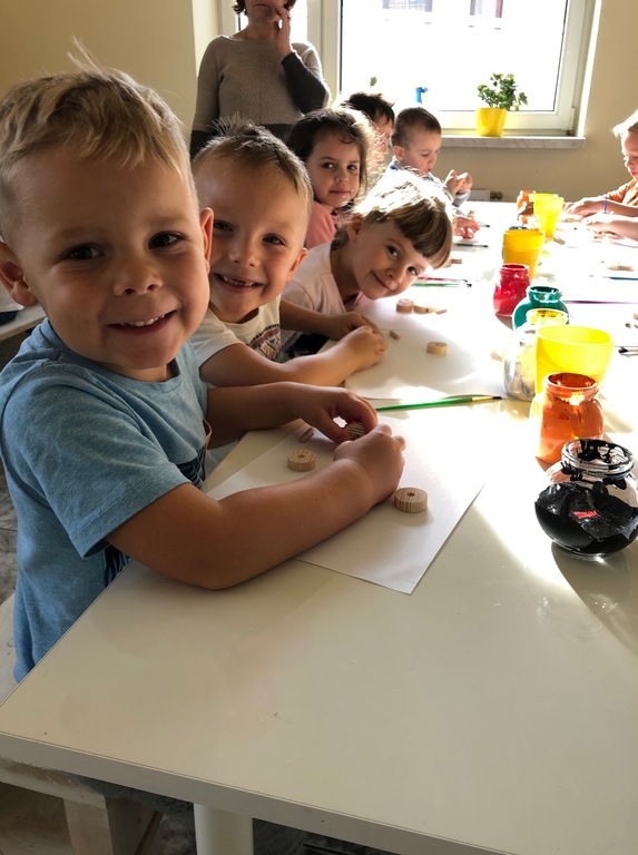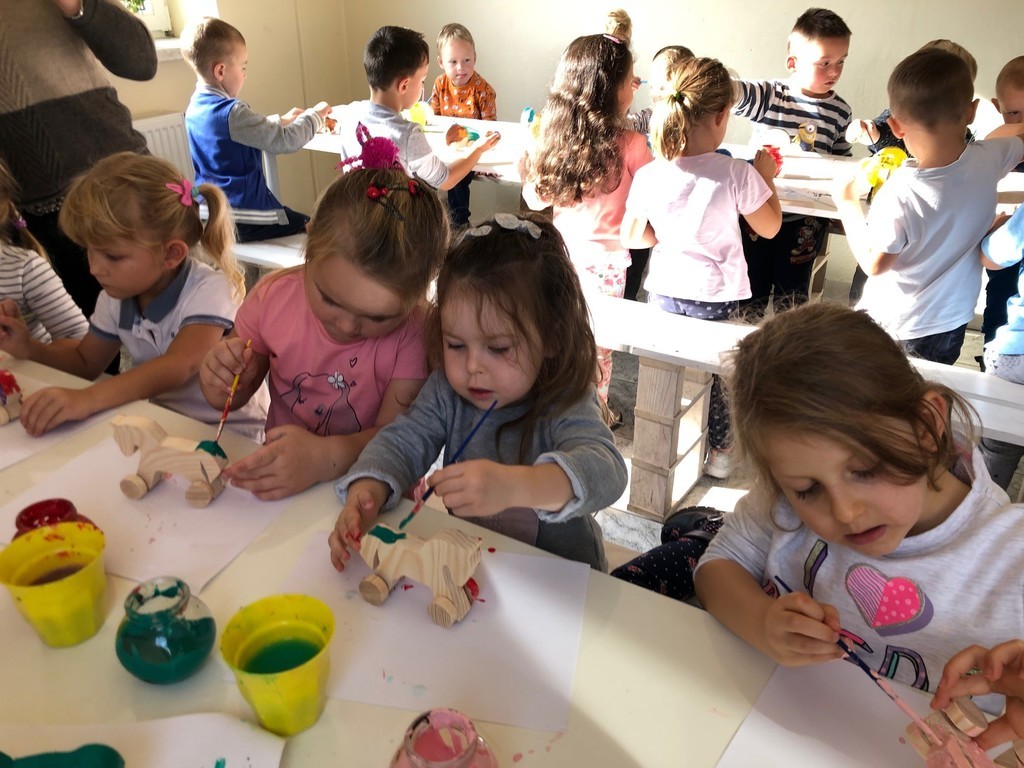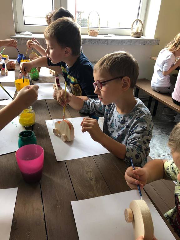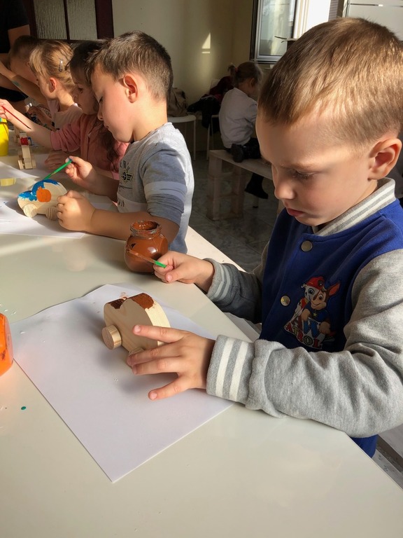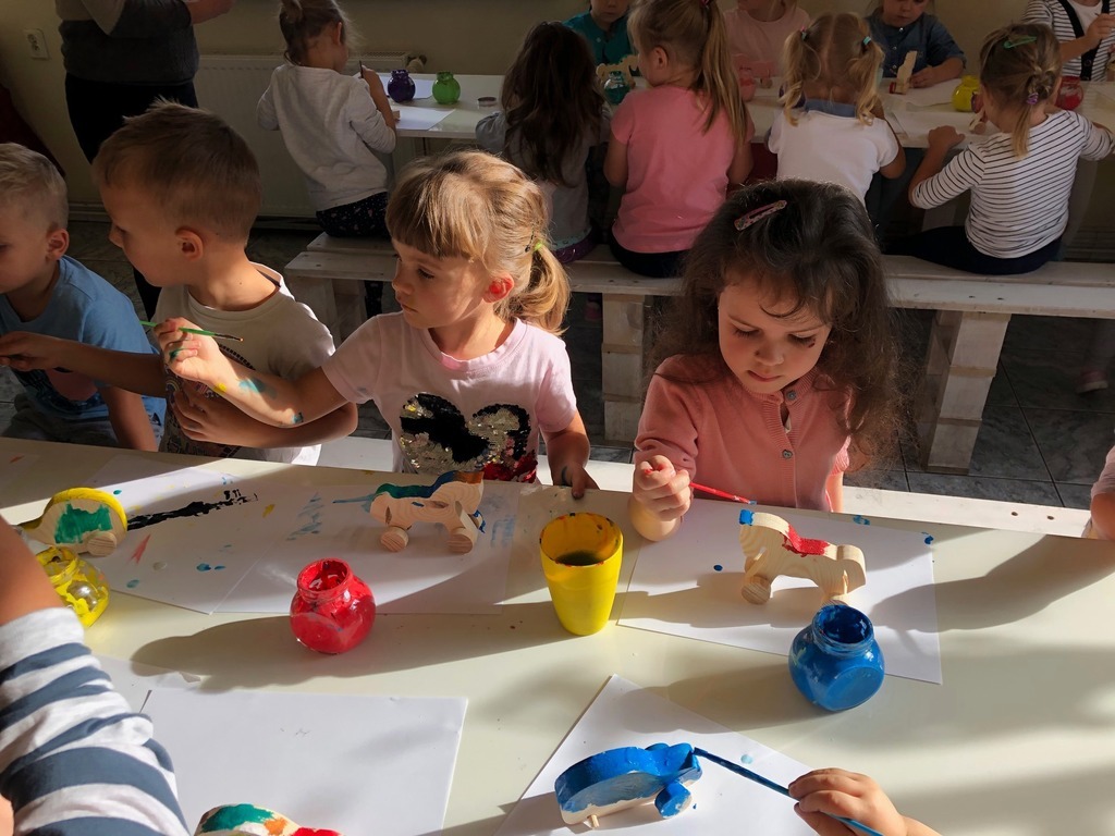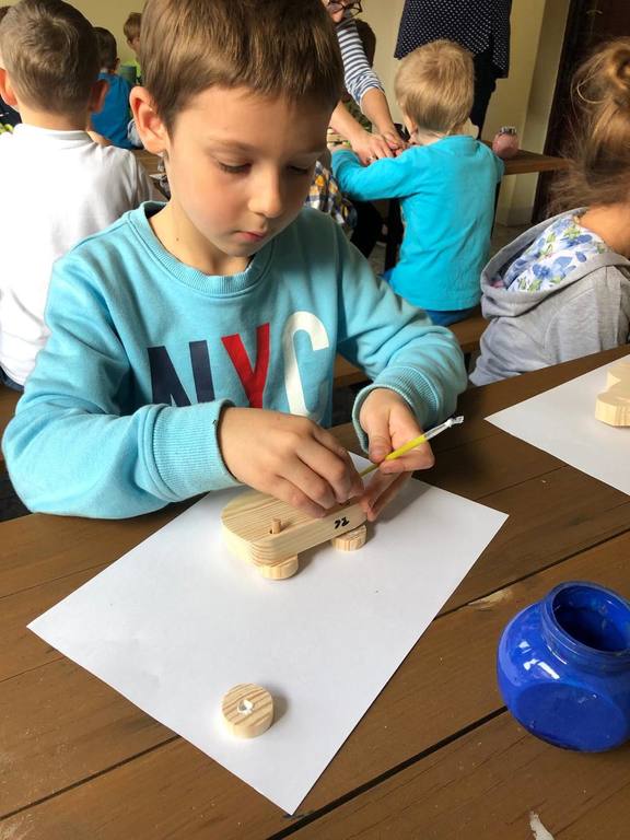 Dnia 22 pażdziernika grupa II i IV wraz z wychowawczyniami i opiekunami wybrały sie do "Etno Pracownii" w Żarkach. Dzieci uczestniczyły w warsztatach gdziez poznały tajniki powstawania zabawek z drewna. Dzieci pod okiem instruktorek wykonywały swoje zabawki: koniki, autka z drewna słuchając opowieści jak dawniej robiono zabawki. Poskładnie i pomalowanie własnej zabawki sprawiły dzieciom moc wrażeń, a fakt iż zabrały je do domów był najlepszą pamiątką z tegoż dnia.