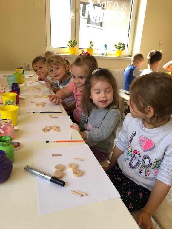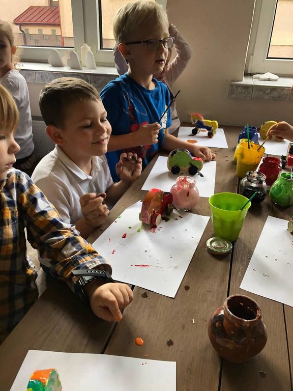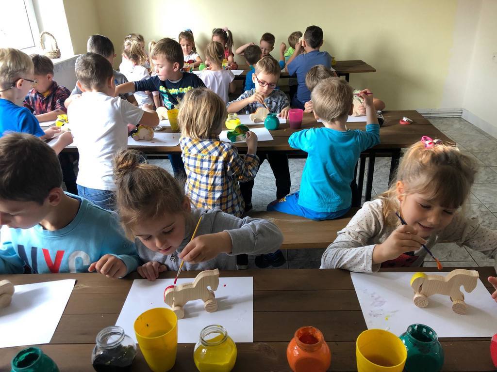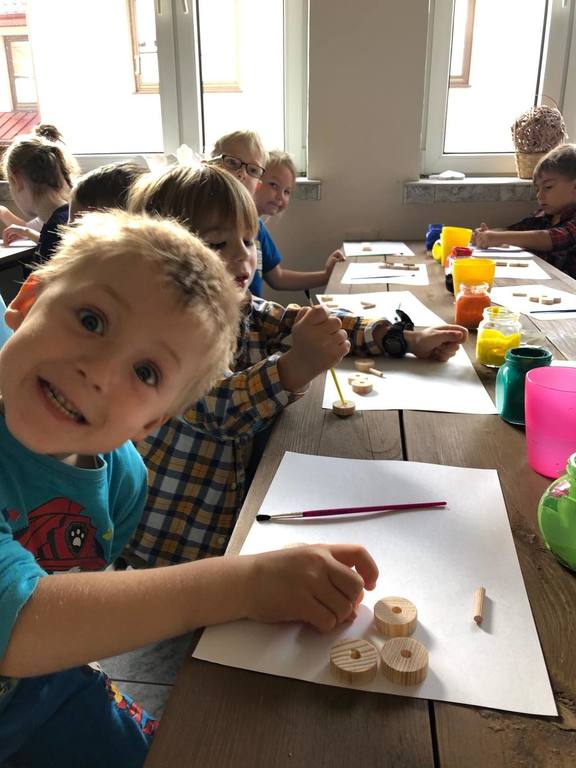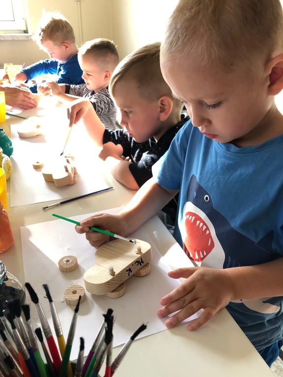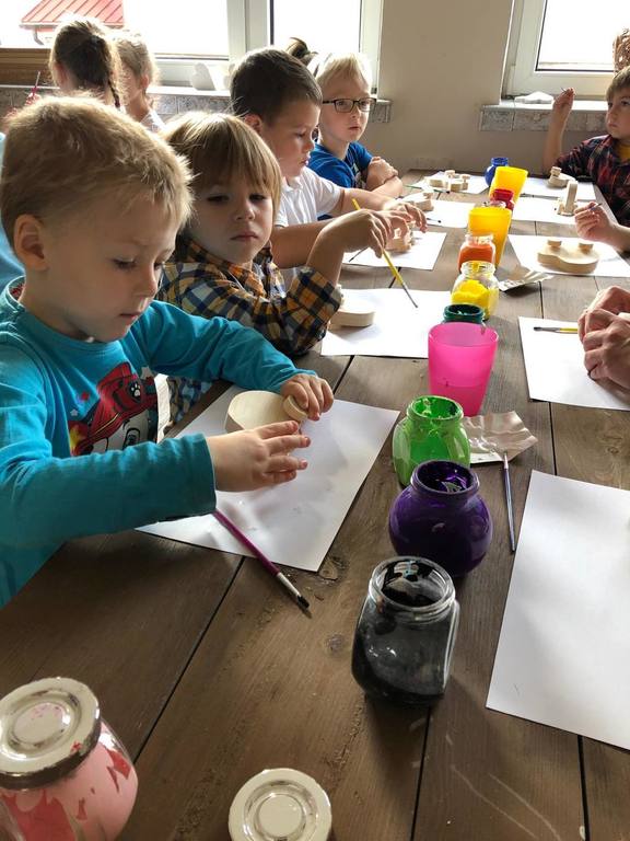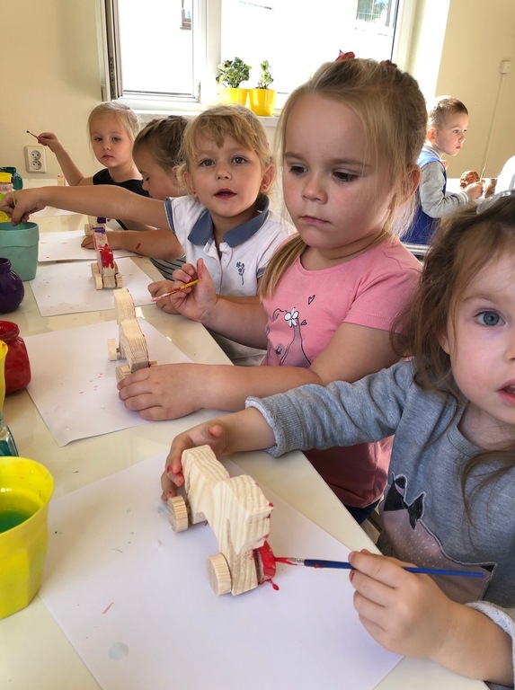 Dnia 22 pażdziernika grupa II i IV wraz z wychowawczyniami i opiekunami wybrały sie do "Etno Pracownii" w Żarkach. Dzieci uczestniczyły w warsztatach gdziez poznały tajniki powstawania zabawek z drewna. Dzieci pod okiem instruktorek wykonywały swoje zabawki: koniki, autka z drewna słuchając opowieści jak dawniej robiono zabawki. Poskładnie i pomalowanie własnej zabawki sprawiły dzieciom moc wrażeń, a fakt iż zabrały je do domów był najlepszą pamiątką z tegoż dnia.