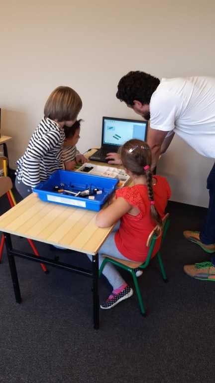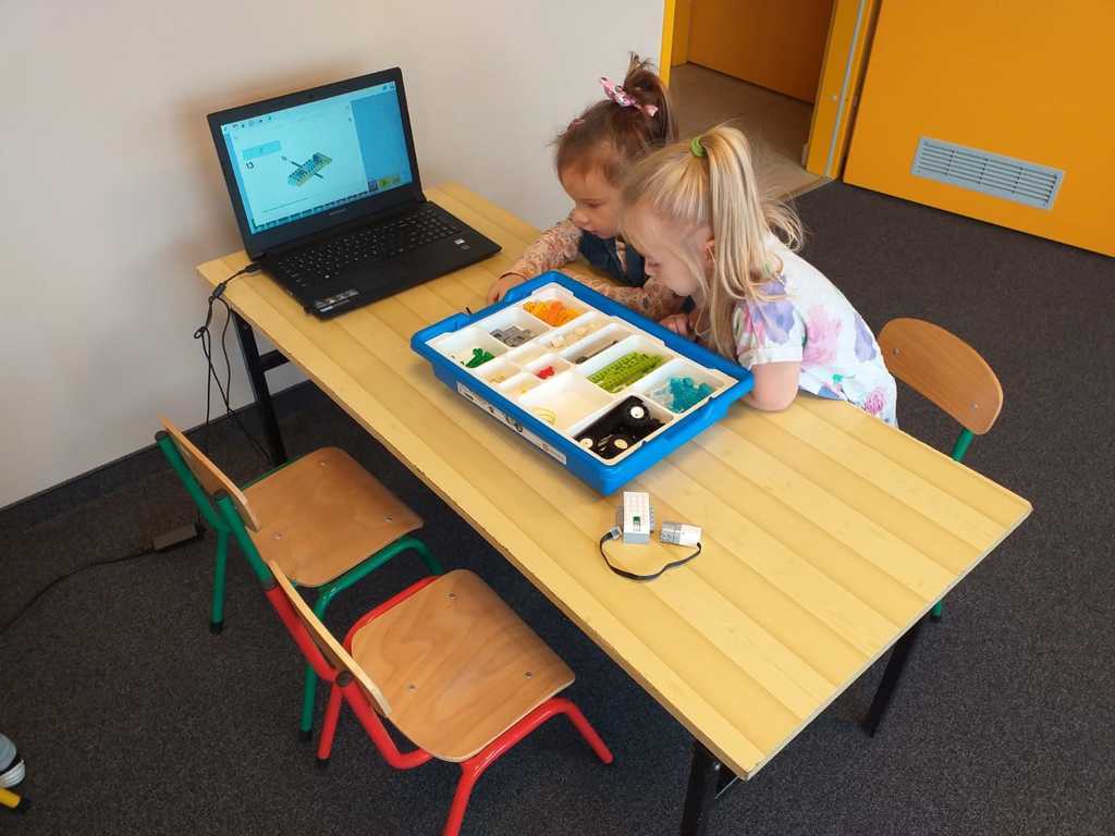 Na wstępie zajęć dzieci zostały zapoznane z zasadami zajęć. Po części teoretycznej dzieci budowały z klocków LEGO model zwierząt. Kolorowe klocki LEGO® przyciągały młodych odkrywców, zachęcając ich do zabawy. Dodatkowe elementy tj. silnik czy czujnik sprawiają, że zbudowane pojazdy, zwierzątka czy budowle zaczynają ożywać. Dlaczego tak się dzieje, co sprawia, że jeden samochód jedzie szybciej a drugi wolniej – ciekawość dzieci w tym wieku powoduje przyswajanie wiedzy technicznej już na tak wczesnym etapie życia naszych pociech.