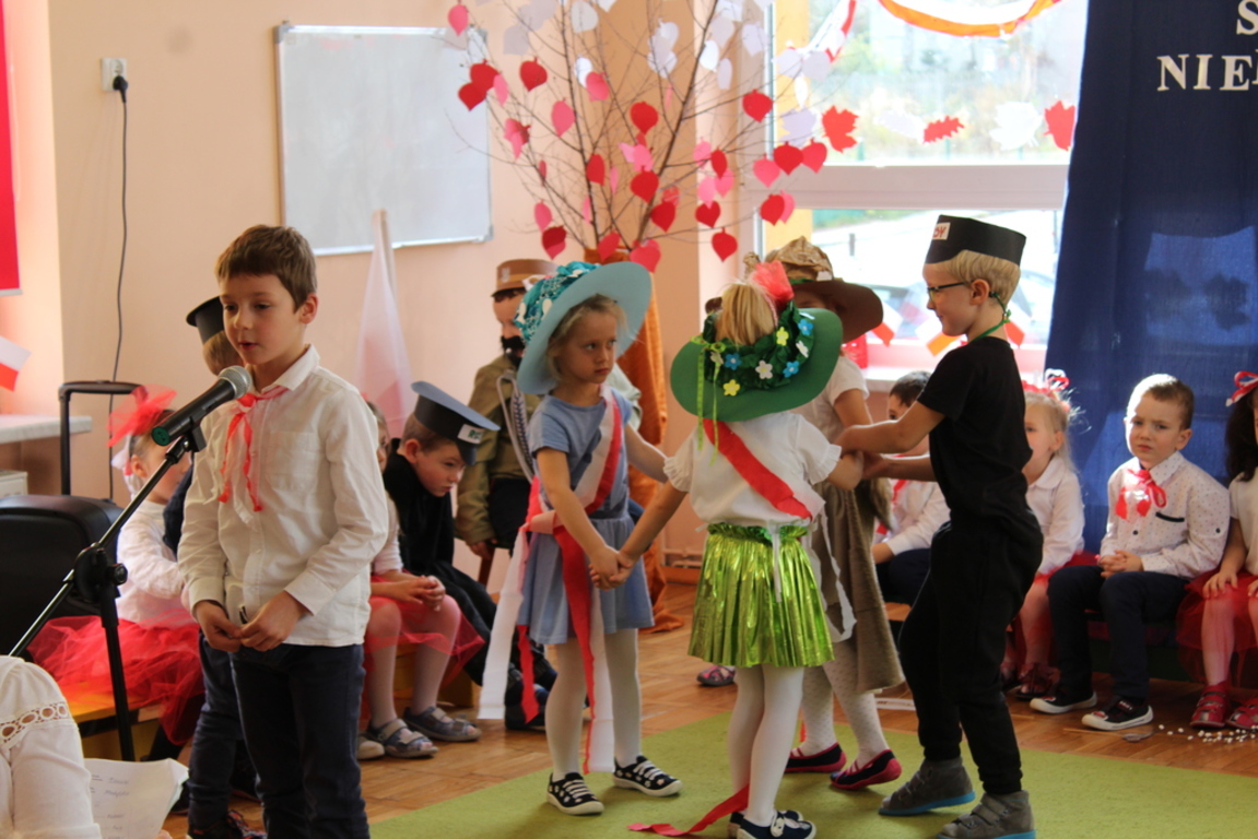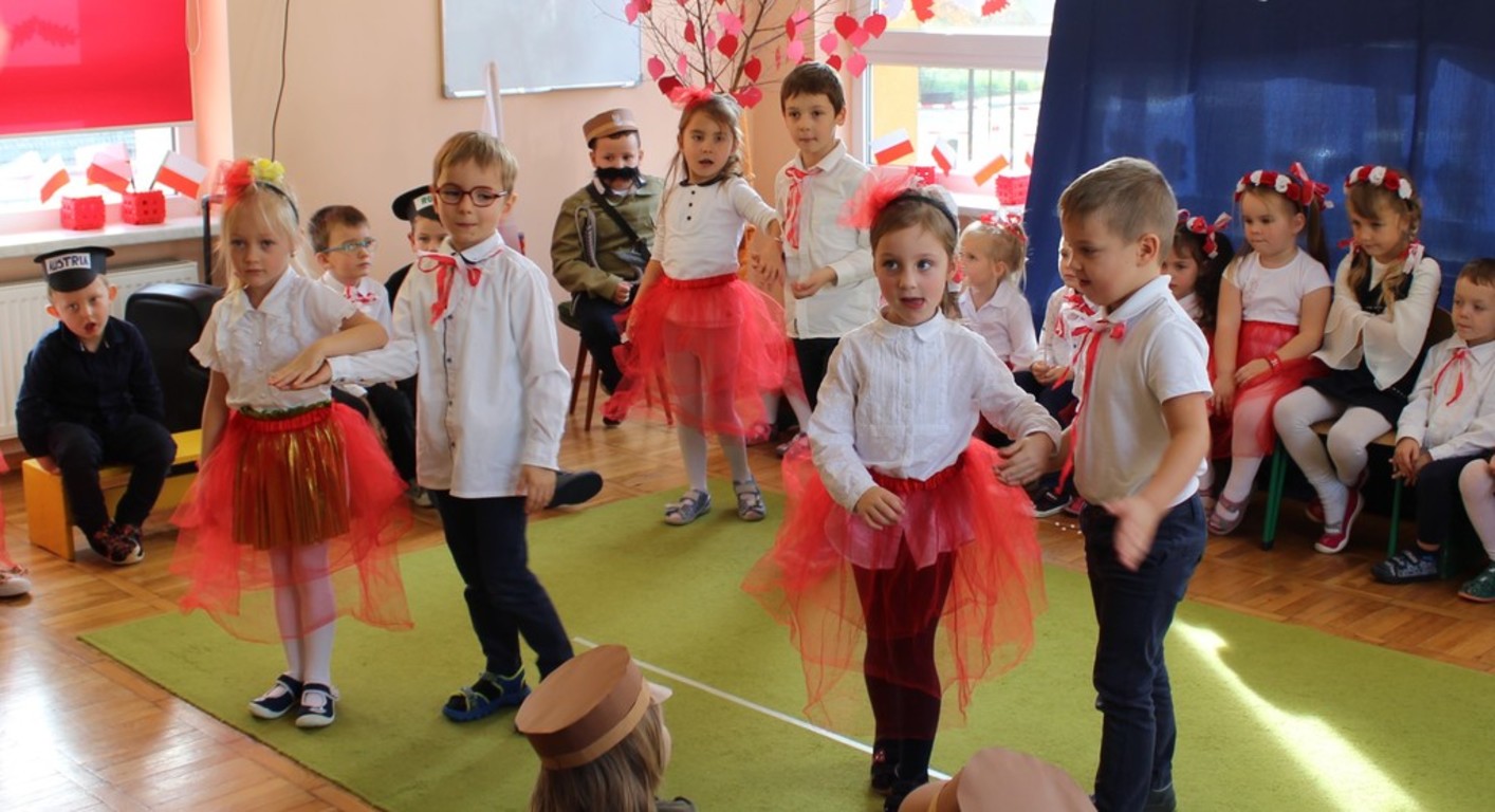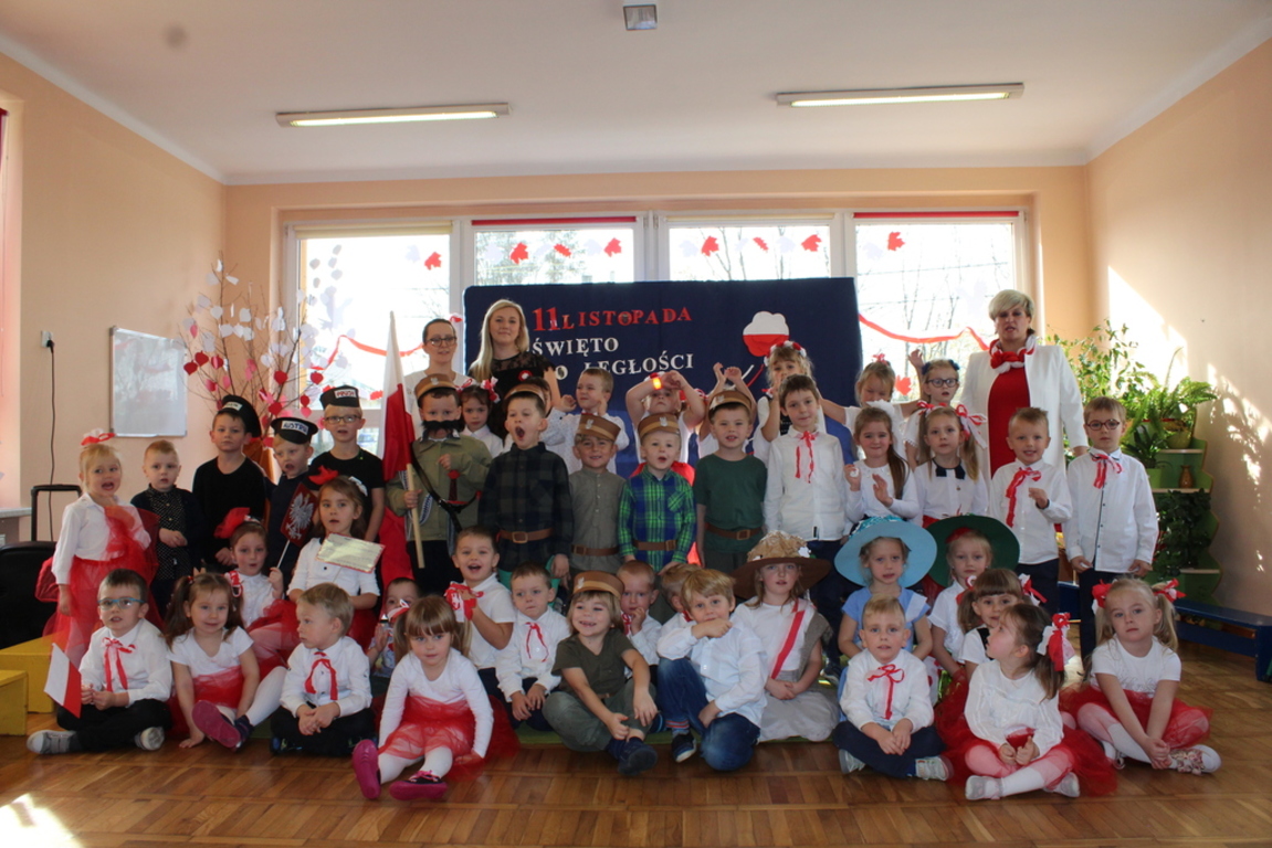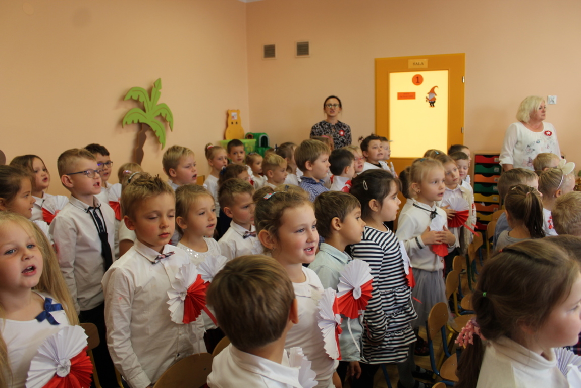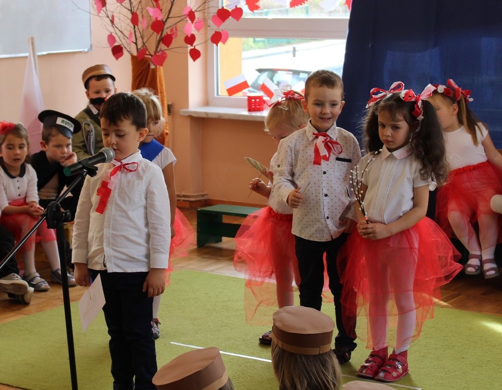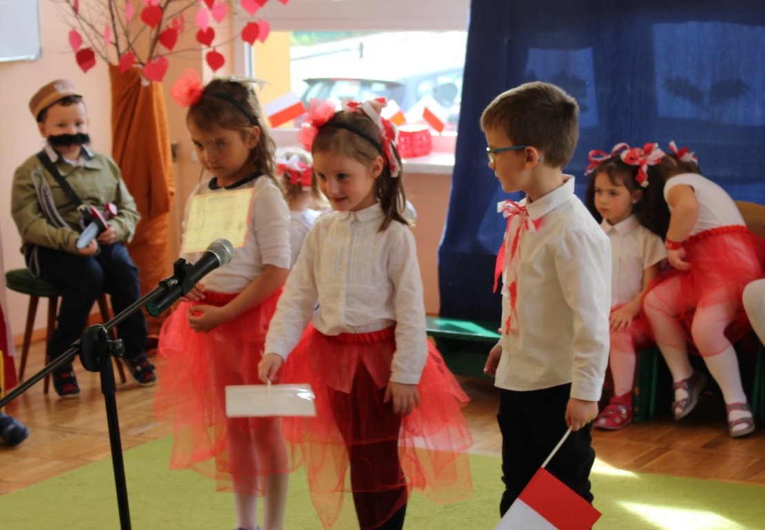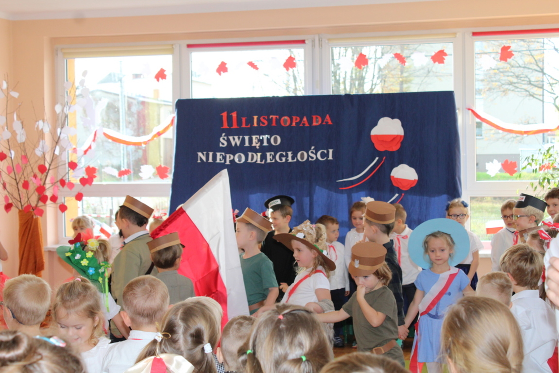 Pamiętając, że nie zawsze mogliśmy cieszyć się wolnością grupy II i IV pod kierunkiem wychowawczyń, Pań Magdaleny Jegerczyk i Anny Skop zaprezentowały program artystyczny podczas którego, zaprezentowana została krótka inscenizacja dotycząca tak ważnego wydarzenia jakim było odzyskanie przez Polskę Niepodległości. Dzieci recytowały również wiersze patriotyczne jak i te tłumaczące sens współczesnej polskości oraz nawiązujące do dostrzegania piękna ojczyzny.