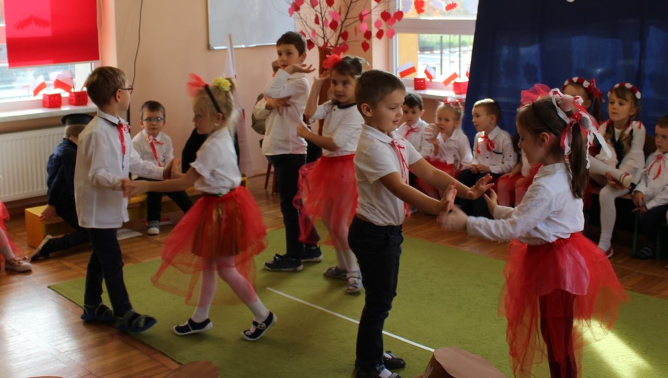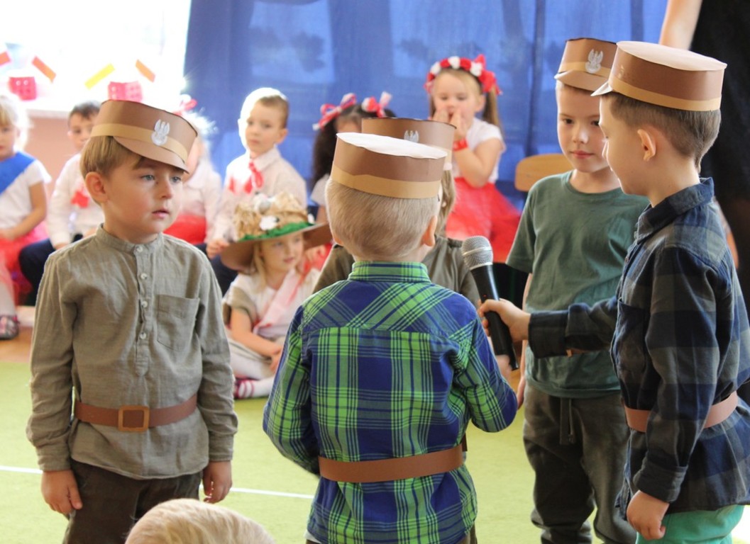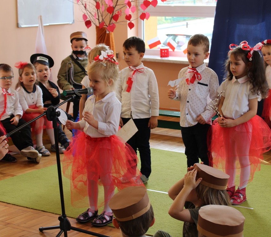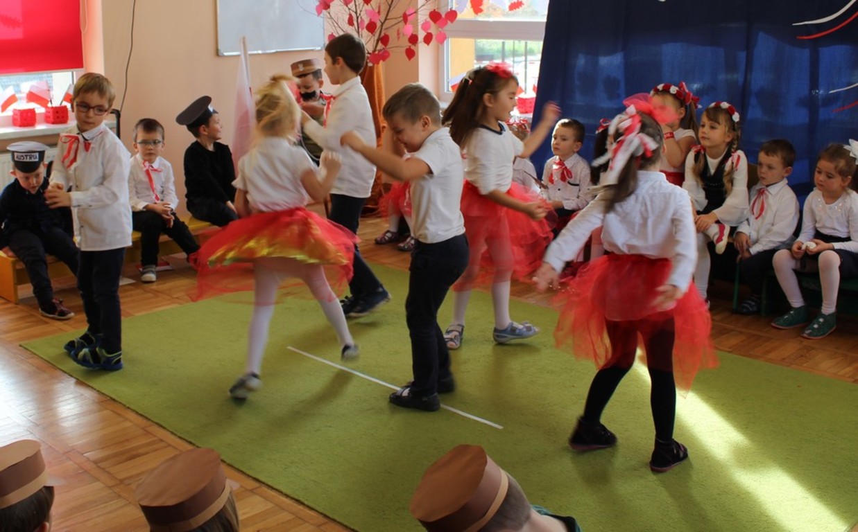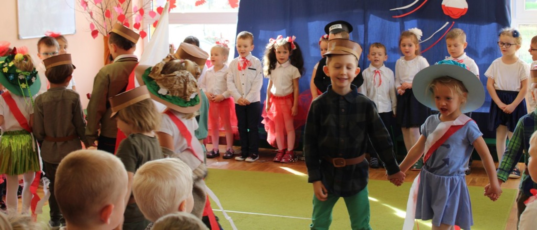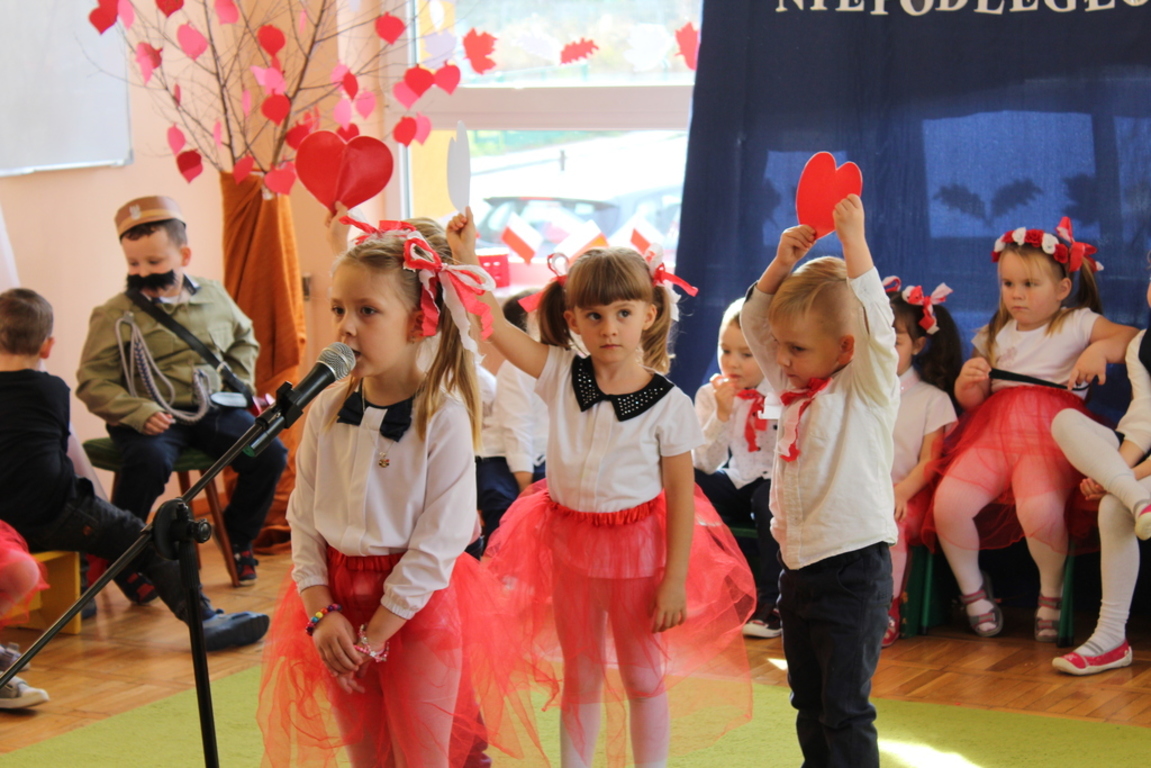 Pamiętając, że nie zawsze mogliśmy cieszyć się wolnością grupy II i IV pod kierunkiem wychowawczyń, Pań Magdaleny Jegerczyk i Anny Skop zaprezentowały program artystyczny podczas którego, zaprezentowana została krótka inscenizacja dotycząca tak ważnego wydarzenia jakim było odzyskanie przez Polskę Niepodległości. Dzieci recytowały również wiersze patriotyczne jak i te tłumaczące sens współczesnej polskości oraz nawiązujące do dostrzegania piękna ojczyzny.