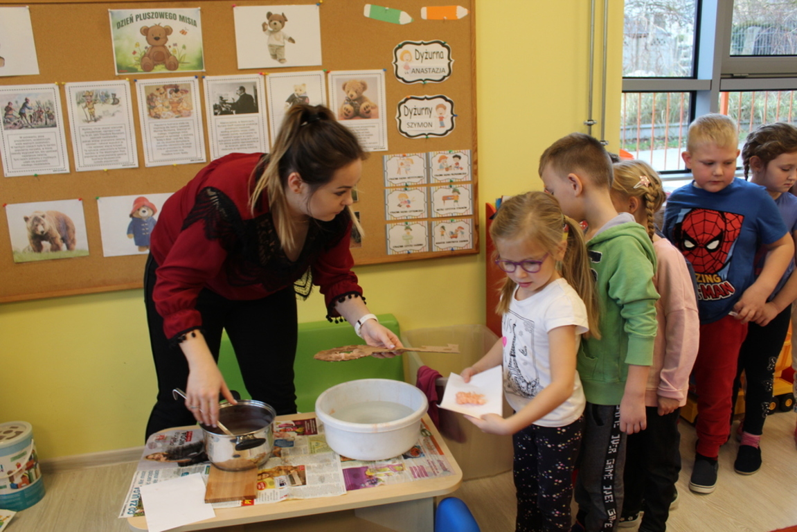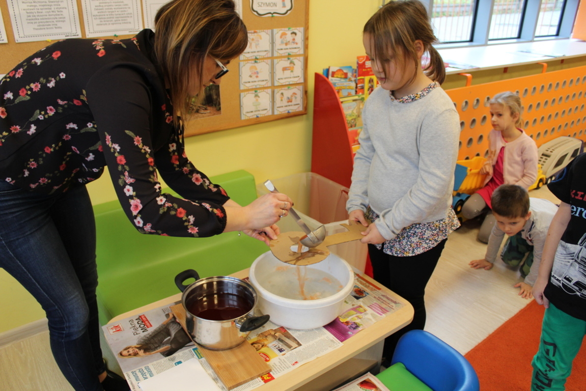 Andrzejki” to stary ludowy zwyczaj. Wróżby czyniono 29 listopada. Miały one dać odpowiedź na pytanie, co kogo czeka w przyszłości. W wigilię św. Andrzeja prześcigano się więc w pomysłach, by z najróżniejszych oznak wyczytać swoją przyszłość. Tradycja wróżb przetrwała do dzisiaj. Obecnie “Andrzejki” są wspaniałą zabawą, dostarczającą wielu przeżyć i emocji. W naszym przedszkolu, tradycją ubiegłych lat, również w tym roku świętowaliśmy “Andrzejki”. Wszystkie przedszkolaki mogły, jeśli tylko chciały, zajrzeć w przyszłość, sprawdzić co je czeka. Do tego celu posłużyła, najbardziej znana andrzejkowa wróżba – lanie wosku, oraz inne wesołe zabawy. Czy wróżby się spełnią – przyszłość pokaże. Pewne jest to, że przyniosły dzieciom wiele radości, były okazją do wspólnej zabawy.