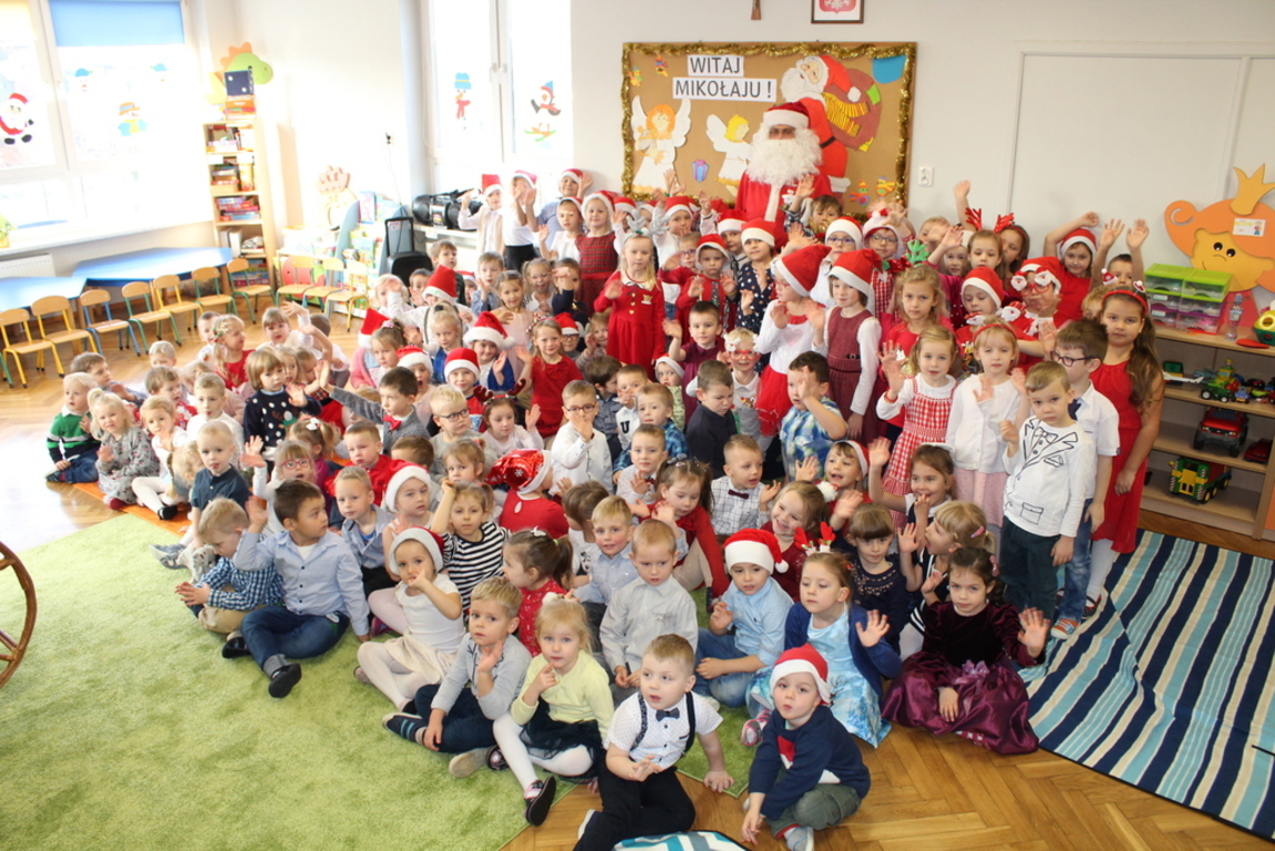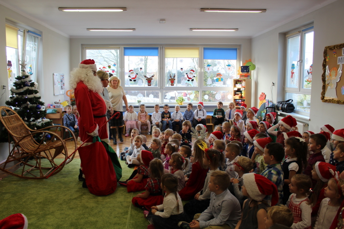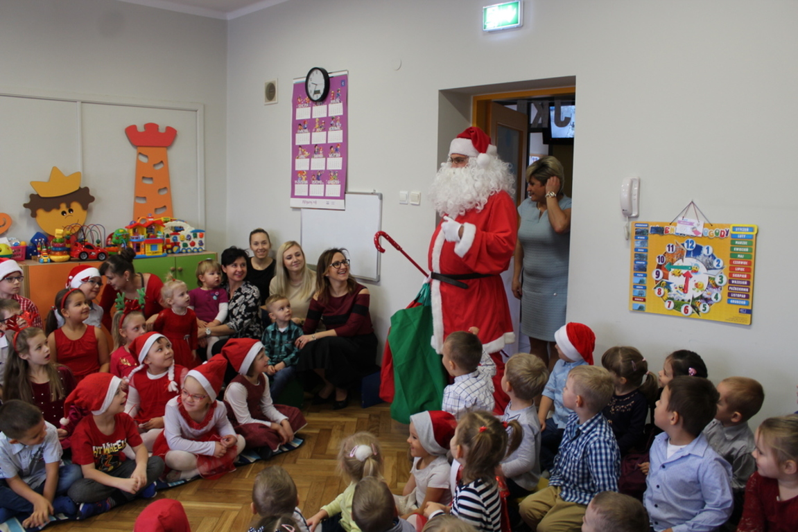 Dnia 06 grudnia w naszym przedszkolu pojawił się długo oczekiwany gość Mikołaj. Pomimo braku śniegu w godzinach rannych przybył do przedszkola. Na jego wizytę dzieci cierpliwie czekały cały tydzień przygotowując się do spotkania z niezwykłym gościem. Po śniadaniu udaliśmy się wszyscy do jednej z sal by tam powitać Mikołaja wierszem i piosenką. Spotkanie z Mikołajem minęło w bardzo miłej atmosferze i przyniosła dzieciom wiele radości. Mikołaj obdarował wszystkie dzieci prezentami. Cieszymy się, że Mikołaj o nas pamiętał i czekamy na jego wizytę w przyszłym roku.