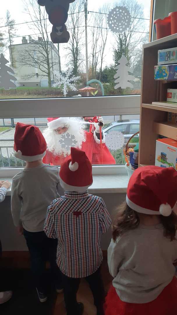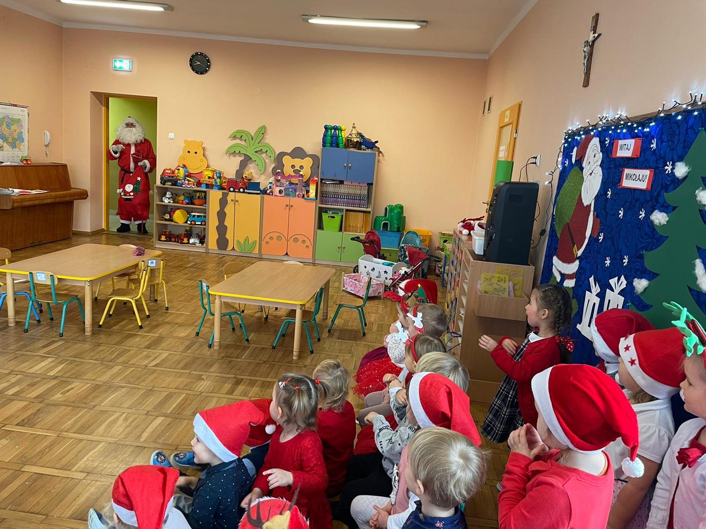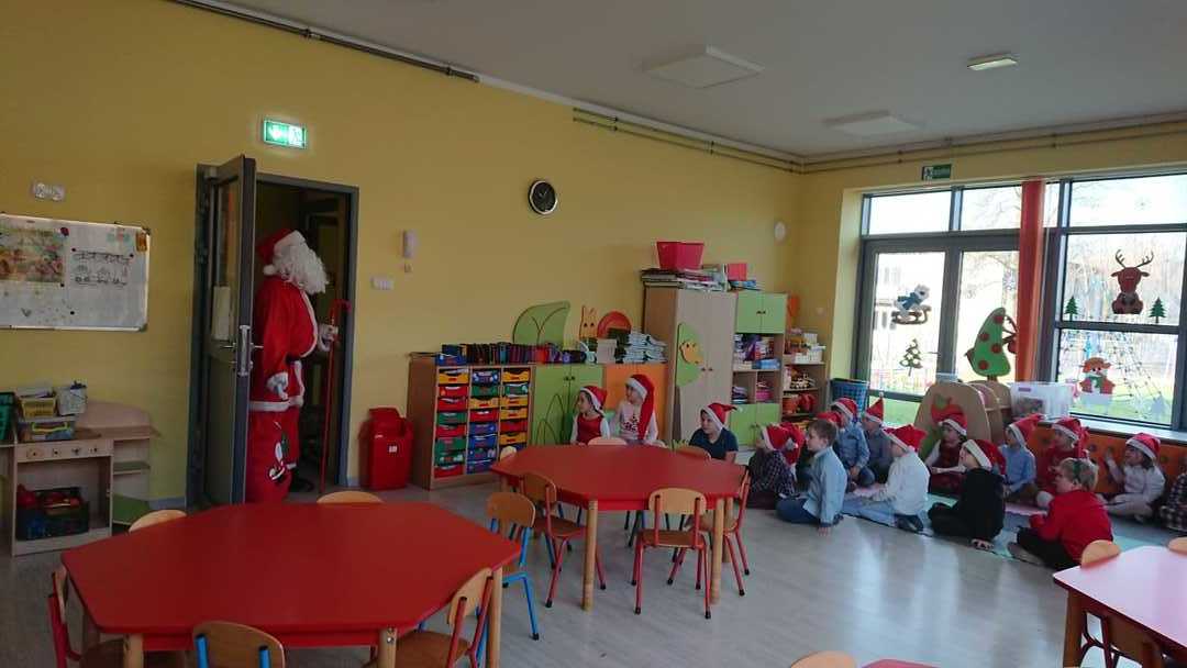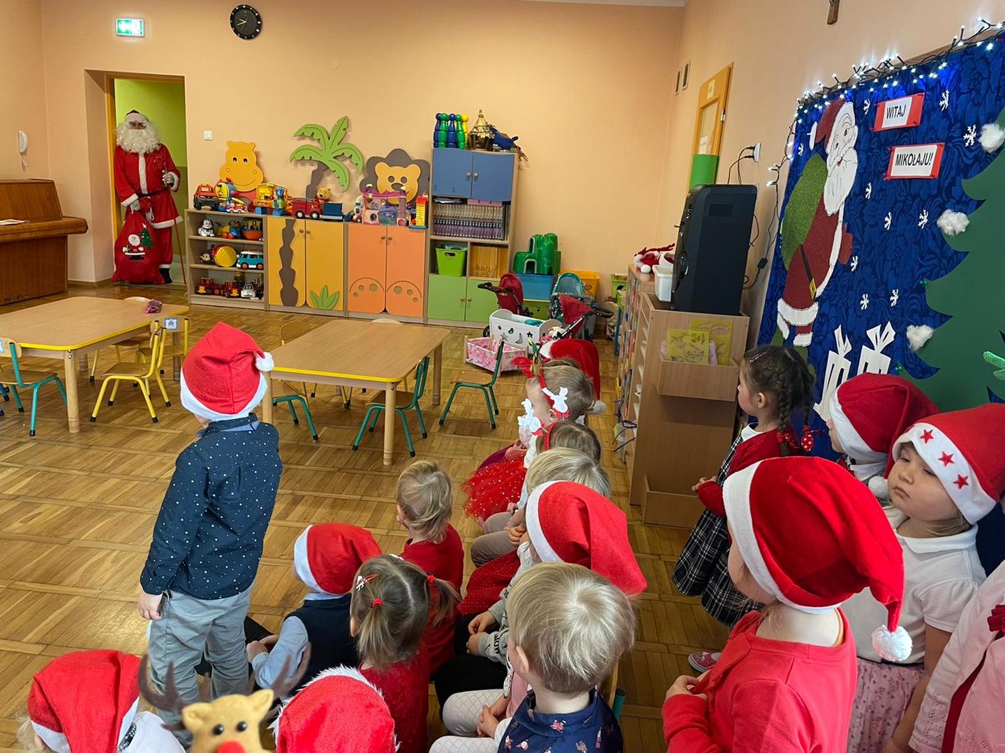 7 grudnia nasze przedszkole odwiedził bardzo miły i długo oczekiwany gość. Miał czerwony strój, długą, białą brodę, dźwigał na plecach bardzo ciężki worek, a w nim prezenty. To nie mógł być nikt inny tylko MIKOŁAJ- niezwykle wesoły, rozmowny i chętny do wspólnej zabawy i tańca. Pomimo braku białego puchu, jak co roku przybył na czas. We wszystkich grupach spotkanie przebiegało w bardzo radosnej i przyjaznej atmosferze. Przedszkolaki śpiewały Mikołajowi piosenki, recytowały wierszyki. Święty Mikołaj obdarował wszystkie dzieci prezentami. Na twarzach dzieci malowała się wielka radość i przejęcie, a także nadzieja na kolejne spotkanie. Święty Mikołaju bardzo dziękujemy za odwiedziny i do zobaczenia za rok!