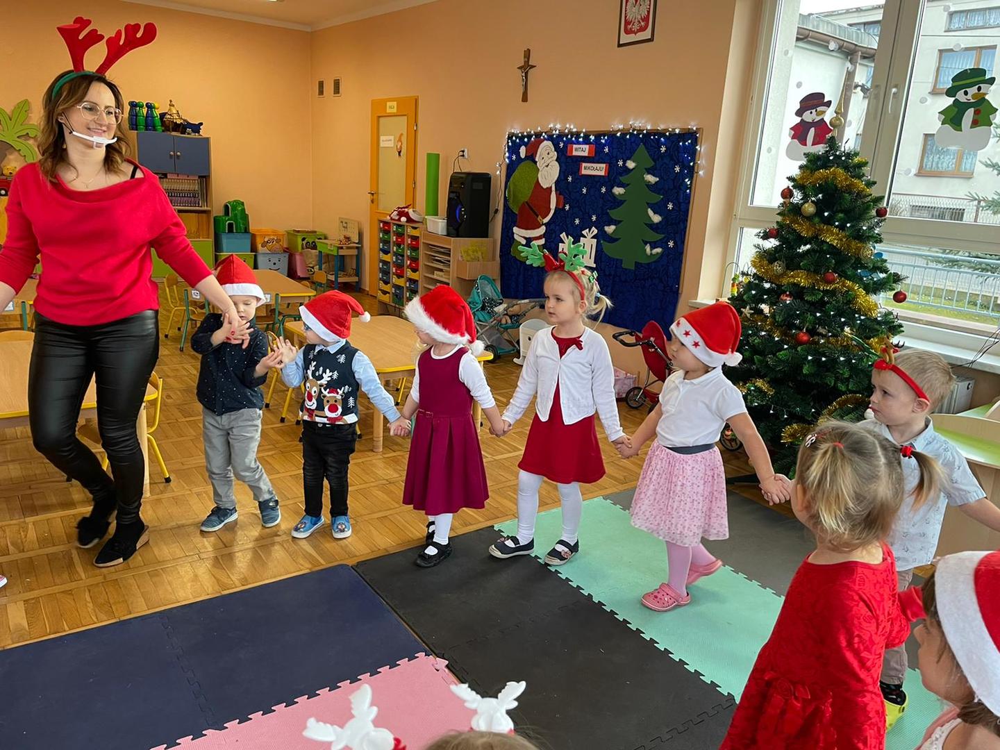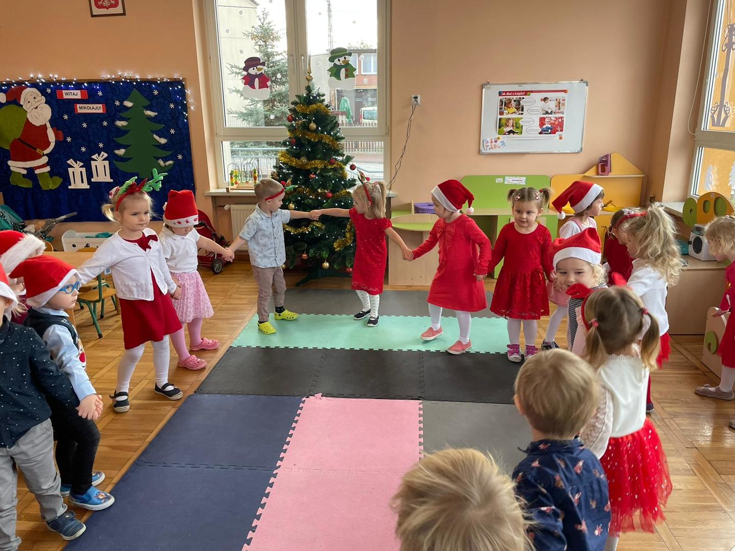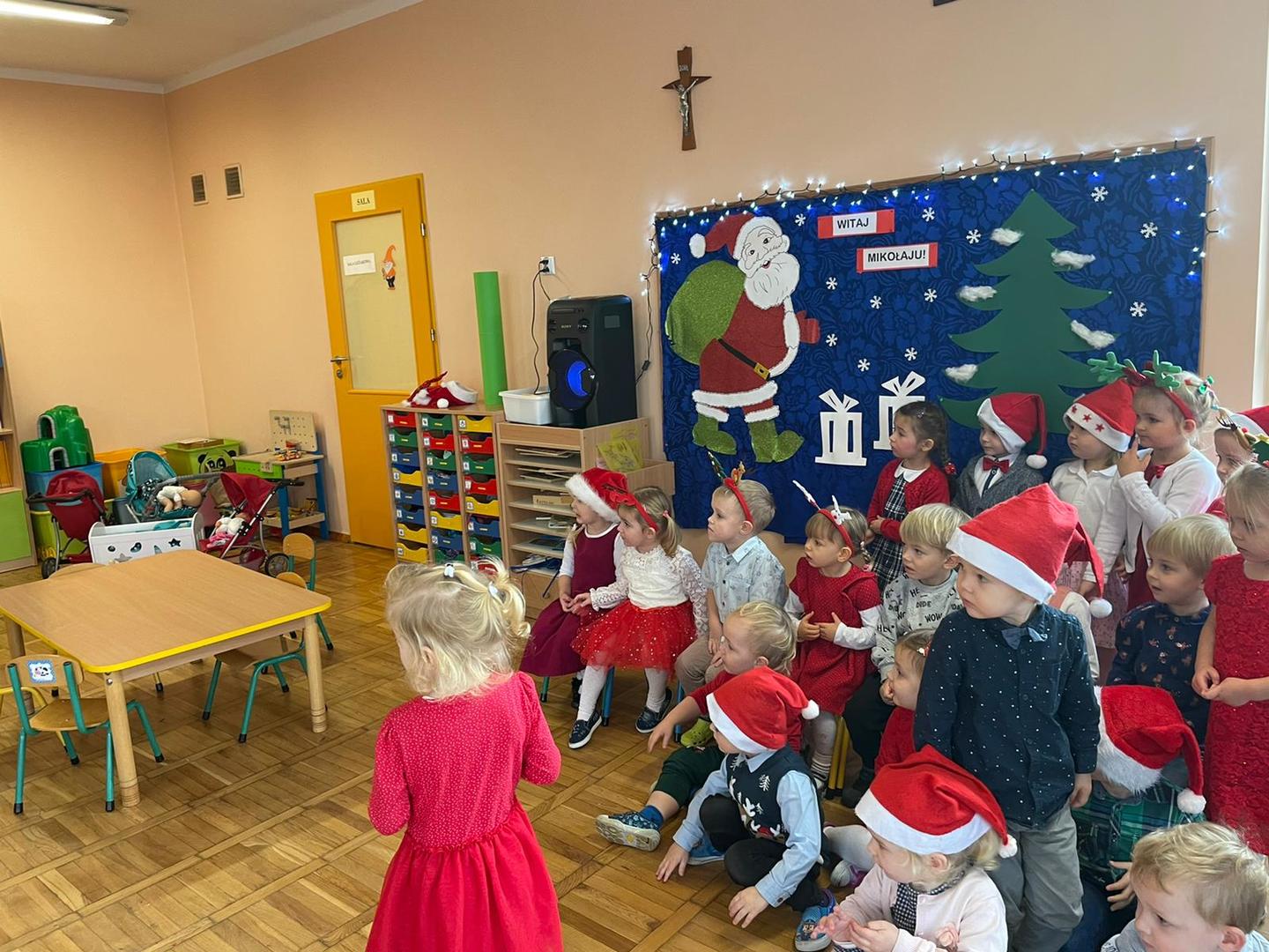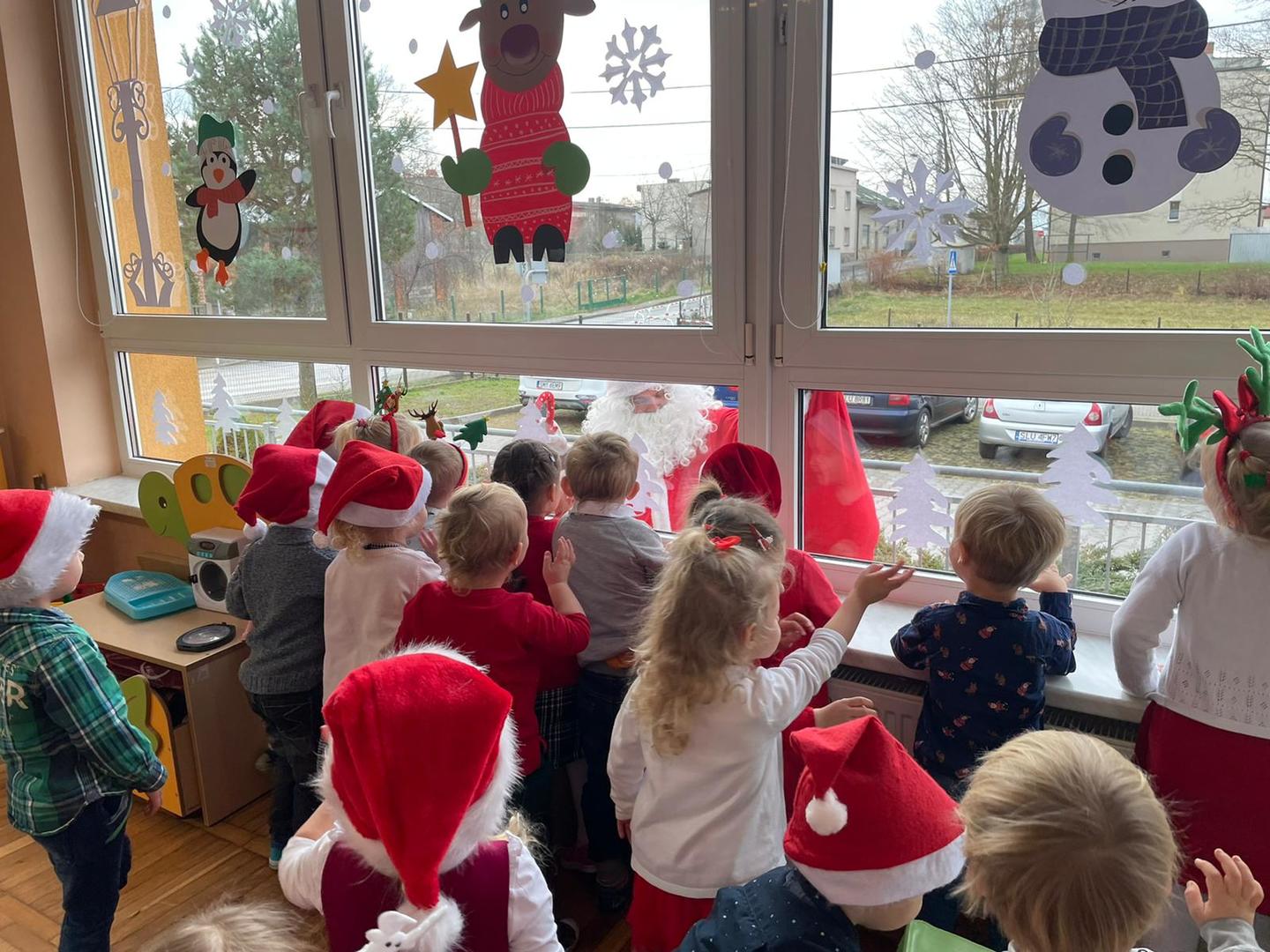 7 grudnia nasze przedszkole odwiedził bardzo miły i długo oczekiwany gość. Miał czerwony strój, długą, białą brodę, dźwigał na plecach bardzo ciężki worek, a w nim prezenty. To nie mógł być nikt inny tylko MIKOŁAJ- niezwykle wesoły, rozmowny i chętny do wspólnej zabawy i tańca. Pomimo braku białego puchu, jak co roku przybył na czas. We wszystkich grupach spotkanie przebiegało w bardzo radosnej i przyjaznej atmosferze. Przedszkolaki śpiewały Mikołajowi piosenki, recytowały wierszyki. Święty Mikołaj obdarował wszystkie dzieci prezentami. Na twarzach dzieci malowała się wielka radość i przejęcie, a także nadzieja na kolejne spotkanie. Święty Mikołaju bardzo dziękujemy za odwiedziny i do zobaczenia za rok!