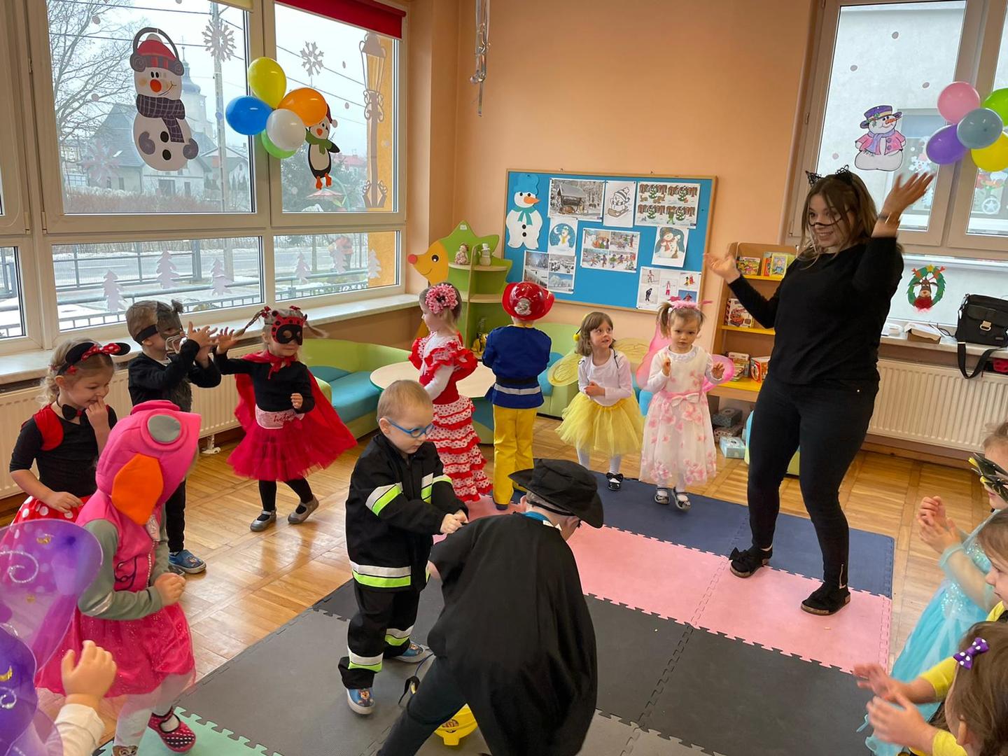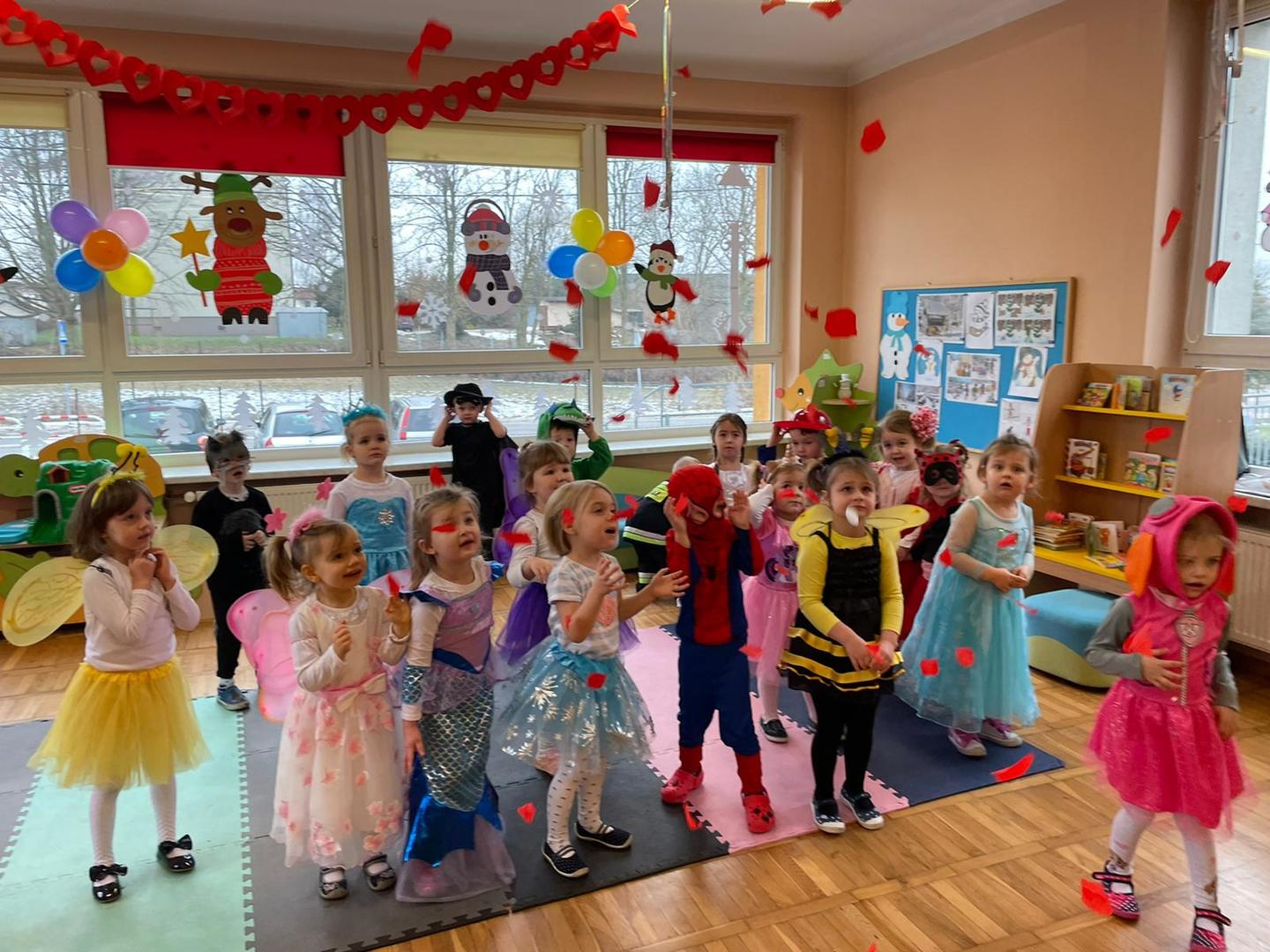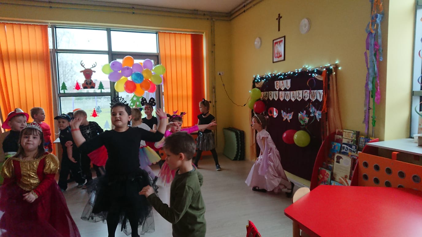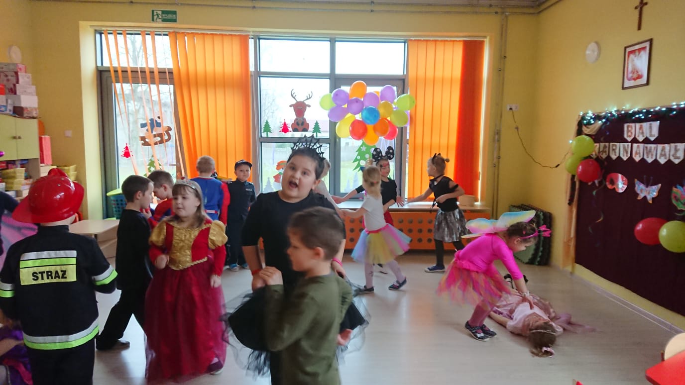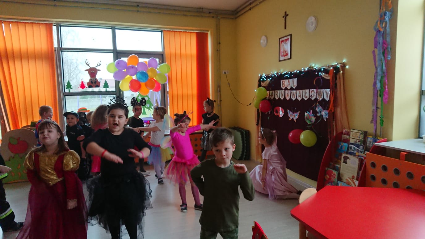 Karnawał to miła tradycja, przepełniona muzyką i zabawą, gdzie ważnym elementem tego okresu są bale. Bal karnawałowy dla przedszkolaków to niezwykły, długo wyczekiwany dzień. Jest atrakcją bardzo lubianą przez dzieci, dostarczającą im wielu przeżyć i radości. Tak też było w piątek,5 lutego, kiedy w naszym przedszkolu odbył się bal. Dzieci przyszły przebrane w przepiękne stroje, były księżniczki, policjanci, jednorożce, piłkarze, spirder -man, oraz nie zabrakło różnych zwierzatek jak sowa czy też pajak i iwiele wiele innych postaci. Na sali, podczas pląsów, było bardzo wesoło oraz kolorowo. Uśmiech nie znikał z dziecięcych twarzy, mimo chwilowego zmęczenia. Nie zabrakło również konkursów, w których przedszkolaki chętnie uczestniczyły, dopingując się nawzajem.