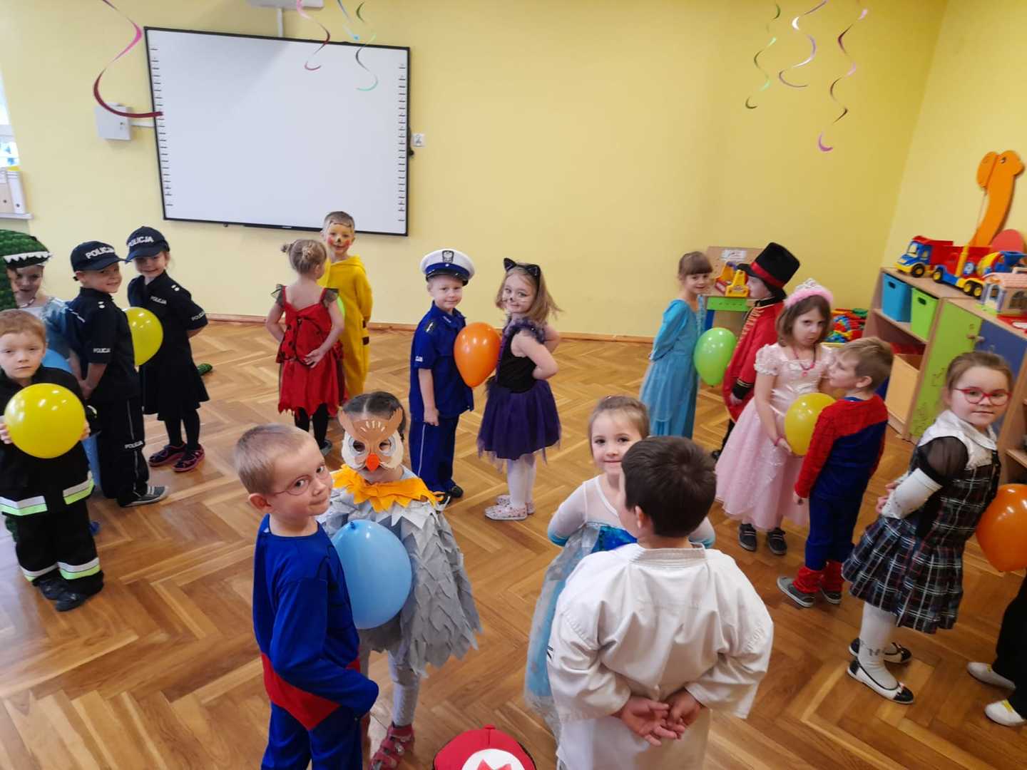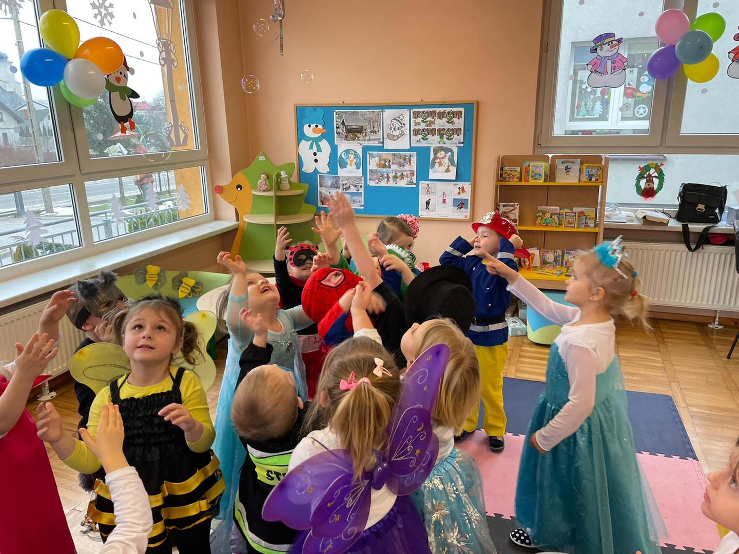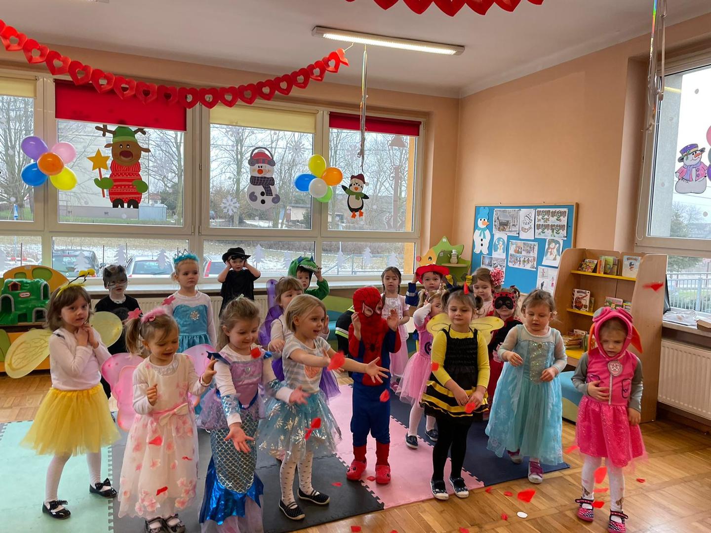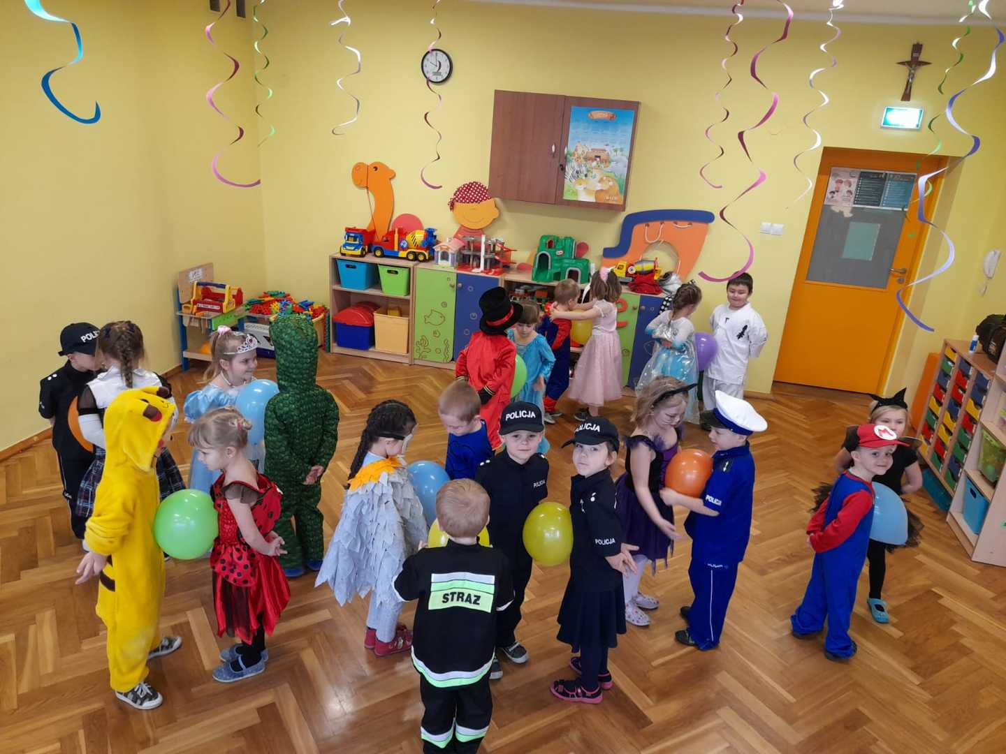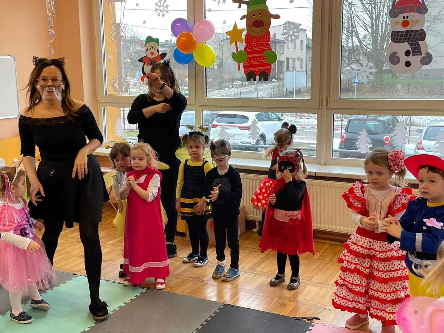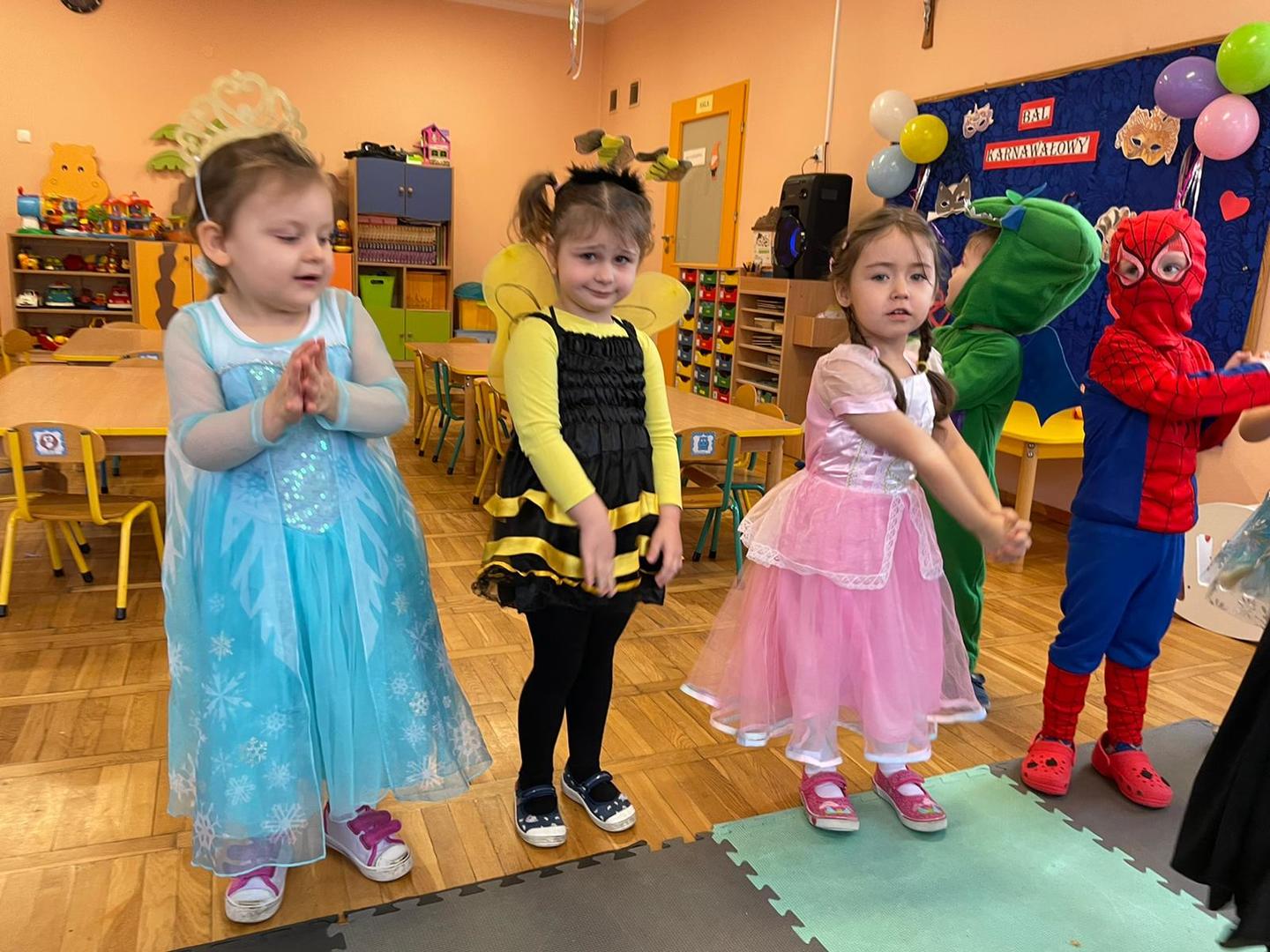 Karnawał to miła tradycja, przepełniona muzyką i zabawą, gdzie ważnym elementem tego okresu są bale. Bal karnawałowy dla przedszkolaków to niezwykły, długo wyczekiwany dzień. Jest atrakcją bardzo lubianą przez dzieci, dostarczającą im wielu przeżyć i radości. Tak też było w piątek,5 lutego, kiedy w naszym przedszkolu odbył się bal. Dzieci przyszły przebrane w przepiękne stroje, były księżniczki, policjanci, jednorożce, piłkarze, spirder -man, oraz nie zabrakło różnych zwierzatek jak sowa czy też pajak i iwiele wiele innych postaci. Na sali, podczas pląsów, było bardzo wesoło oraz kolorowo. Uśmiech nie znikał z dziecięcych twarzy, mimo chwilowego zmęczenia. Nie zabrakło również konkursów, w których przedszkolaki chętnie uczestniczyły, dopingując się nawzajem.