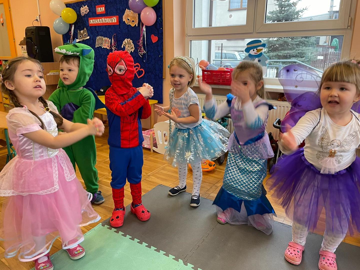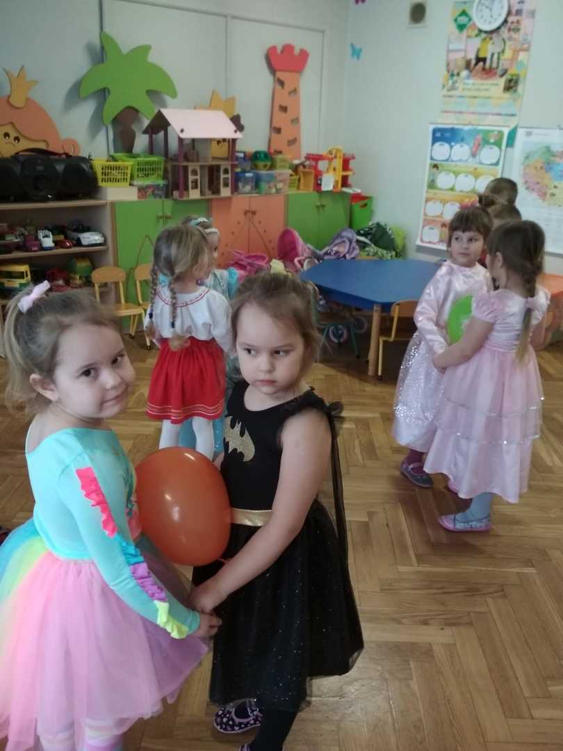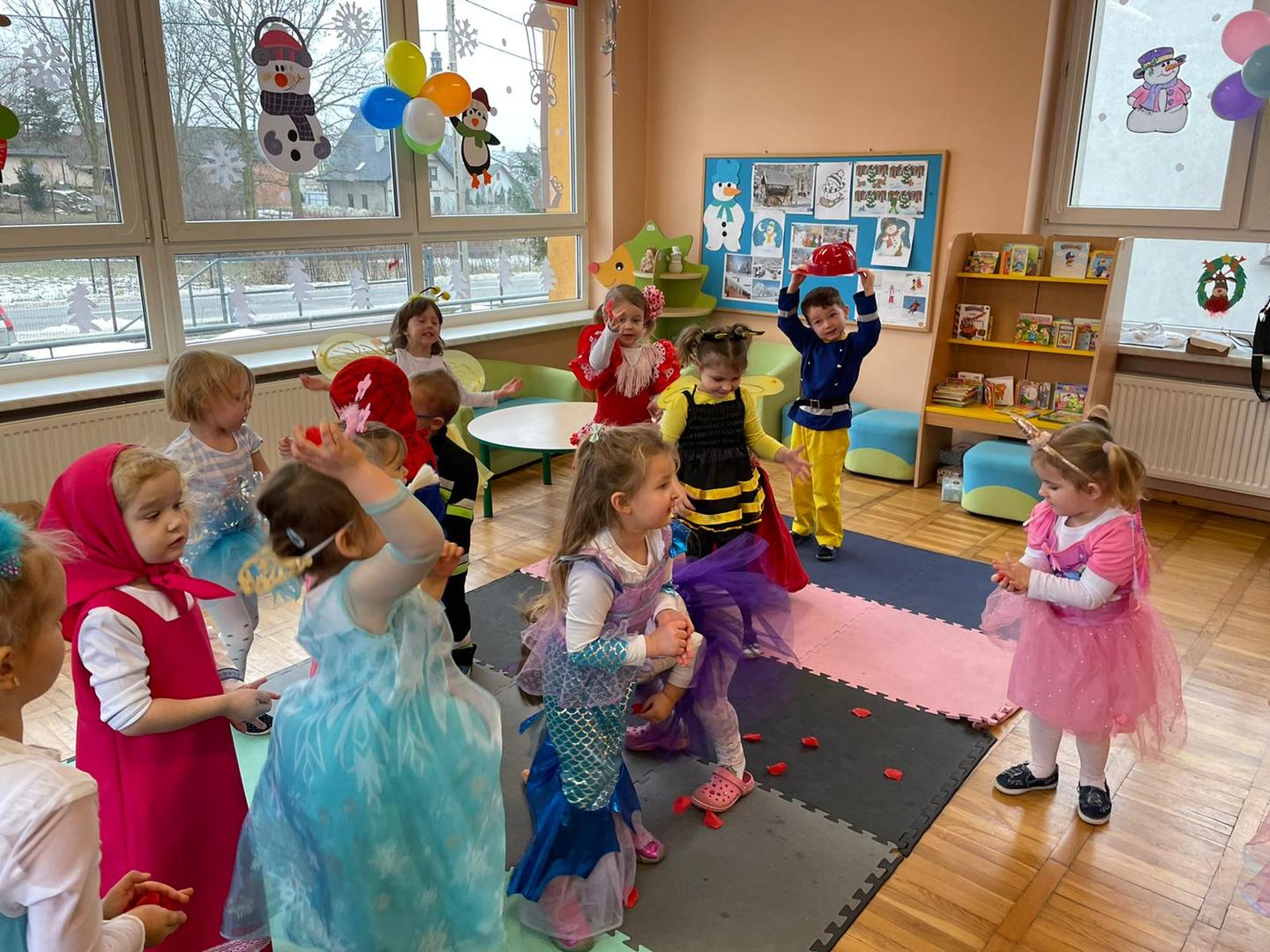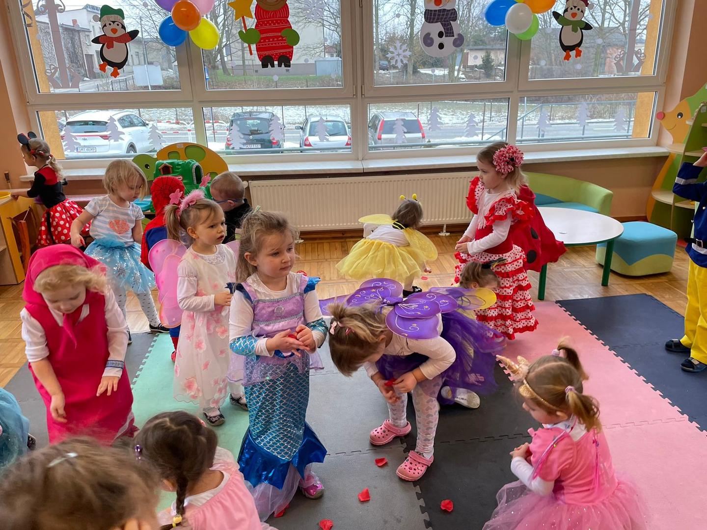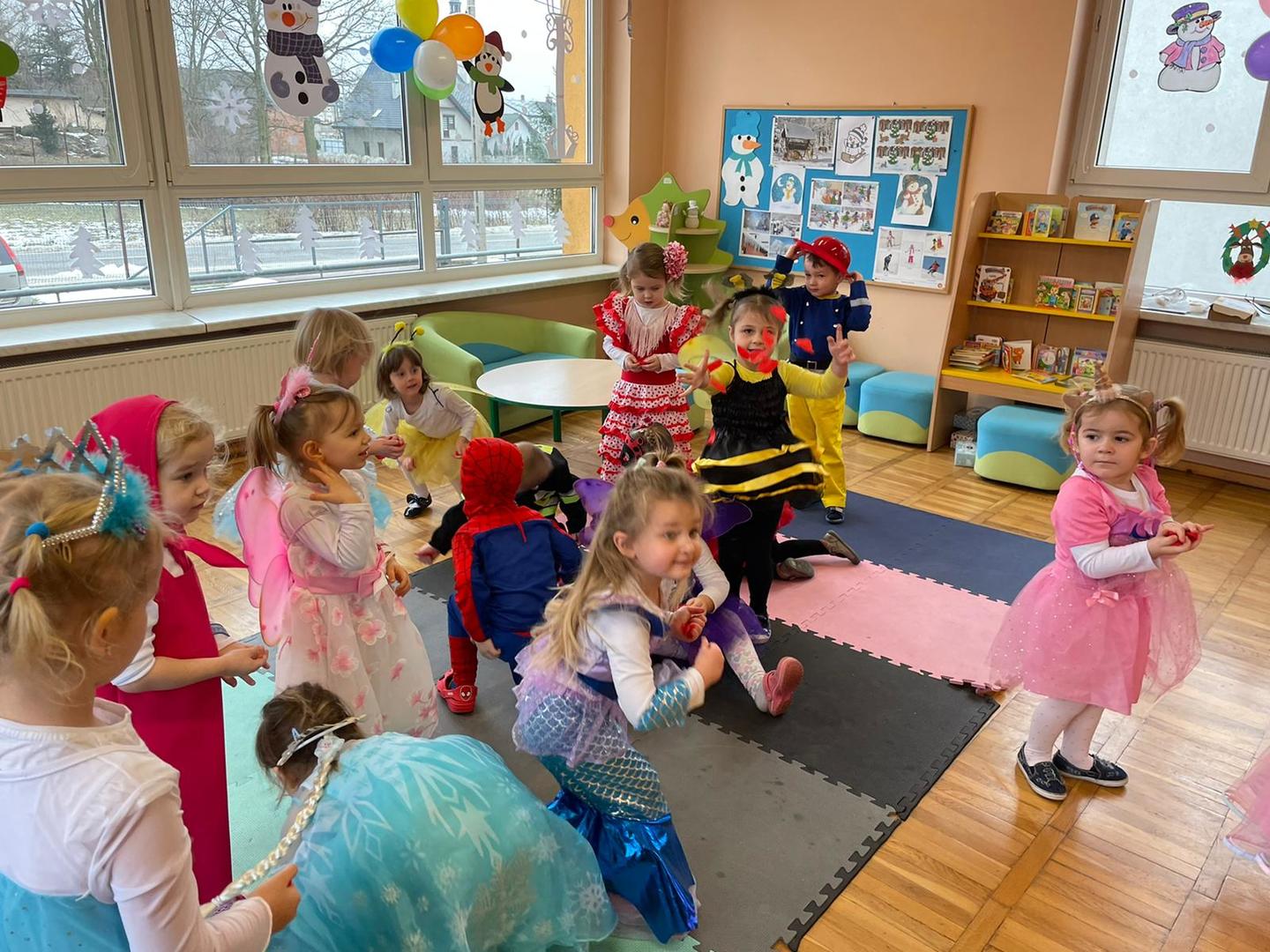 Karnawał to miła tradycja, przepełniona muzyką i zabawą, gdzie ważnym elementem tego okresu są bale. Bal karnawałowy dla przedszkolaków to niezwykły, długo wyczekiwany dzień. Jest atrakcją bardzo lubianą przez dzieci, dostarczającą im wielu przeżyć i radości. Tak też było w piątek,5 lutego, kiedy w naszym przedszkolu odbył się bal. Dzieci przyszły przebrane w przepiękne stroje, były księżniczki, policjanci, jednorożce, piłkarze, spirder -man, oraz nie zabrakło różnych zwierzatek jak sowa czy też pajak i iwiele wiele innych postaci. Na sali, podczas pląsów, było bardzo wesoło oraz kolorowo. Uśmiech nie znikał z dziecięcych twarzy, mimo chwilowego zmęczenia. Nie zabrakło również konkursów, w których przedszkolaki chętnie uczestniczyły, dopingując się nawzajem.