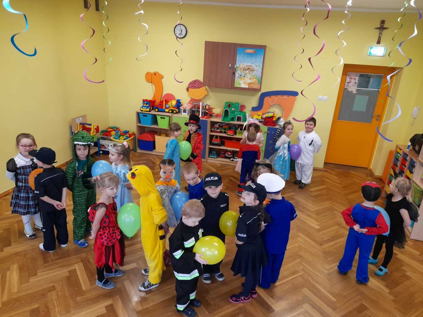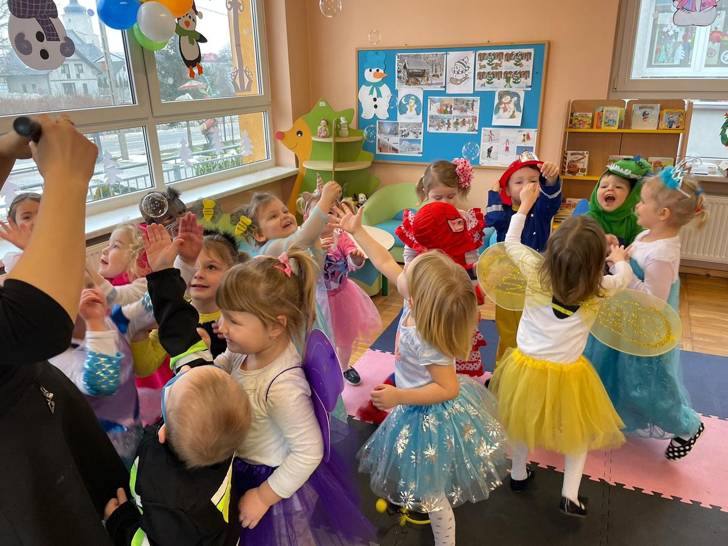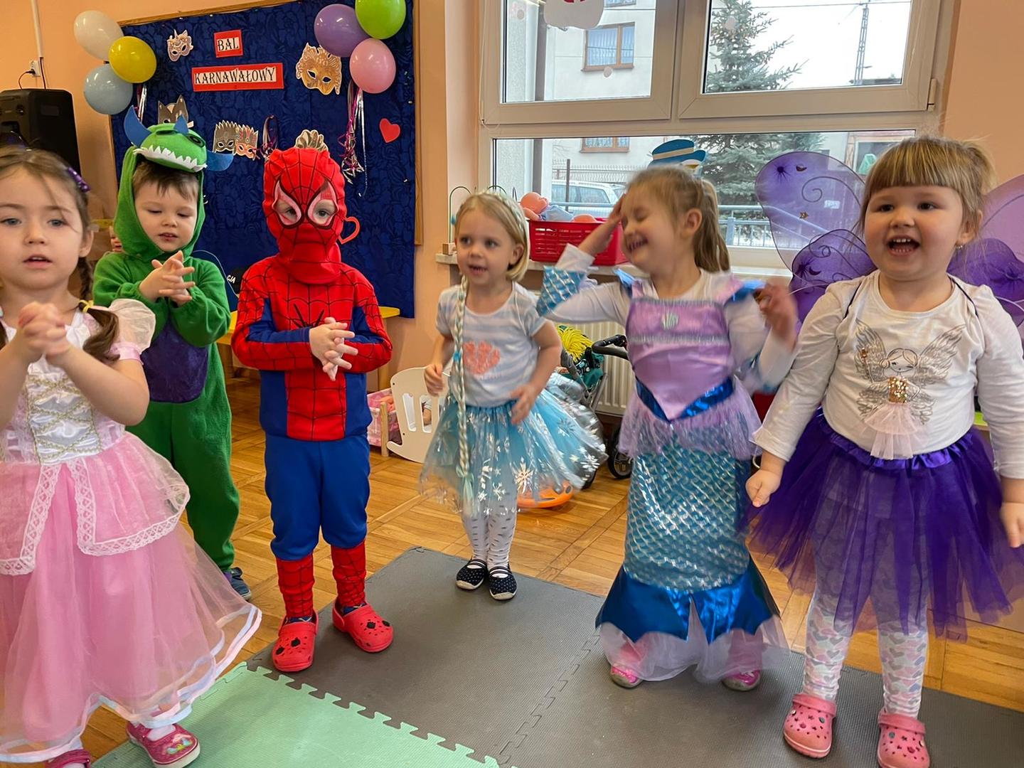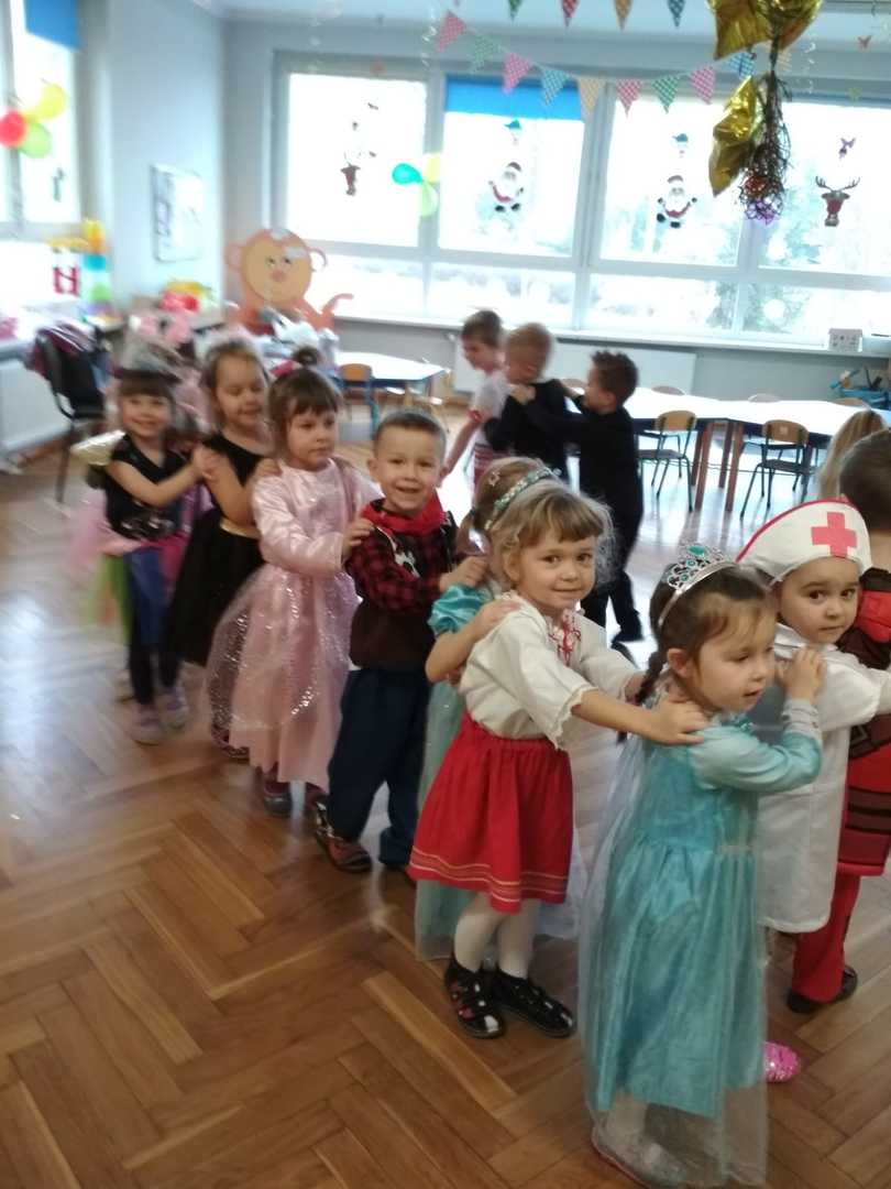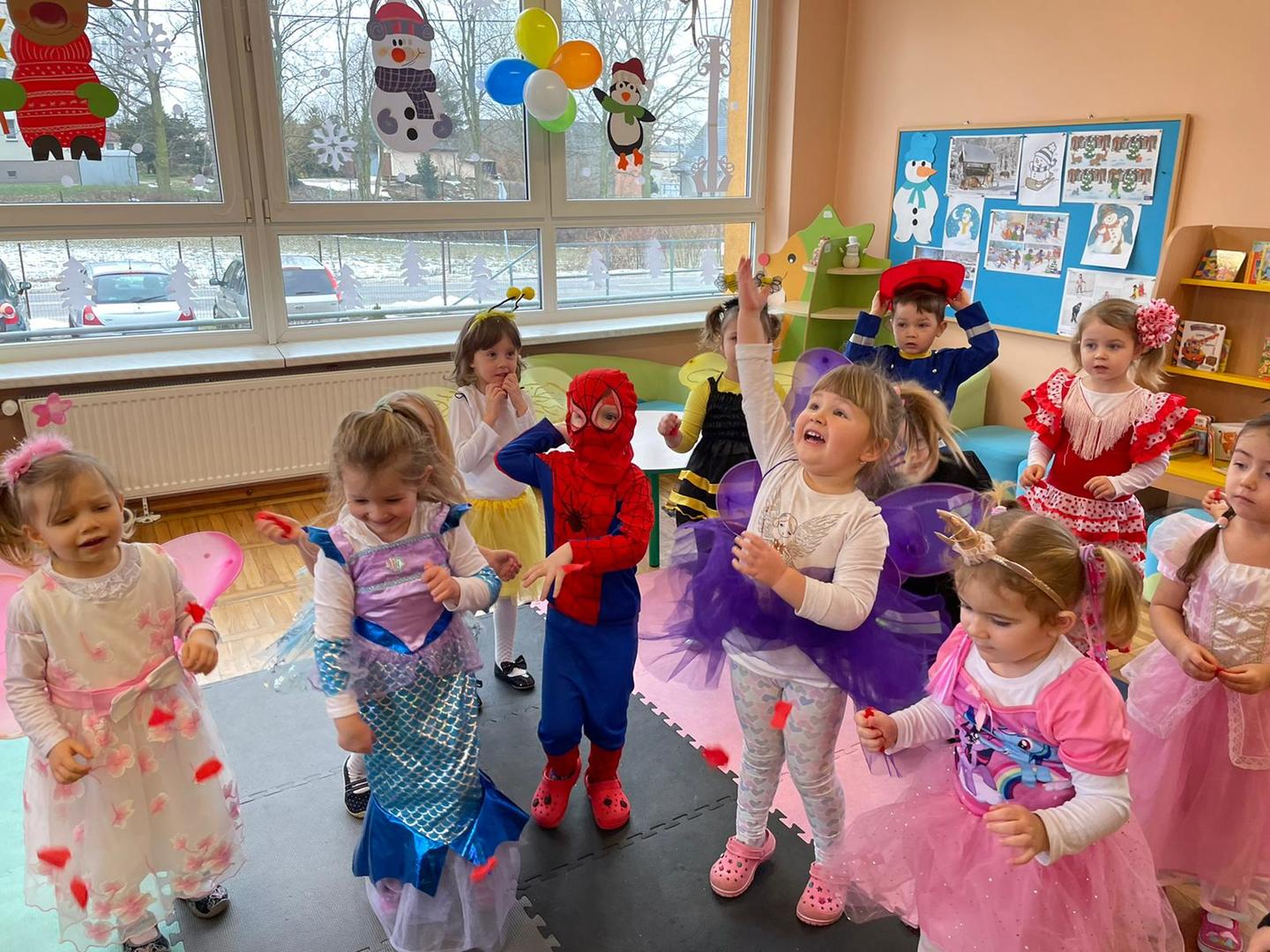 Karnawał to miła tradycja, przepełniona muzyką i zabawą, gdzie ważnym elementem tego okresu są bale. Bal karnawałowy dla przedszkolaków to niezwykły, długo wyczekiwany dzień. Jest atrakcją bardzo lubianą przez dzieci, dostarczającą im wielu przeżyć i radości. Tak też było w piątek,5 lutego, kiedy w naszym przedszkolu odbył się bal. Dzieci przyszły przebrane w przepiękne stroje, były księżniczki, policjanci, jednorożce, piłkarze, spirder -man, oraz nie zabrakło różnych zwierzatek jak sowa czy też pajak i iwiele wiele innych postaci. Na sali, podczas pląsów, było bardzo wesoło oraz kolorowo. Uśmiech nie znikał z dziecięcych twarzy, mimo chwilowego zmęczenia. Nie zabrakło również konkursów, w których przedszkolaki chętnie uczestniczyły, dopingując się nawzajem.