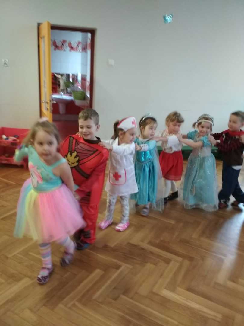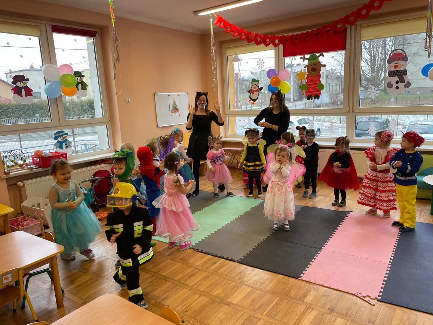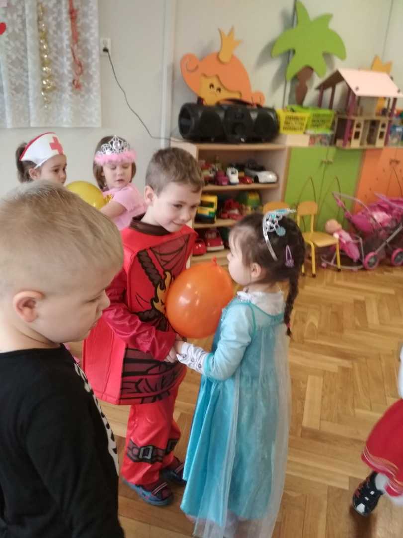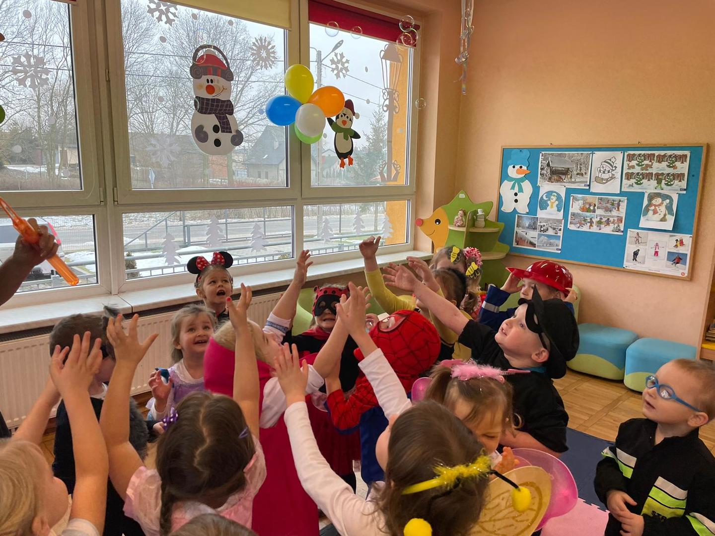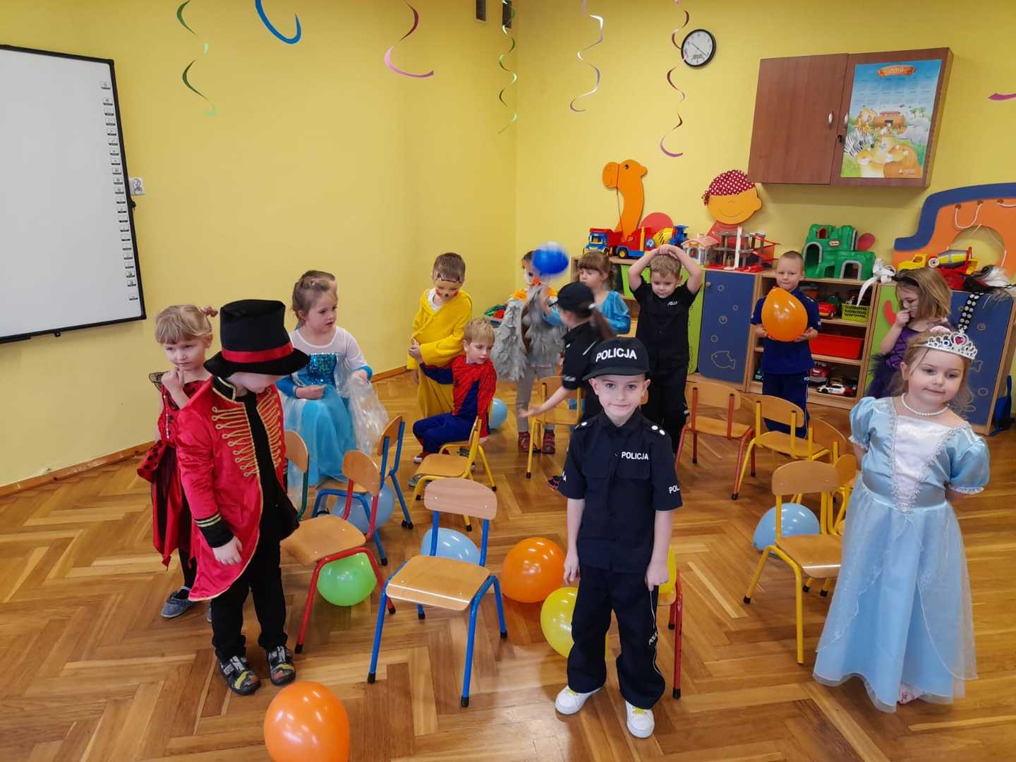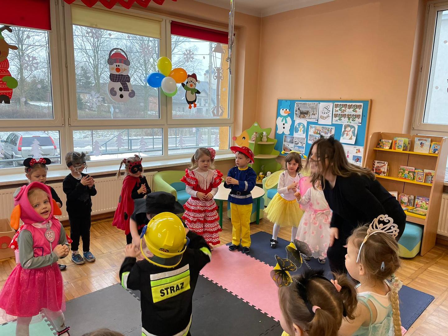 Karnawał to miła tradycja, przepełniona muzyką i zabawą, gdzie ważnym elementem tego okresu są bale. Bal karnawałowy dla przedszkolaków to niezwykły, długo wyczekiwany dzień. Jest atrakcją bardzo lubianą przez dzieci, dostarczającą im wielu przeżyć i radości. Tak też było w piątek,5 lutego, kiedy w naszym przedszkolu odbył się bal. Dzieci przyszły przebrane w przepiękne stroje, były księżniczki, policjanci, jednorożce, piłkarze, spirder -man, oraz nie zabrakło różnych zwierzatek jak sowa czy też pajak i iwiele wiele innych postaci. Na sali, podczas pląsów, było bardzo wesoło oraz kolorowo. Uśmiech nie znikał z dziecięcych twarzy, mimo chwilowego zmęczenia. Nie zabrakło również konkursów, w których przedszkolaki chętnie uczestniczyły, dopingując się nawzajem.