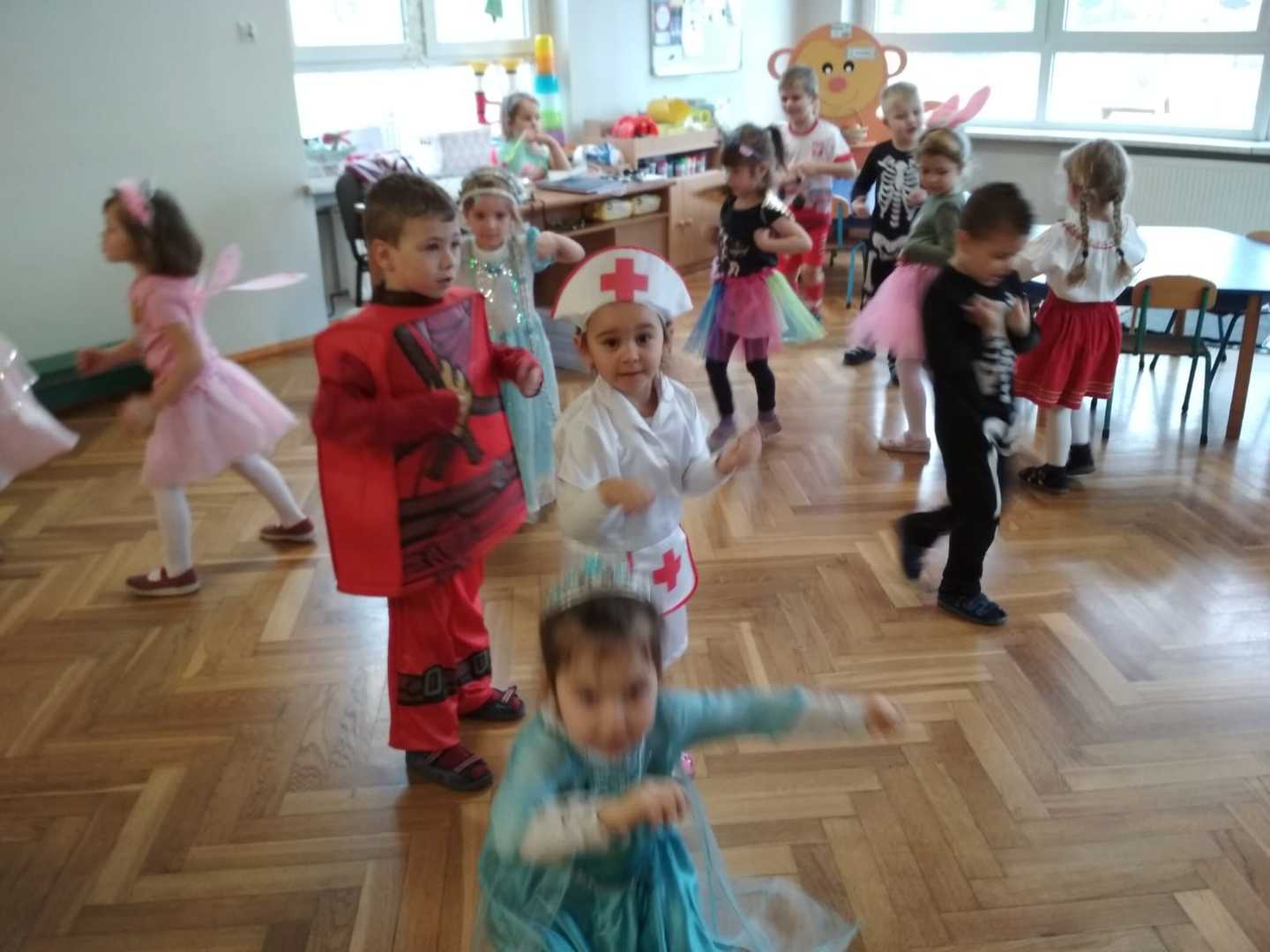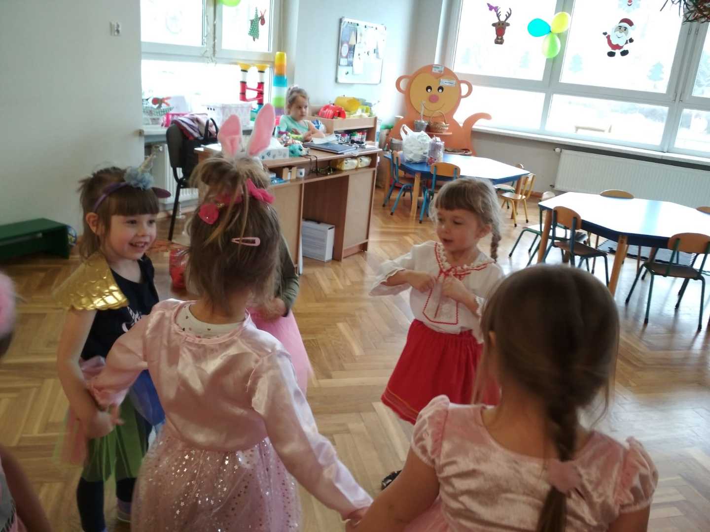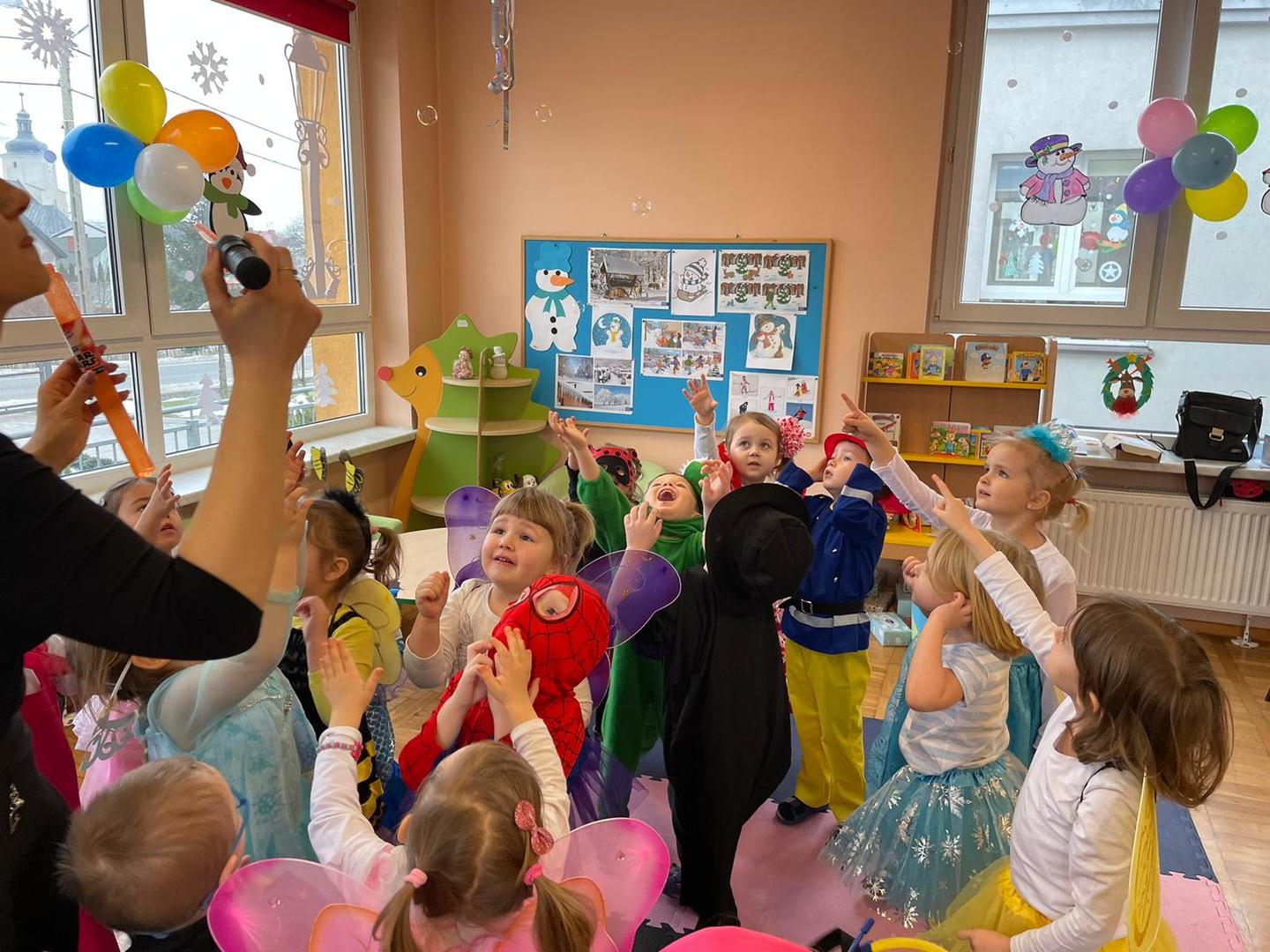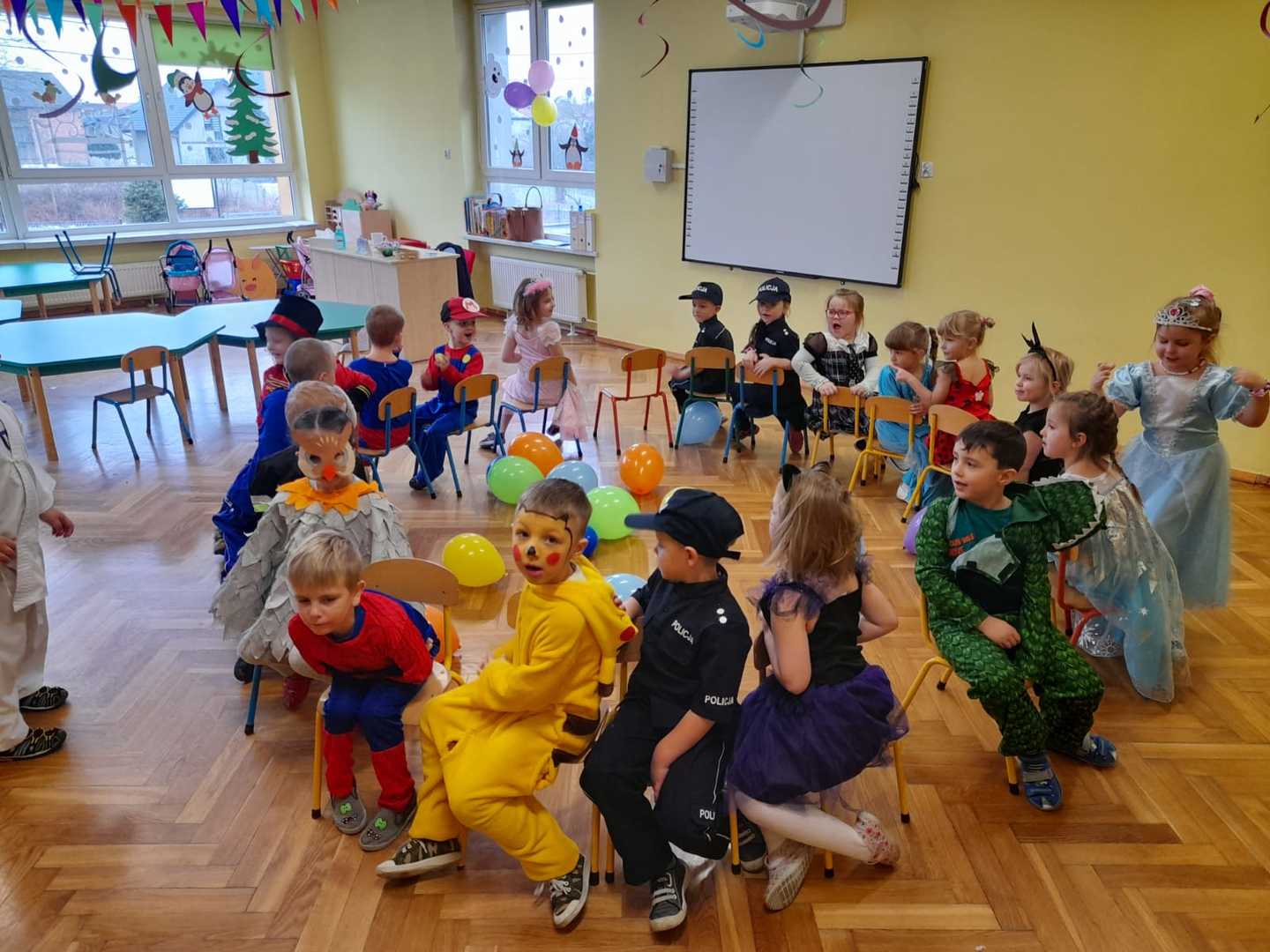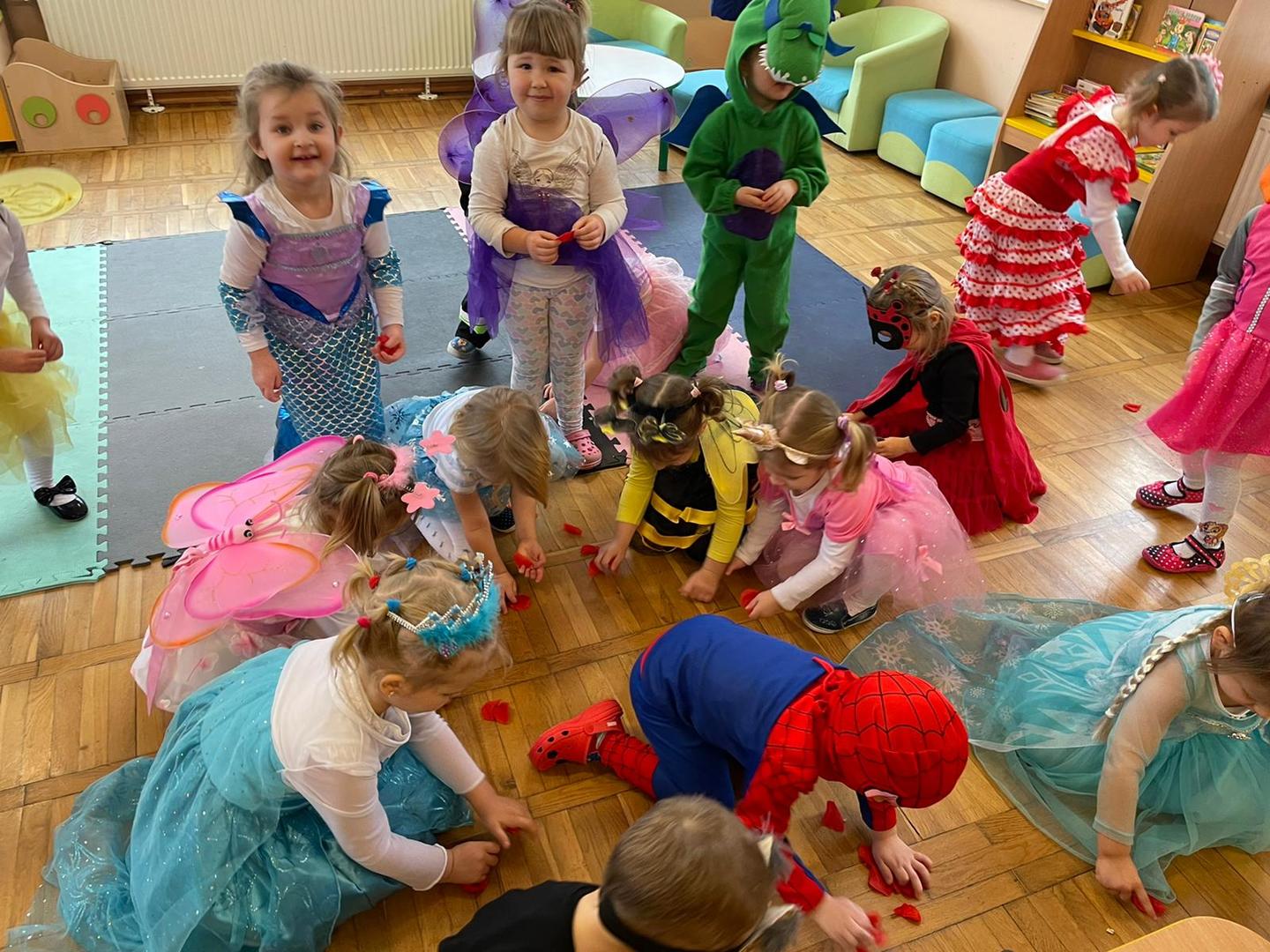 Karnawał to miła tradycja, przepełniona muzyką i zabawą, gdzie ważnym elementem tego okresu są bale. Bal karnawałowy dla przedszkolaków to niezwykły, długo wyczekiwany dzień. Jest atrakcją bardzo lubianą przez dzieci, dostarczającą im wielu przeżyć i radości. Tak też było w piątek,5 lutego, kiedy w naszym przedszkolu odbył się bal. Dzieci przyszły przebrane w przepiękne stroje, były księżniczki, policjanci, jednorożce, piłkarze, spirder -man, oraz nie zabrakło różnych zwierzatek jak sowa czy też pajak i iwiele wiele innych postaci. Na sali, podczas pląsów, było bardzo wesoło oraz kolorowo. Uśmiech nie znikał z dziecięcych twarzy, mimo chwilowego zmęczenia. Nie zabrakło również konkursów, w których przedszkolaki chętnie uczestniczyły, dopingując się nawzajem.