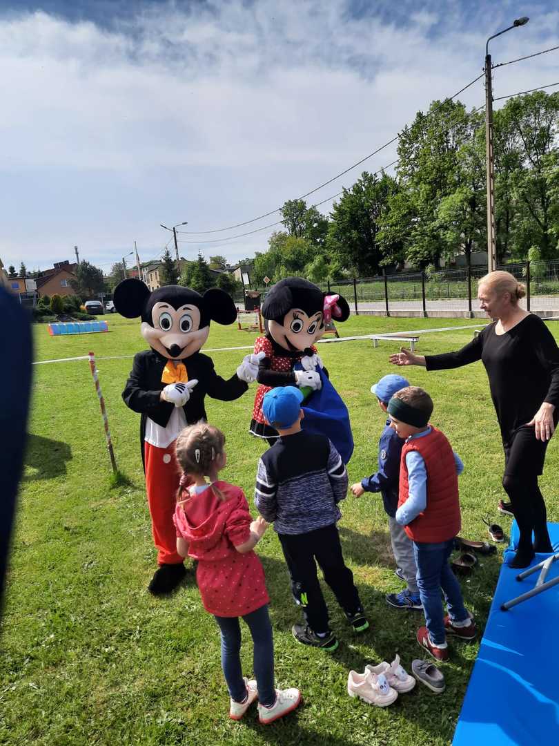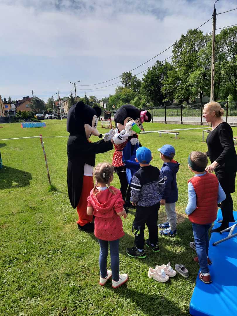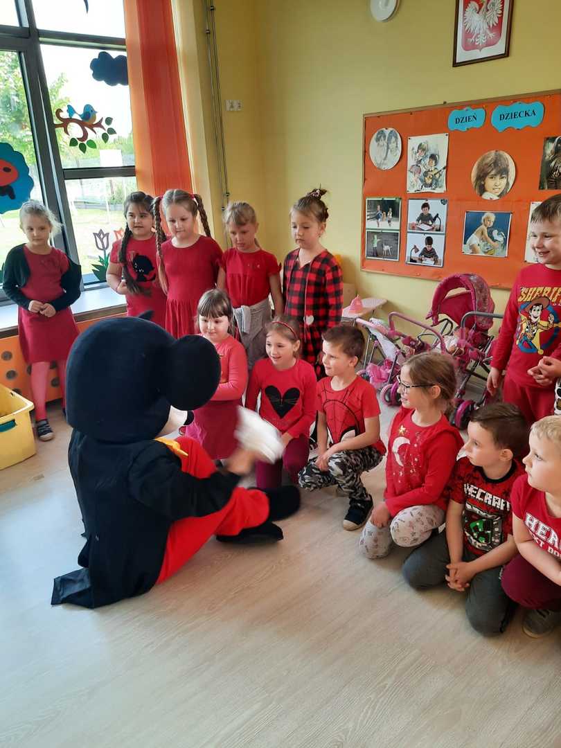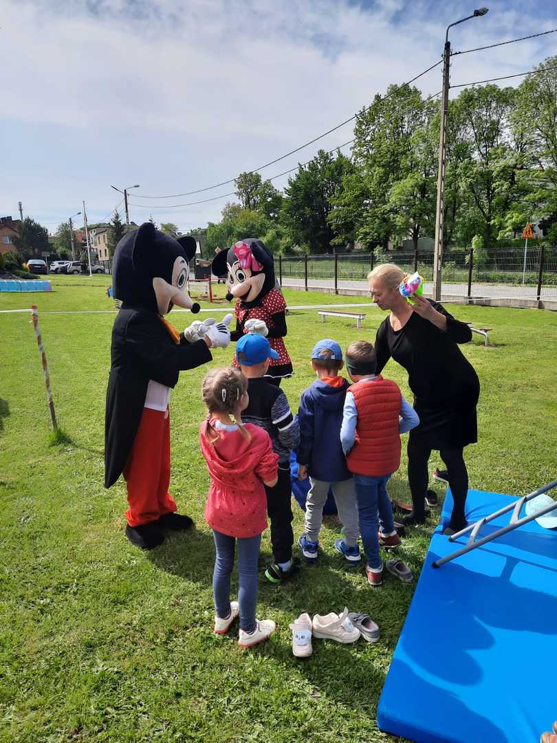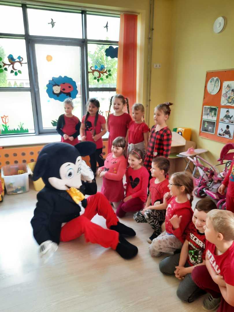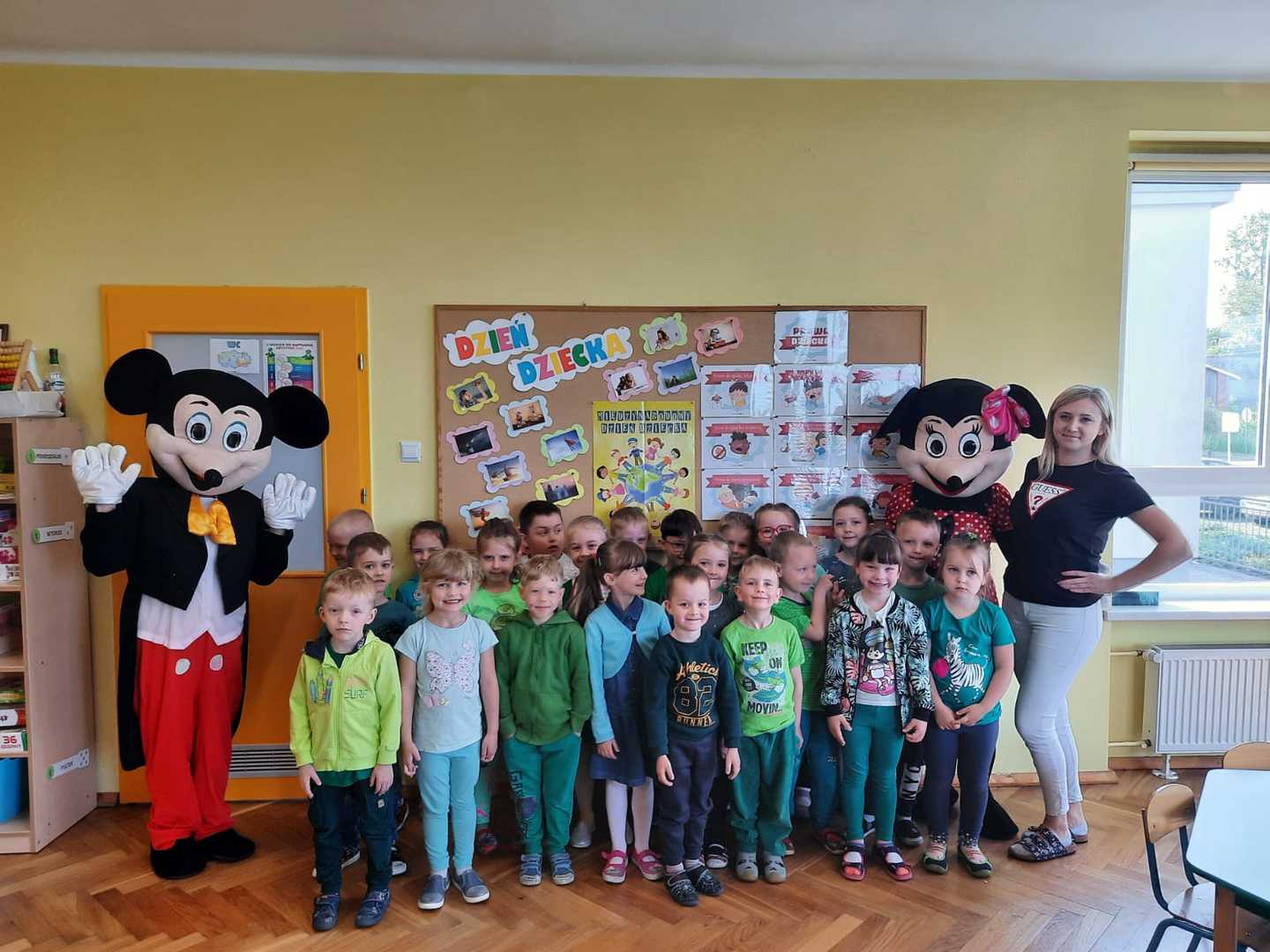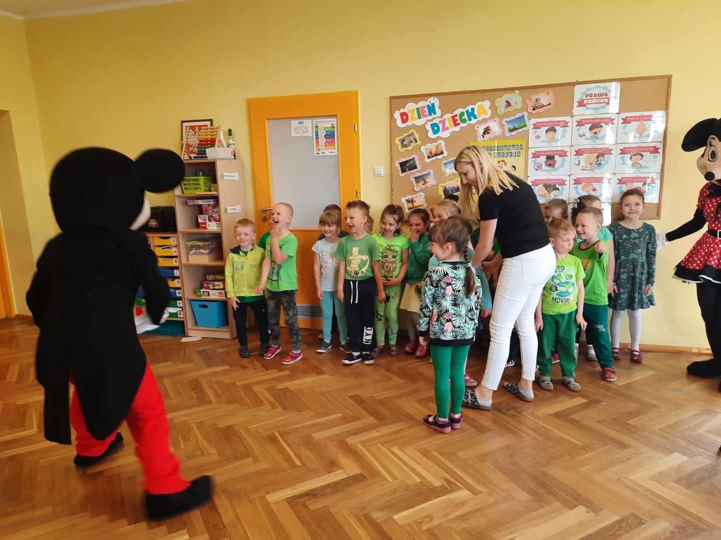 Gościliśmy myszkę Miki i Mini, które umiliły nam ten dzisiejszy dzień, na koniec każde dziecko otrzymało prezent w postaci zestawu do piaskownicy od burmistrza Woźnik Michała Aloszko, któremu dziękujemy