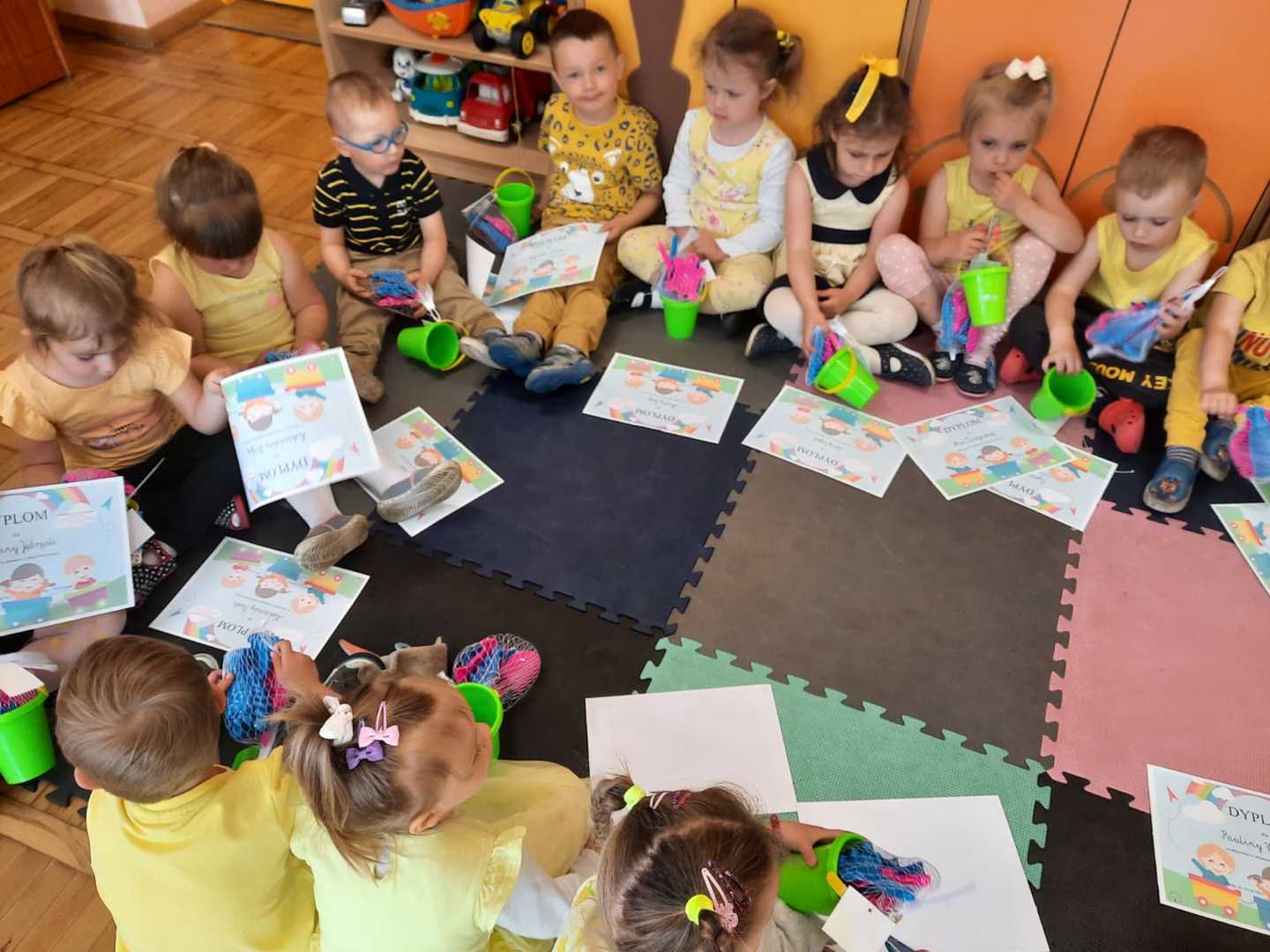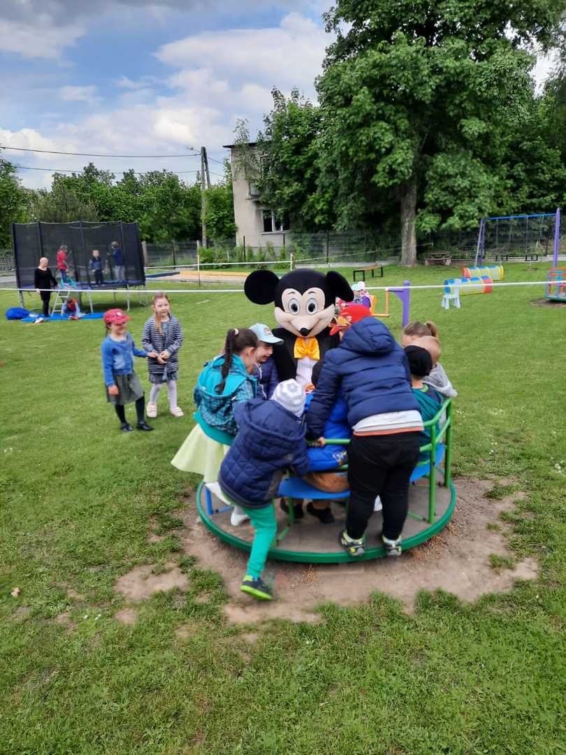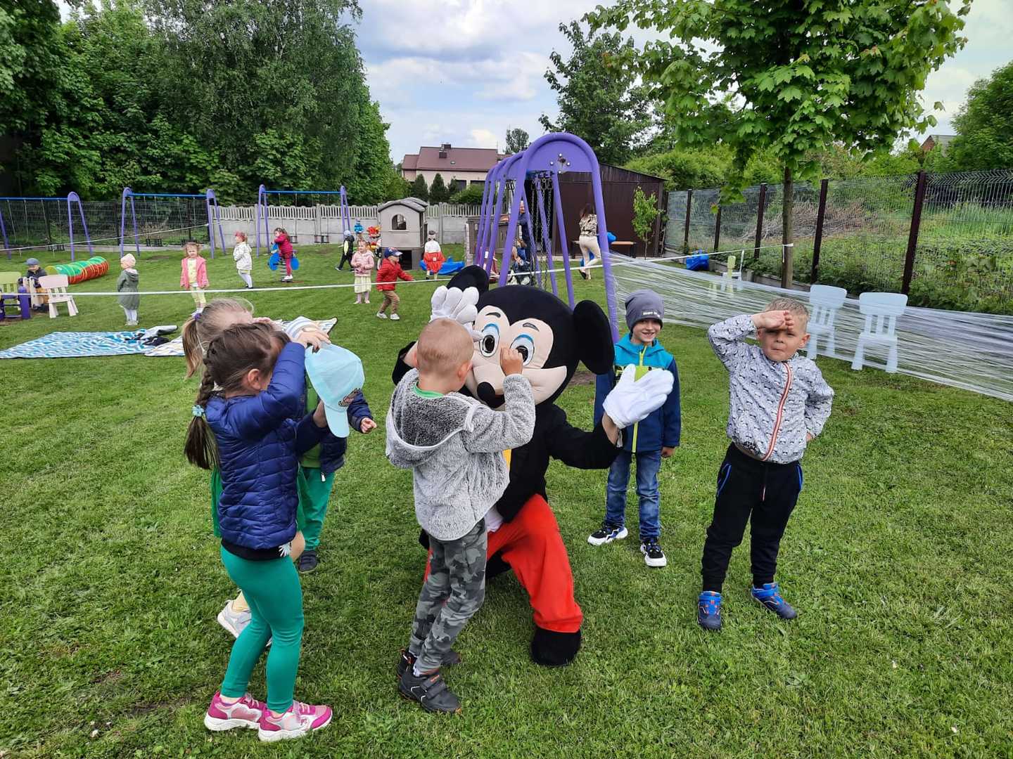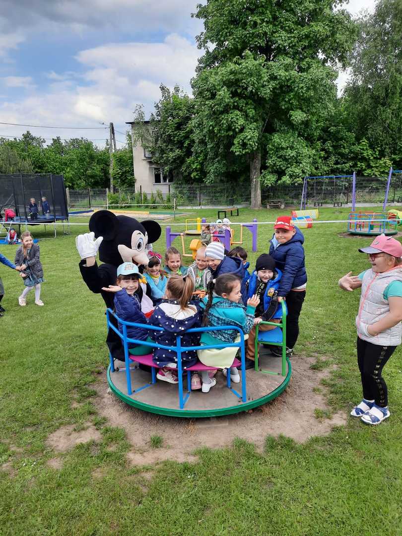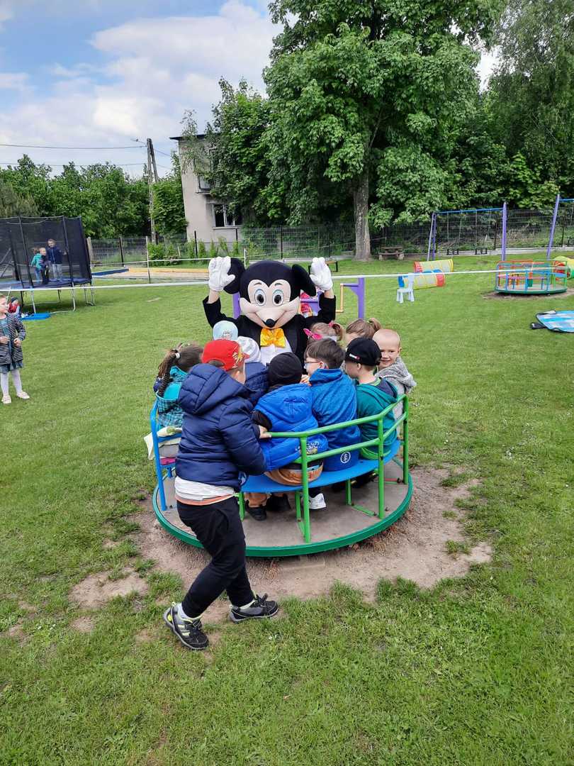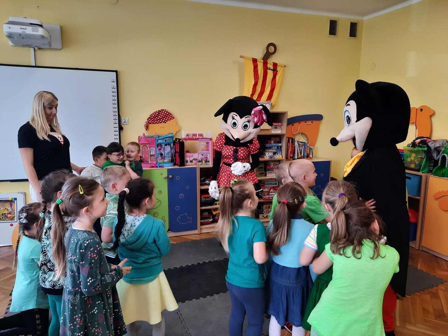 Gościliśmy myszkę Miki i Mini, które umiliły nam ten dzisiejszy dzień, na koniec każde dziecko otrzymało prezent w postaci zestawu do piaskownicy od burmistrza Woźnik Michała Aloszko, któremu dziękujemy