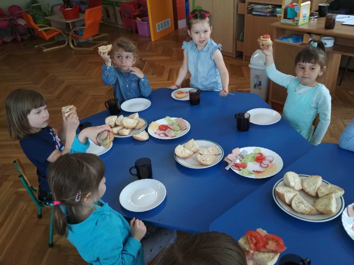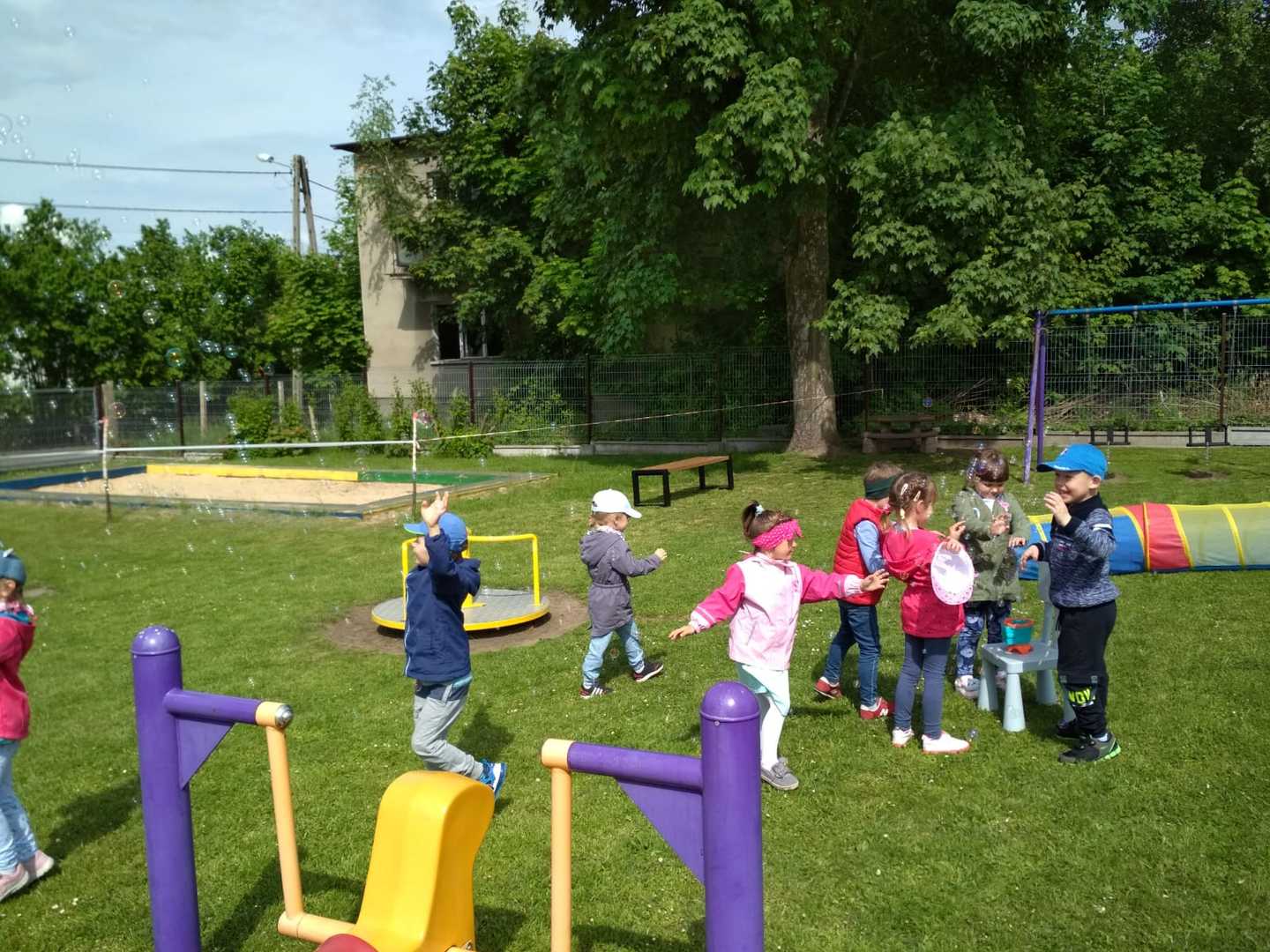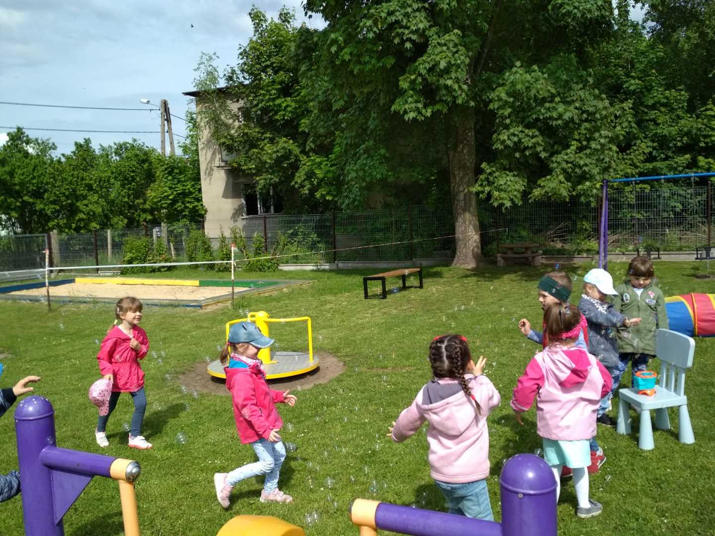 Działo się naprawdę wiele, były samodzielnie przygotowywane kanapki, zabawy przy utworach dla dzieci, puszczanie baniek, malowanie kredą, farbami na folii. popcorn, pizza.