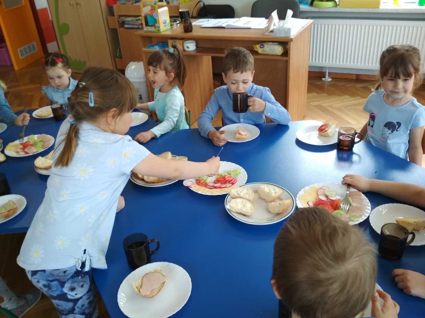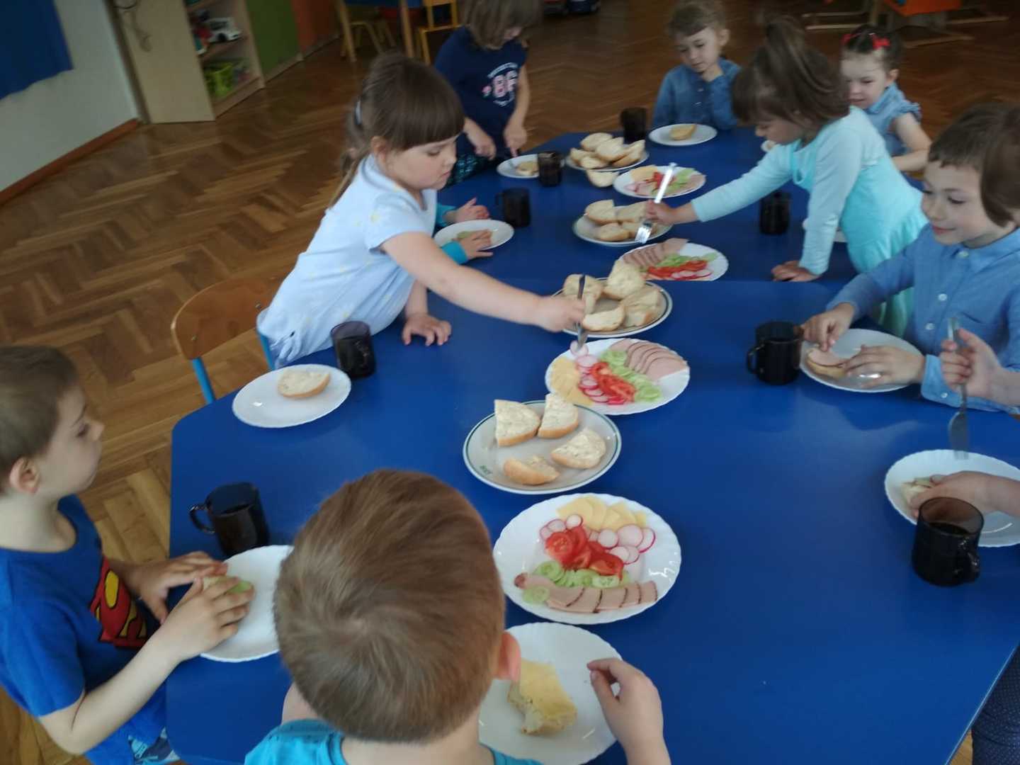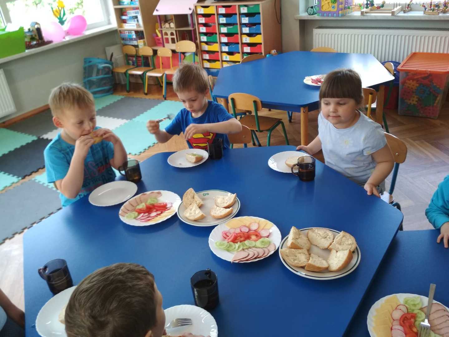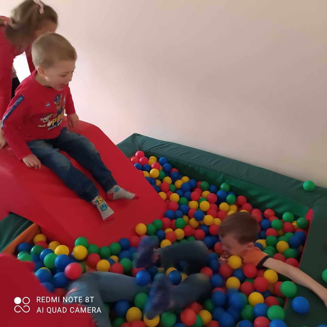 Działo się naprawdę wiele, były samodzielnie przygotowywane kanapki, zabawy przy utworach dla dzieci, puszczanie baniek, malowanie kredą, farbami na folii. popcorn, pizza.
