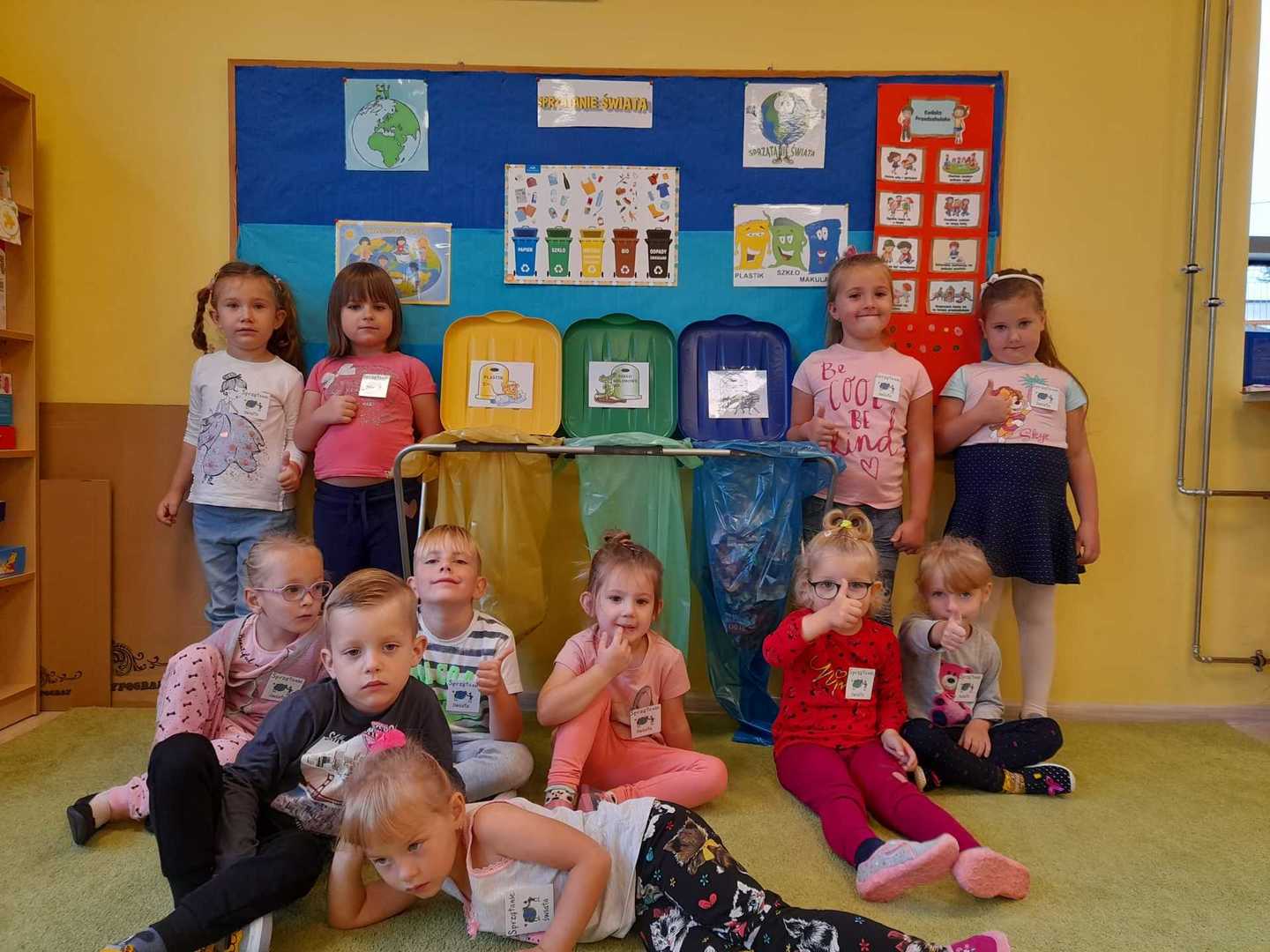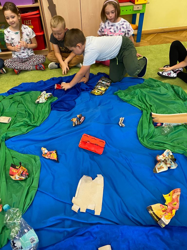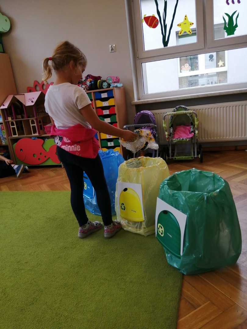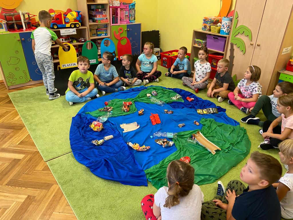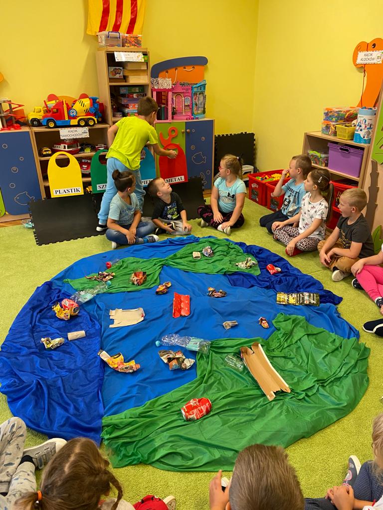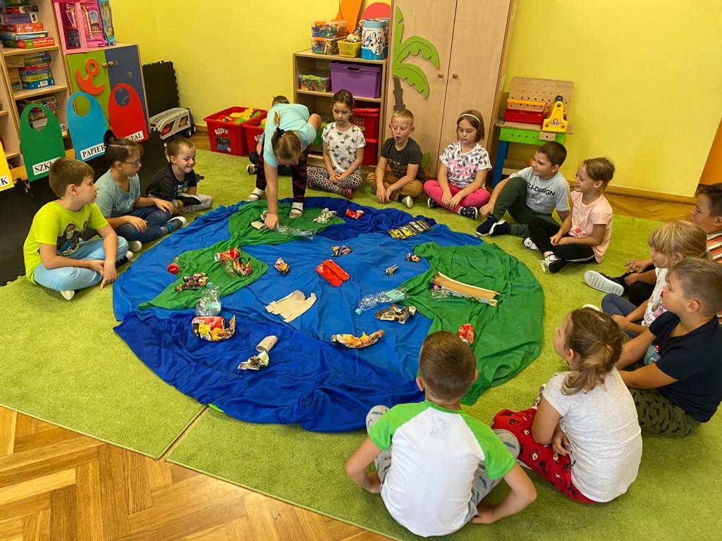 Akcja Sprzątanie świata – Polska jest częścią międzynarodowego ruchu „Clean Up The World”, wywodzącego się z Australii. Uczestniczy w nim blisko 40 milionów wolontariuszy na całym świecie. W Polsce obchodzony jest po raz 28. Nasze Przedszkole już po raz kolejny włączyło się do akcji, która w tym roku została zorganizowana pod hasłem " Myślę więc nie śmiecę". Kierując się tą myślą w naszym przedszkolu zostały przeprowadzone zajęcia dzięki którym dzieci dowiedziały się, że nie warto śmiecić. Każda z pań dostosowała poziom zajęć do poszczególnych grup wiekowych. Starszaki oprócz zajęć teoretycznych wyszły na zewnątrz i zabierając worki na śmieci posprzątały okolice przedszkola.