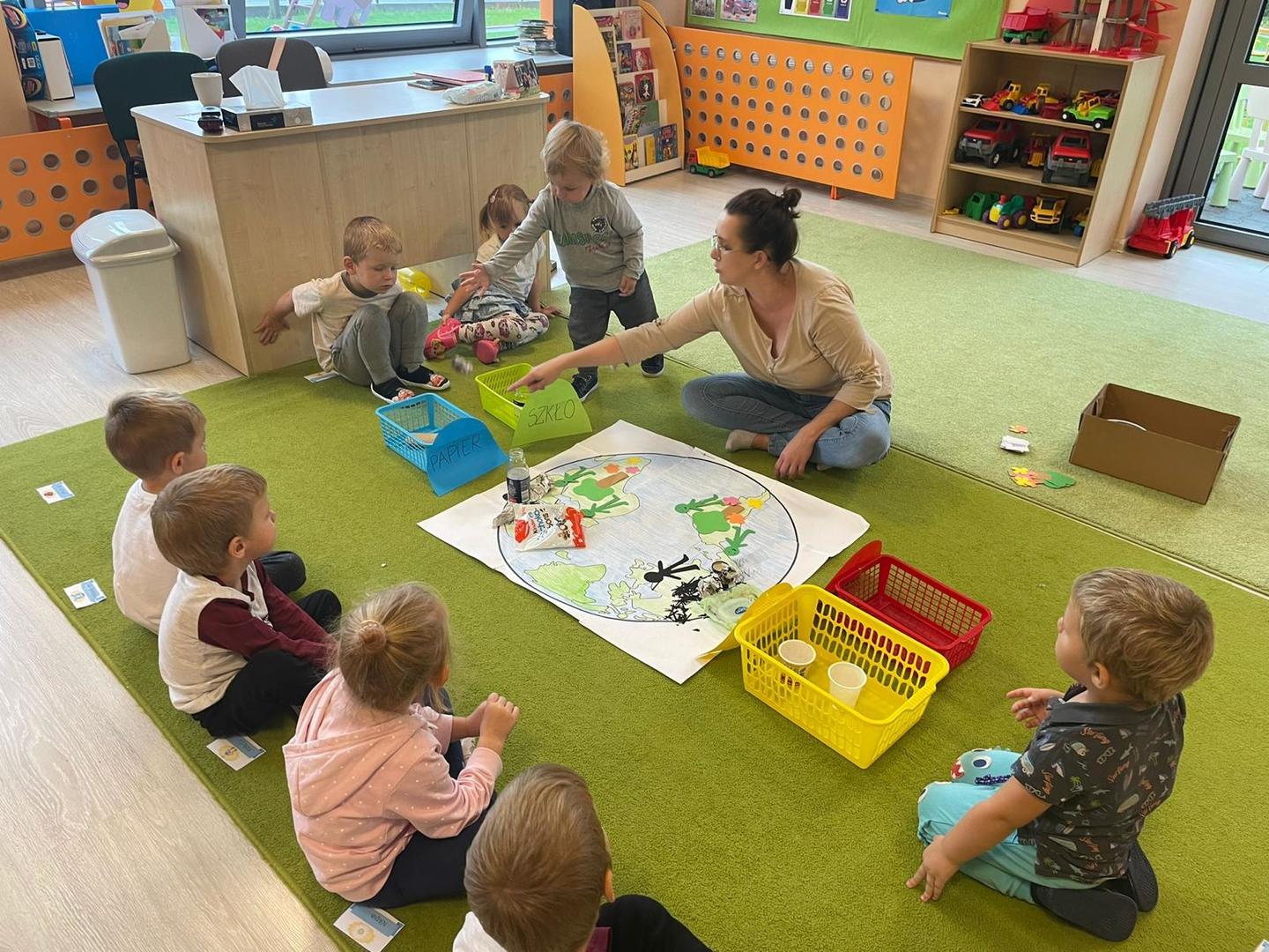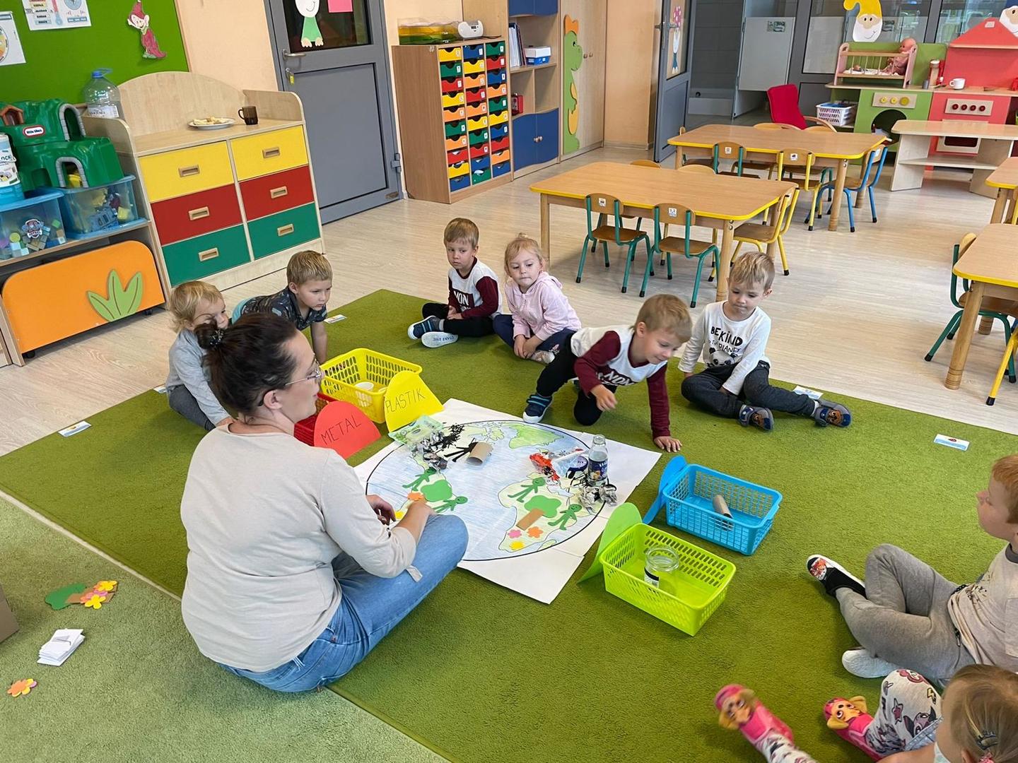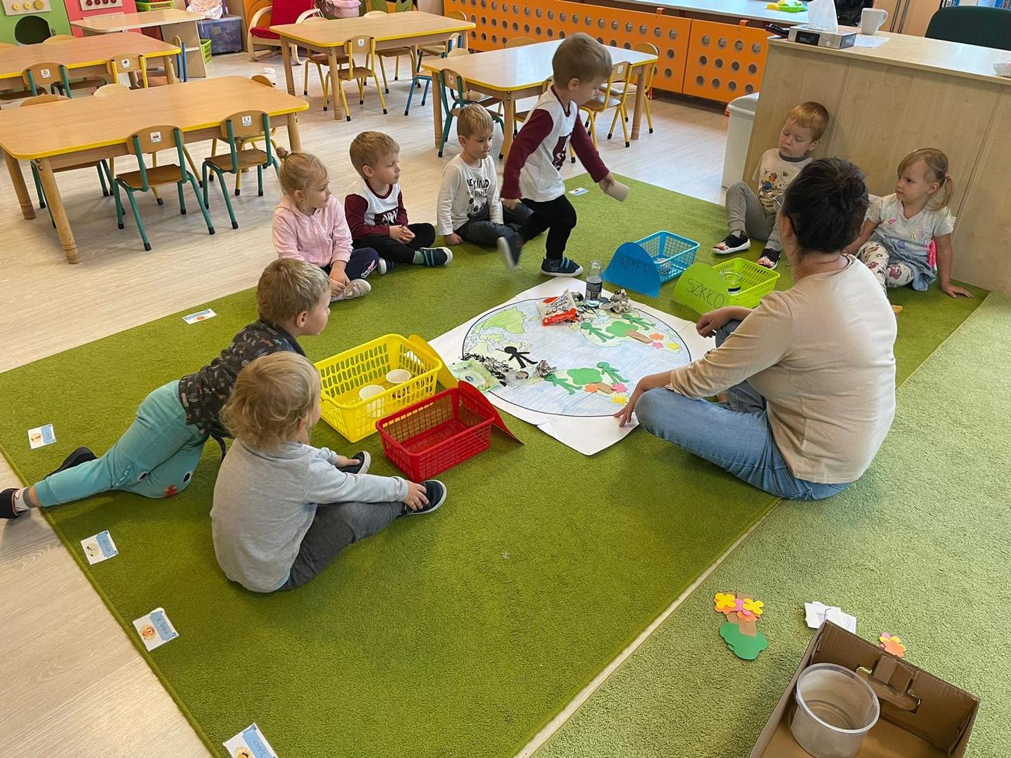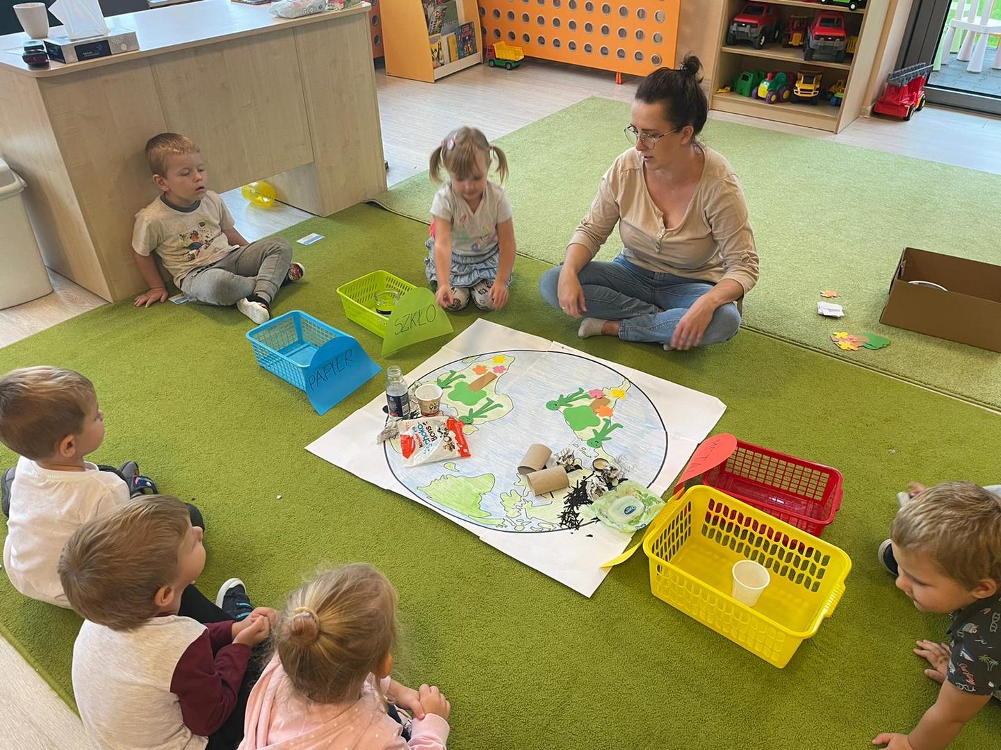 Akcja Sprzątanie świata – Polska jest częścią międzynarodowego ruchu „Clean Up The World”, wywodzącego się z Australii. Uczestniczy w nim blisko 40 milionów wolontariuszy na całym świecie. W Polsce obchodzony jest po raz 28. Nasze Przedszkole już po raz kolejny włączyło się do akcji, która w tym roku została zorganizowana pod hasłem " Myślę więc nie śmiecę". Kierując się tą myślą w naszym przedszkolu zostały przeprowadzone zajęcia dzięki którym dzieci dowiedziały się, że nie warto śmiecić. Każda z pań dostosowała poziom zajęć do poszczególnych grup wiekowych. Starszaki oprócz zajęć teoretycznych wyszły na zewnątrz i zabierając worki na śmieci posprzątały okolice przedszkola.