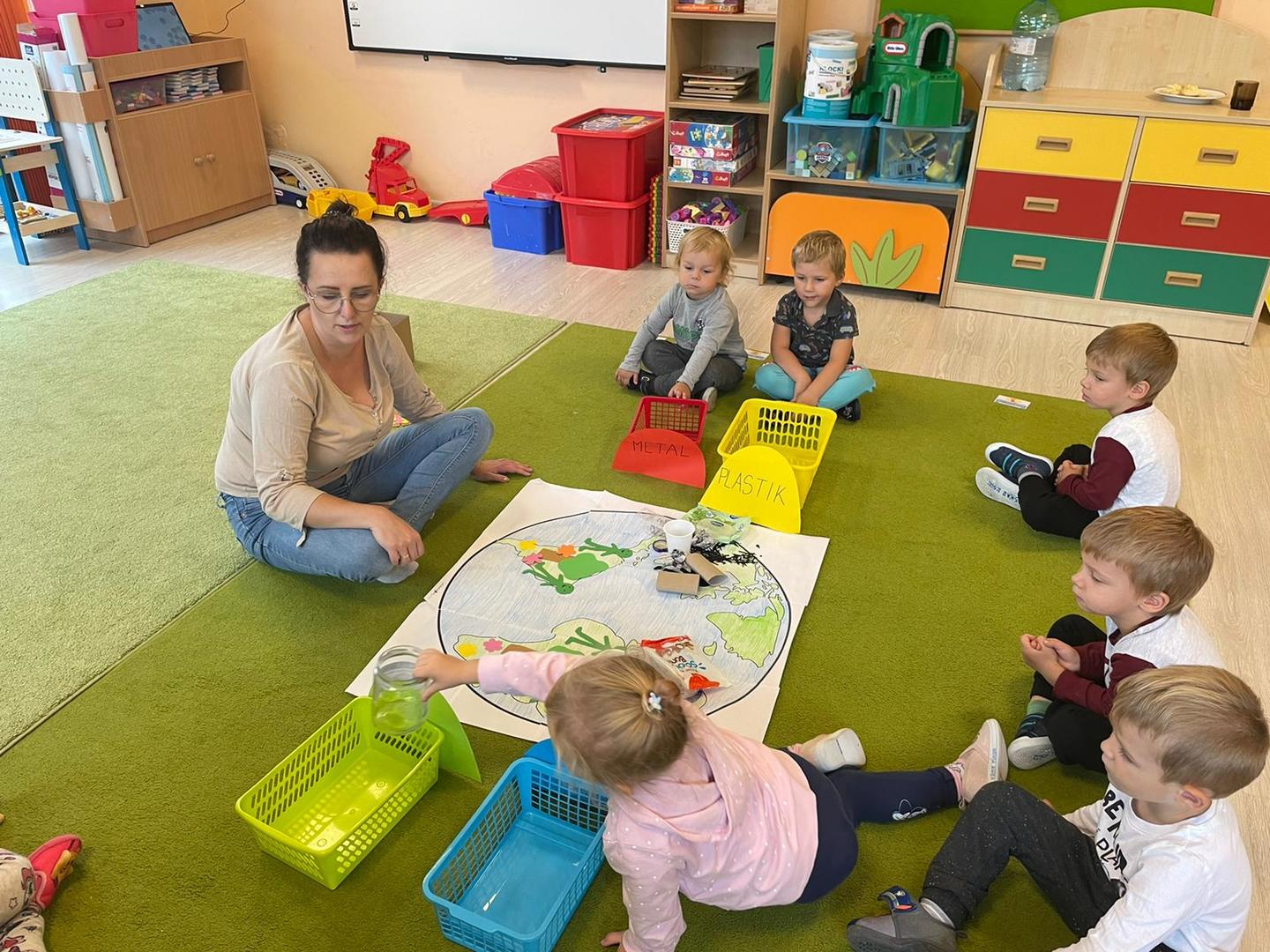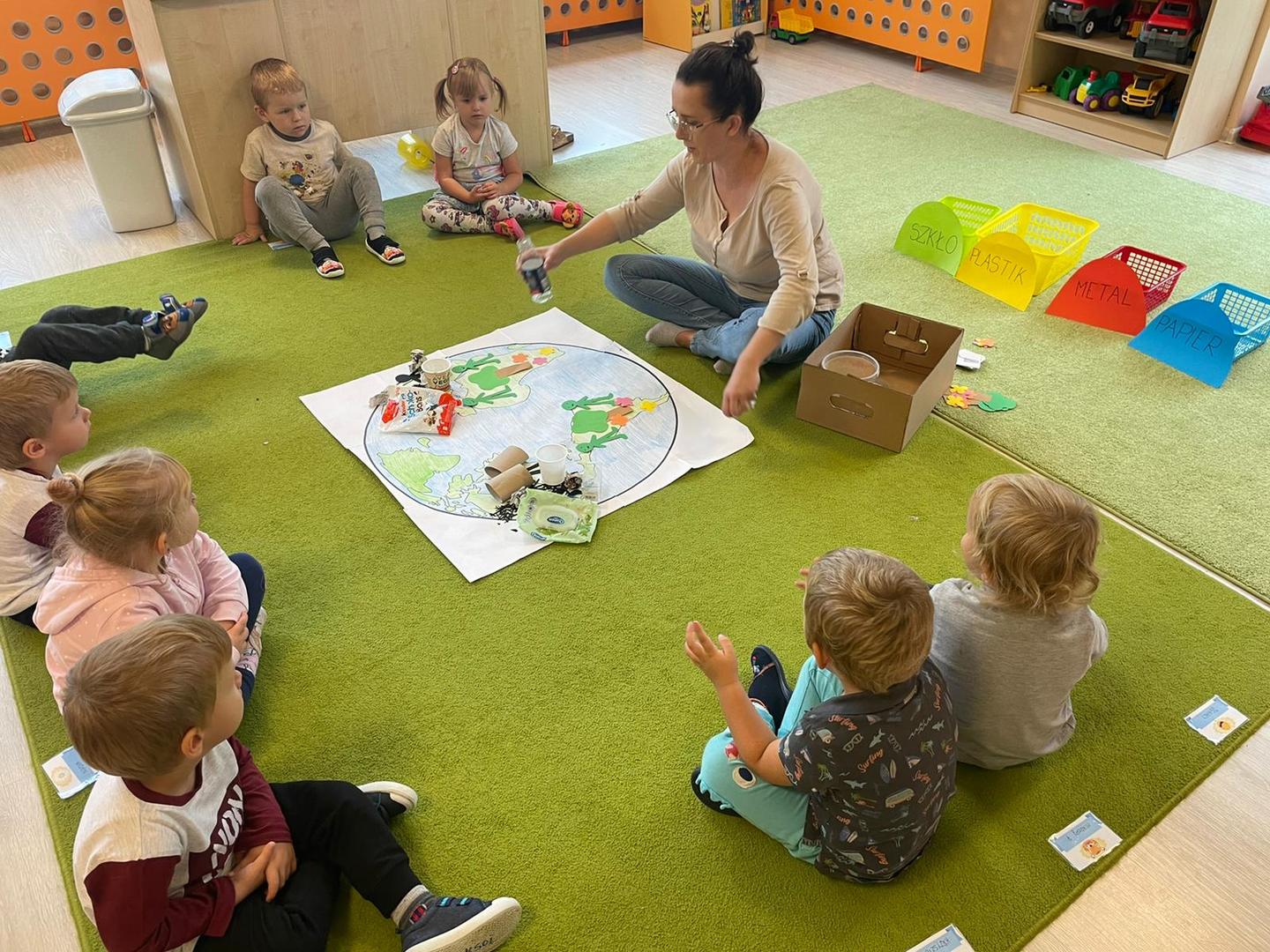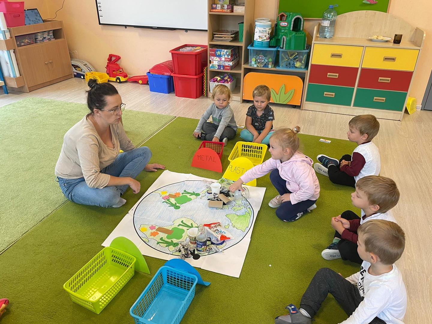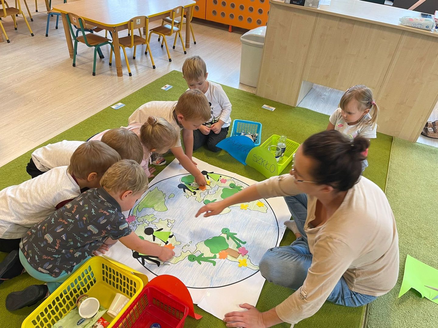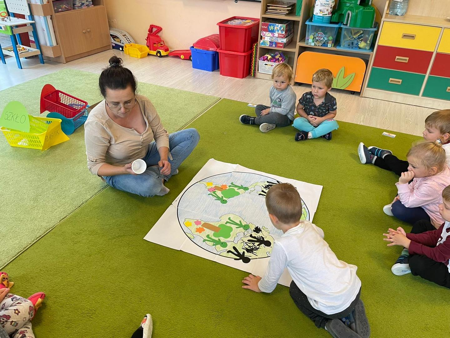 Akcja Sprzątanie świata – Polska jest częścią międzynarodowego ruchu „Clean Up The World”, wywodzącego się z Australii. Uczestniczy w nim blisko 40 milionów wolontariuszy na całym świecie. W Polsce obchodzony jest po raz 28. Nasze Przedszkole już po raz kolejny włączyło się do akcji, która w tym roku została zorganizowana pod hasłem " Myślę więc nie śmiecę". Kierując się tą myślą w naszym przedszkolu zostały przeprowadzone zajęcia dzięki którym dzieci dowiedziały się, że nie warto śmiecić. Każda z pań dostosowała poziom zajęć do poszczególnych grup wiekowych. Starszaki oprócz zajęć teoretycznych wyszły na zewnątrz i zabierając worki na śmieci posprzątały okolice przedszkola.