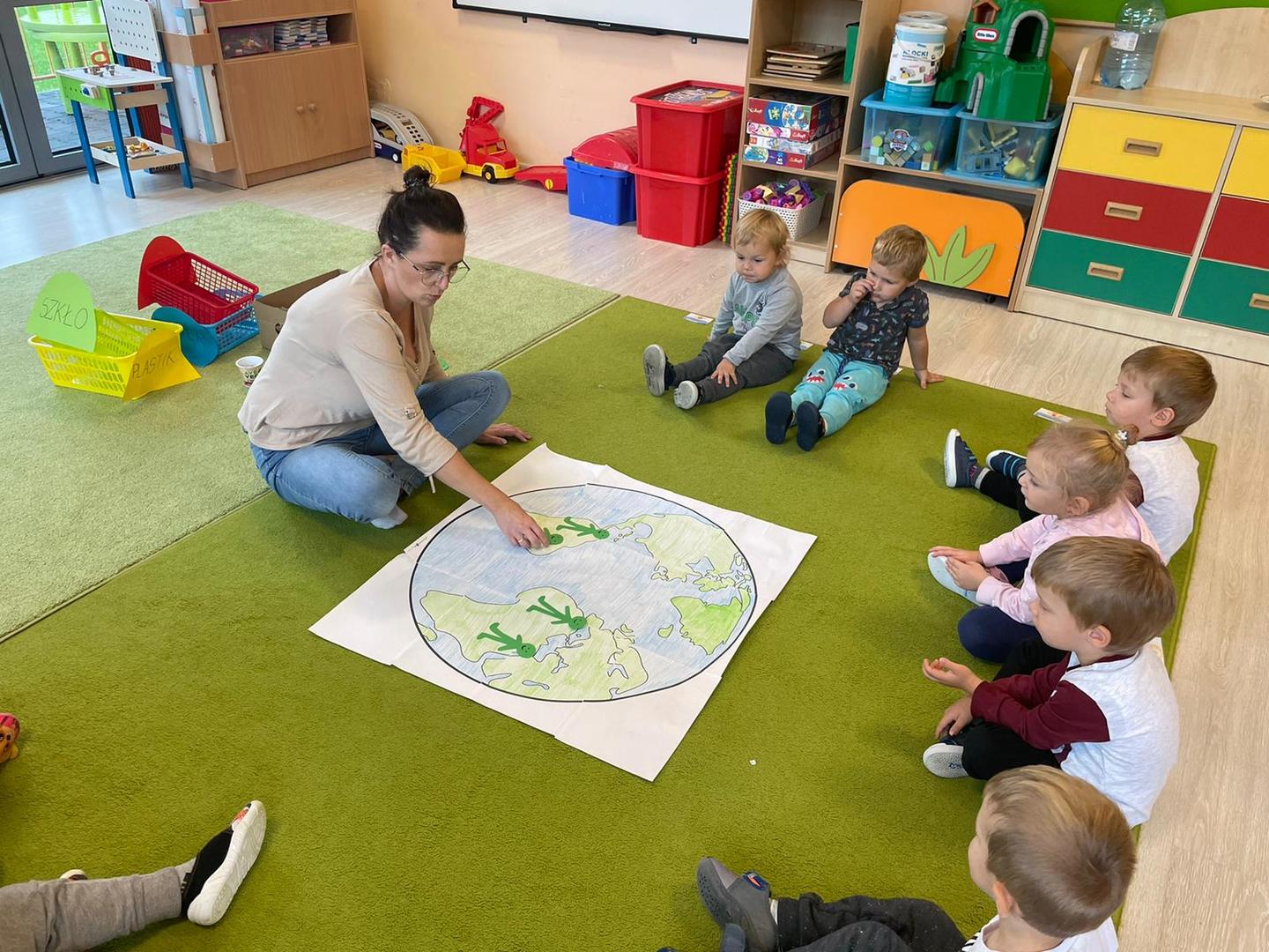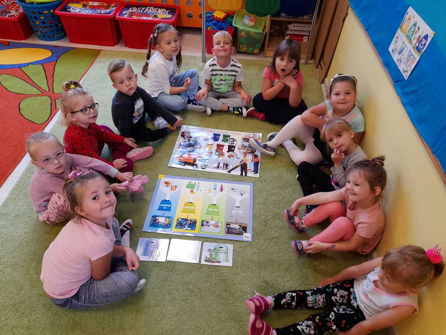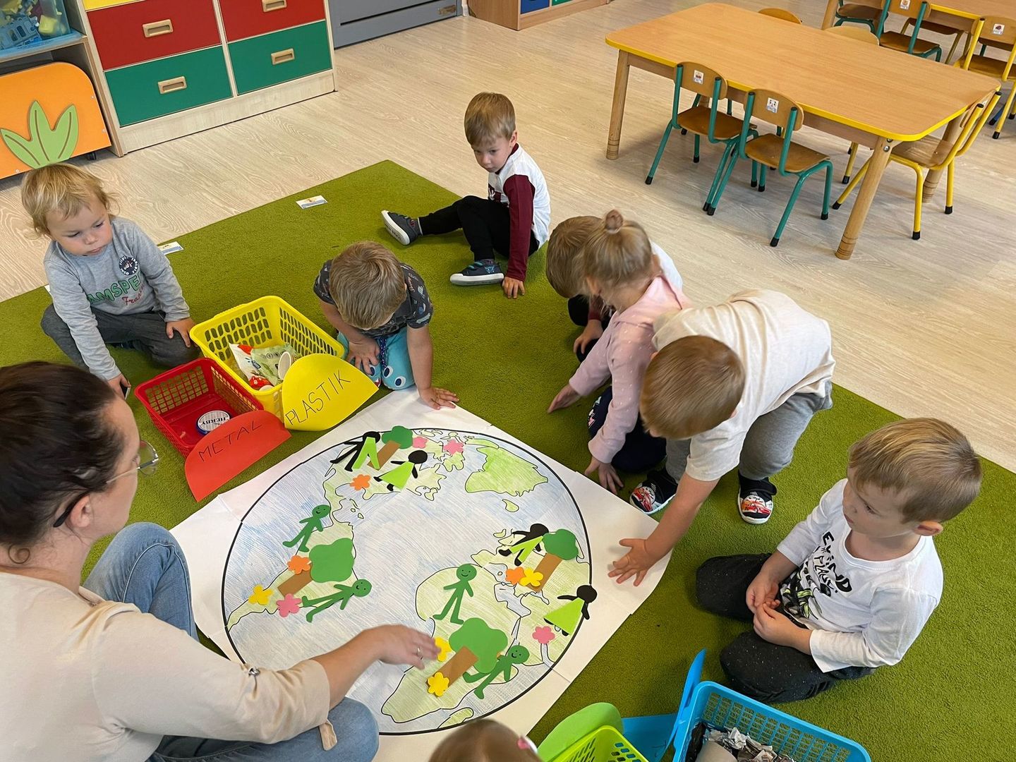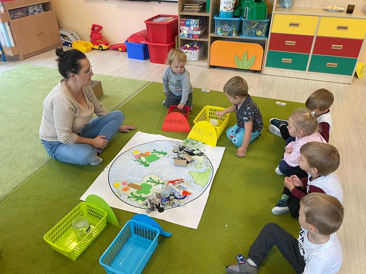 Akcja Sprzątanie świata – Polska jest częścią międzynarodowego ruchu „Clean Up The World”, wywodzącego się z Australii. Uczestniczy w nim blisko 40 milionów wolontariuszy na całym świecie. W Polsce obchodzony jest po raz 28. Nasze Przedszkole już po raz kolejny włączyło się do akcji, która w tym roku została zorganizowana pod hasłem " Myślę więc nie śmiecę". Kierując się tą myślą w naszym przedszkolu zostały przeprowadzone zajęcia dzięki którym dzieci dowiedziały się, że nie warto śmiecić. Każda z pań dostosowała poziom zajęć do poszczególnych grup wiekowych. Starszaki oprócz zajęć teoretycznych wyszły na zewnątrz i zabierając worki na śmieci posprzątały okolice przedszkola.
