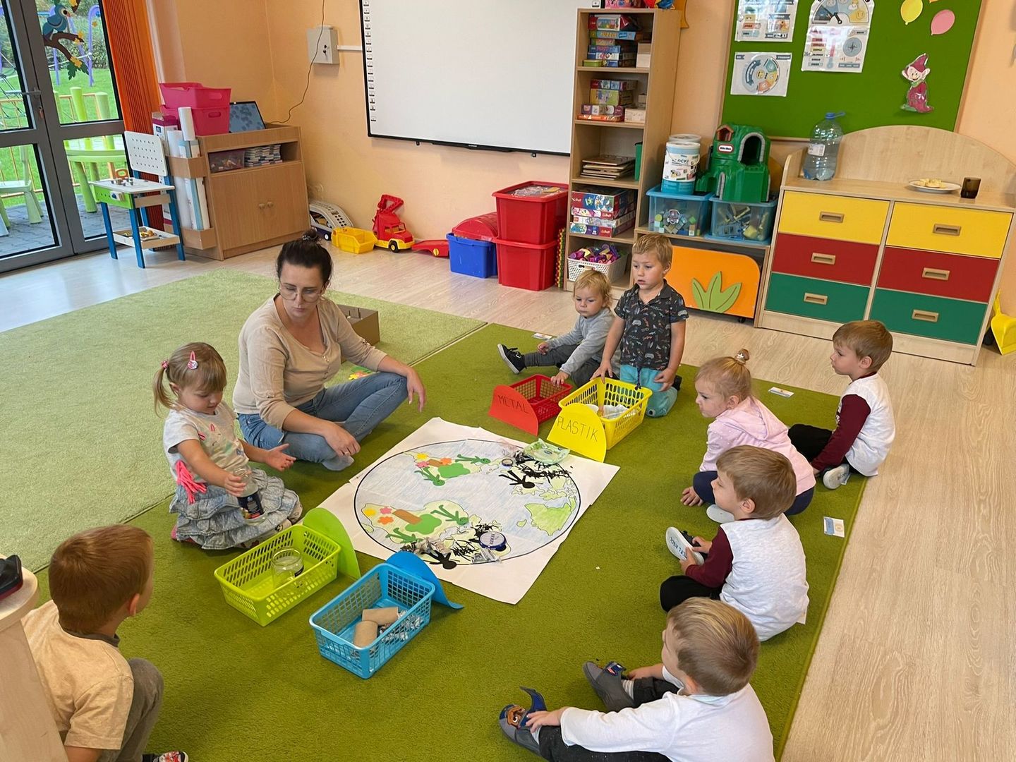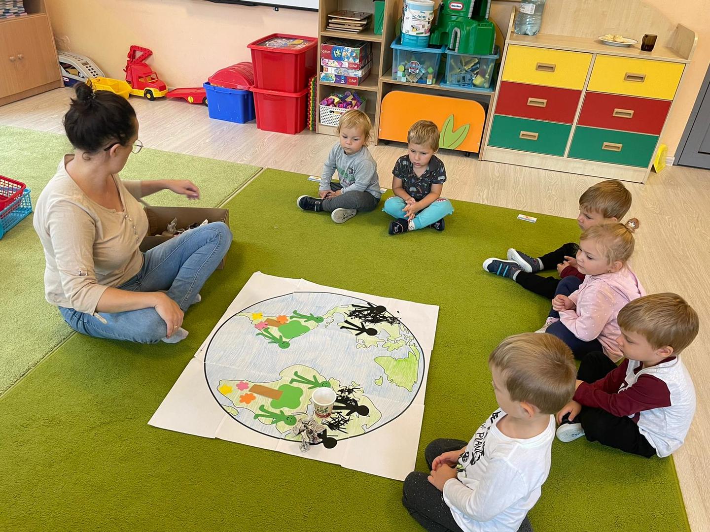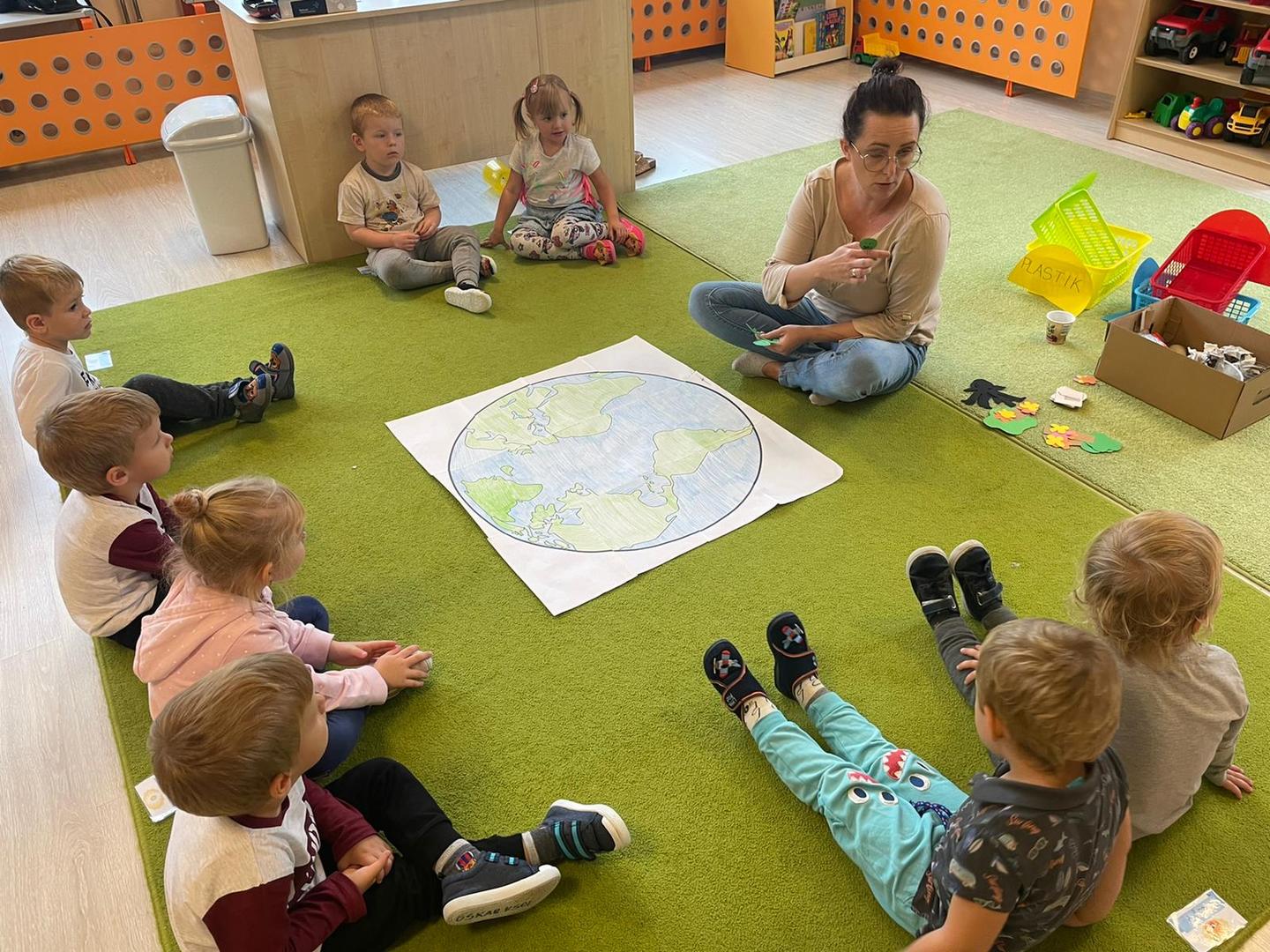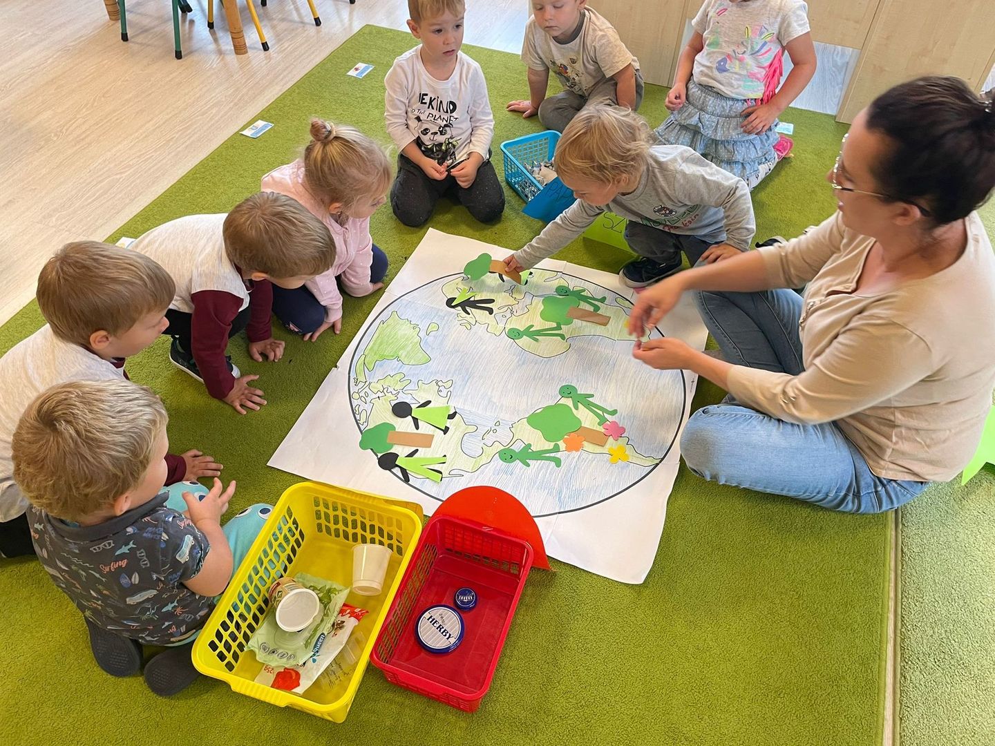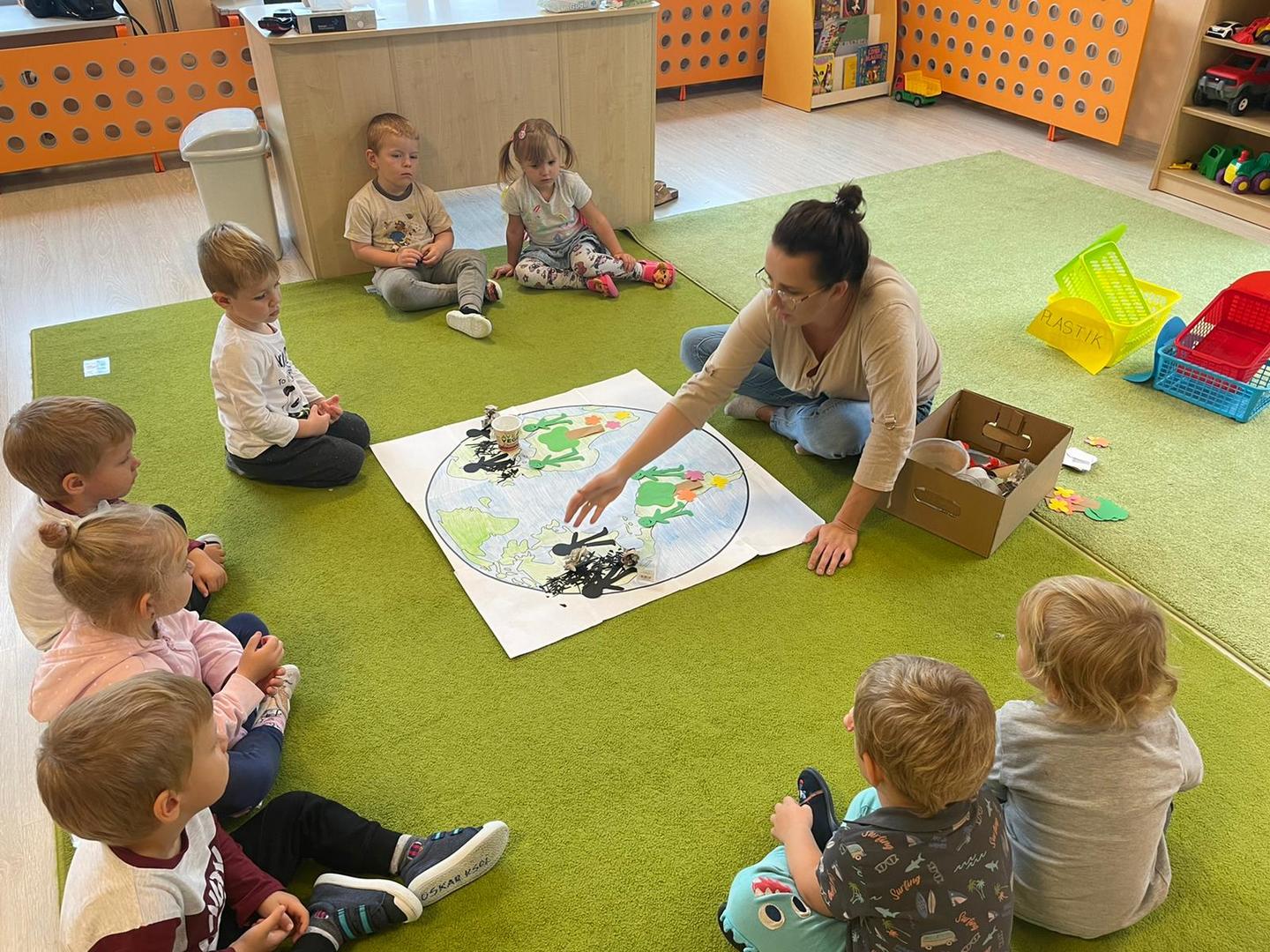 Akcja Sprzątanie świata – Polska jest częścią międzynarodowego ruchu „Clean Up The World”, wywodzącego się z Australii. Uczestniczy w nim blisko 40 milionów wolontariuszy na całym świecie. W Polsce obchodzony jest po raz 28. Nasze Przedszkole już po raz kolejny włączyło się do akcji, która w tym roku została zorganizowana pod hasłem " Myślę więc nie śmiecę". Kierując się tą myślą w naszym przedszkolu zostały przeprowadzone zajęcia dzięki którym dzieci dowiedziały się, że nie warto śmiecić. Każda z pań dostosowała poziom zajęć do poszczególnych grup wiekowych. Starszaki oprócz zajęć teoretycznych wyszły na zewnątrz i zabierając worki na śmieci posprzątały okolice przedszkola.