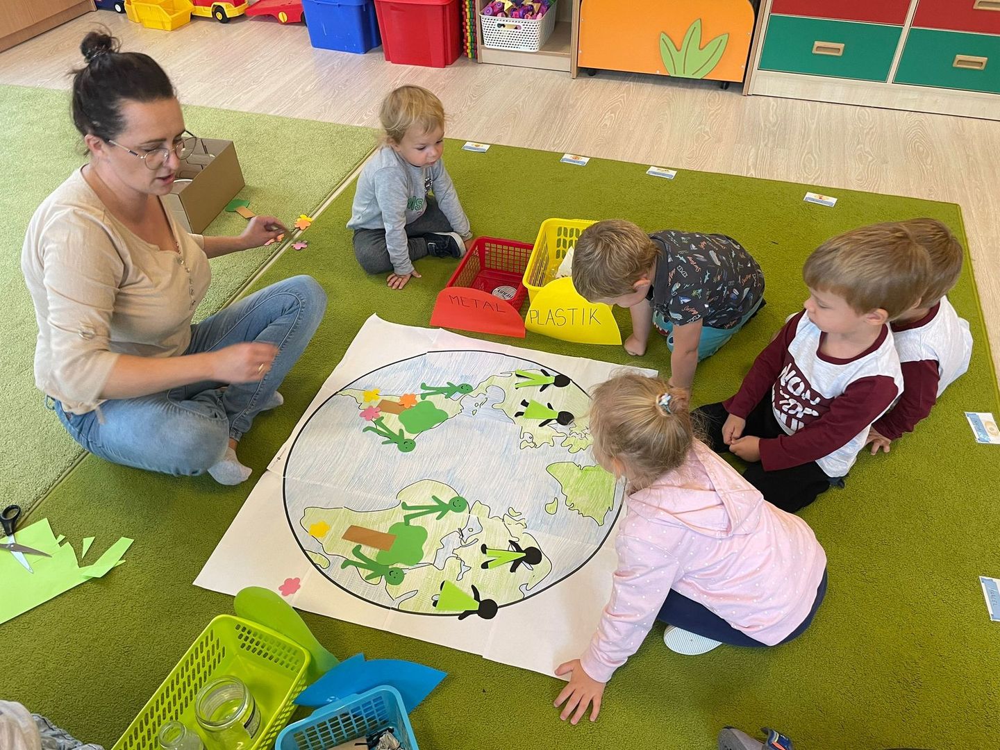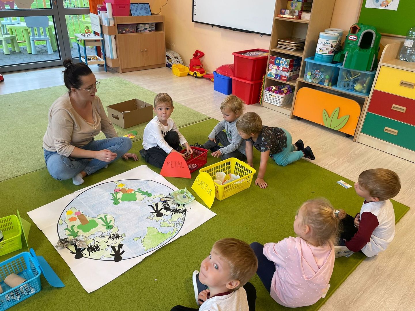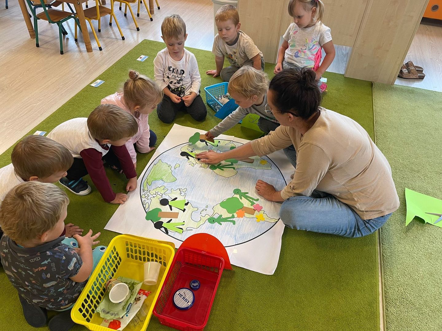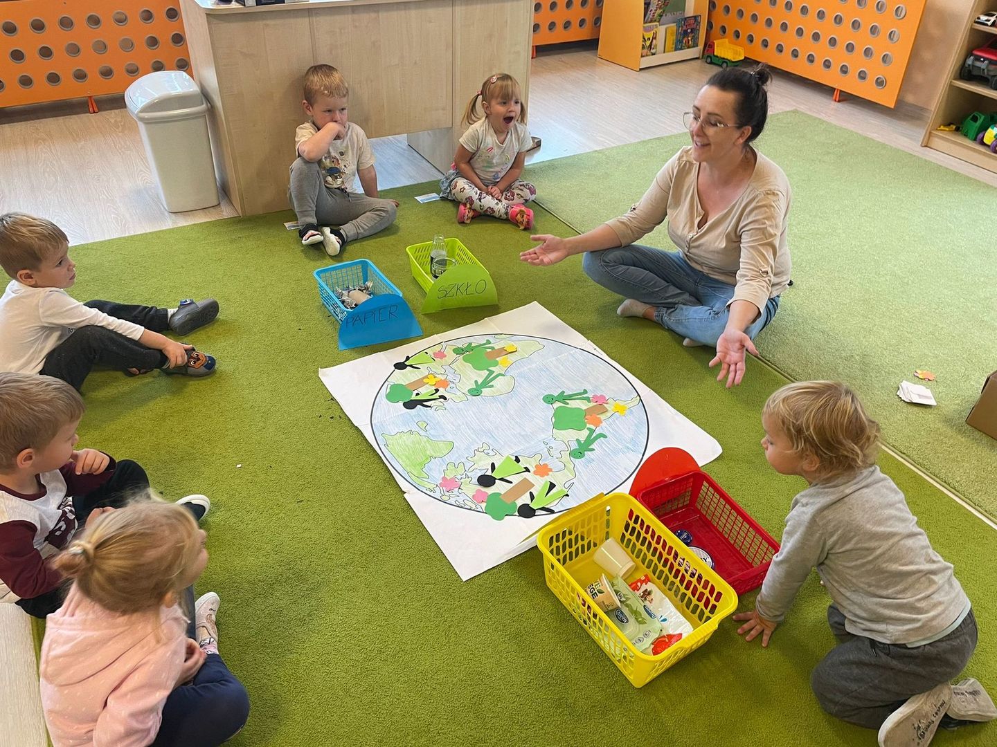 Akcja Sprzątanie świata – Polska jest częścią międzynarodowego ruchu „Clean Up The World”, wywodzącego się z Australii. Uczestniczy w nim blisko 40 milionów wolontariuszy na całym świecie. W Polsce obchodzony jest po raz 28. Nasze Przedszkole już po raz kolejny włączyło się do akcji, która w tym roku została zorganizowana pod hasłem " Myślę więc nie śmiecę". Kierując się tą myślą w naszym przedszkolu zostały przeprowadzone zajęcia dzięki którym dzieci dowiedziały się, że nie warto śmiecić. Każda z pań dostosowała poziom zajęć do poszczególnych grup wiekowych. Starszaki oprócz zajęć teoretycznych wyszły na zewnątrz i zabierając worki na śmieci posprzątały okolice przedszkola.