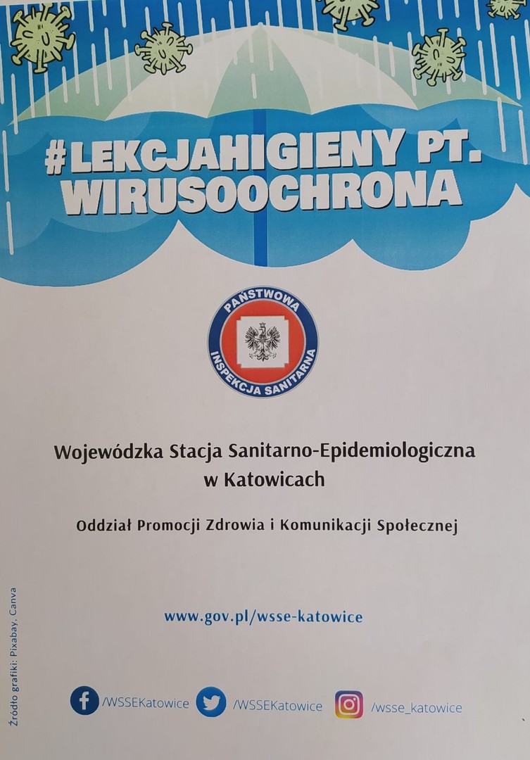 W tym roku szkolnym nasza placówka przyłączyła się do wojewódzkiej akcji #lekcjaHigieny#Wirusoochrona organizowanej przez Śląski Państwowy Wojewódzki Inspektorat Sanitarny