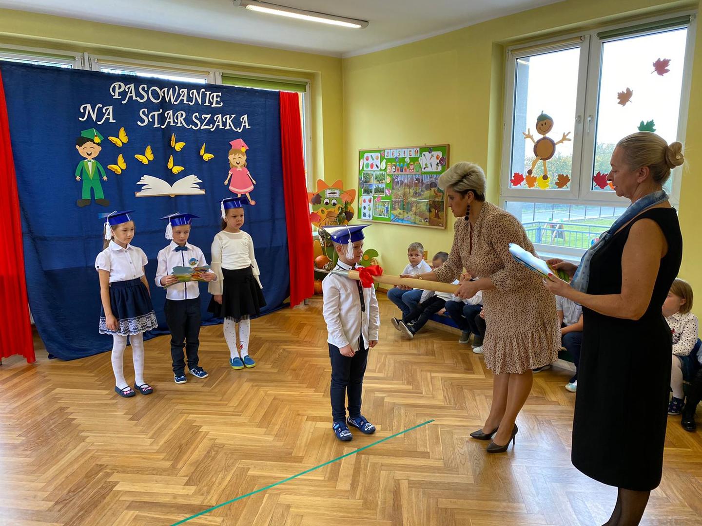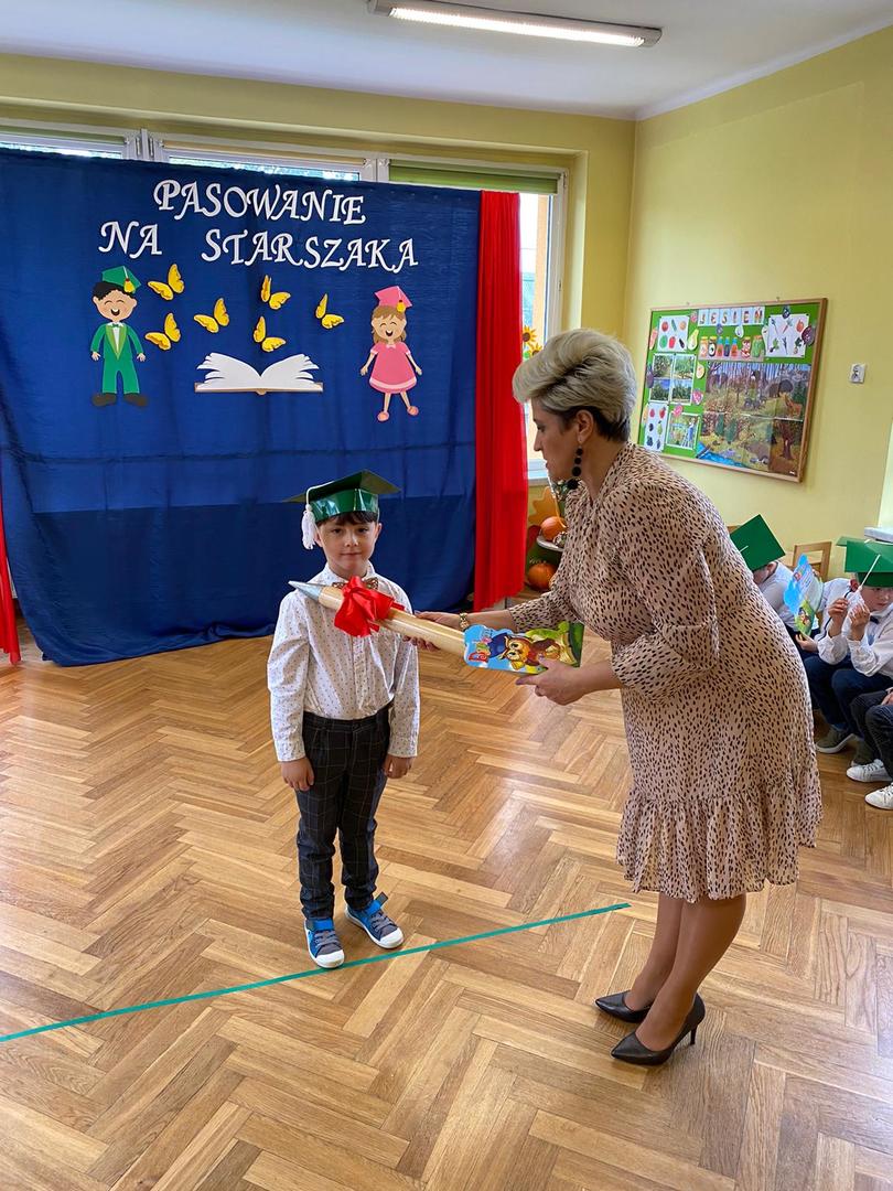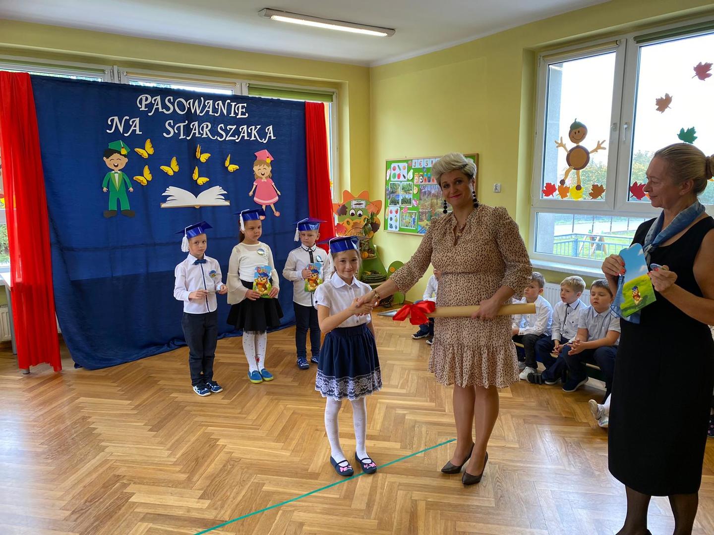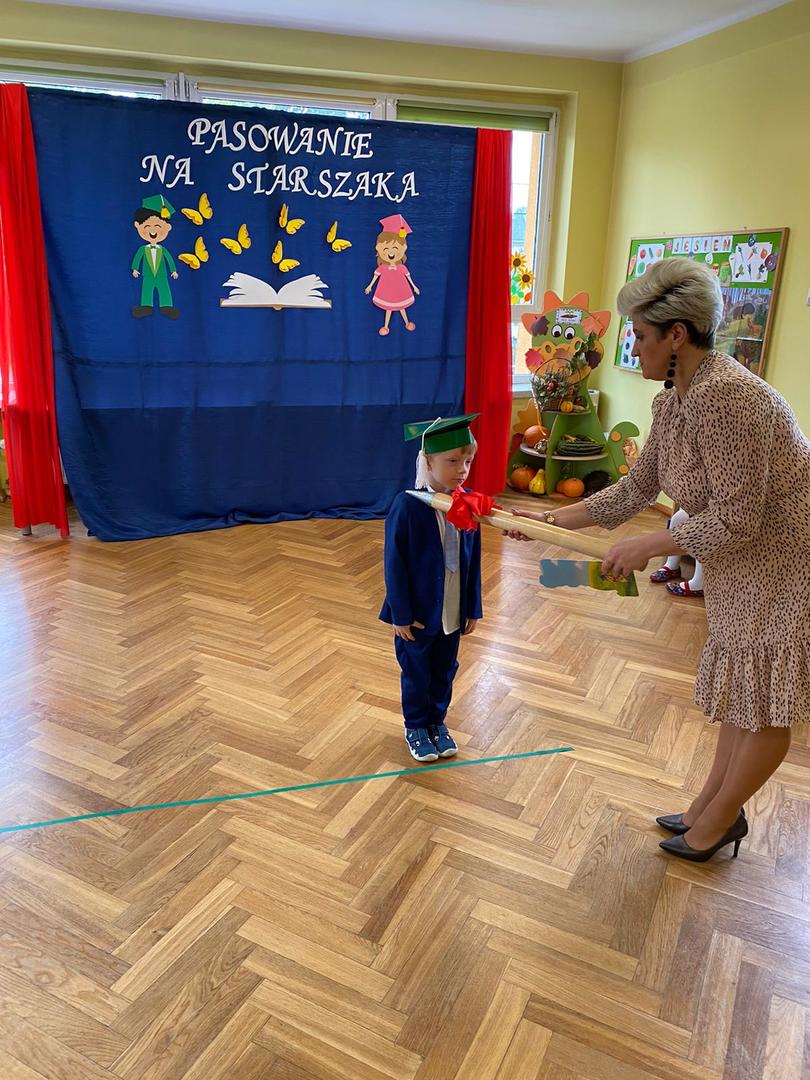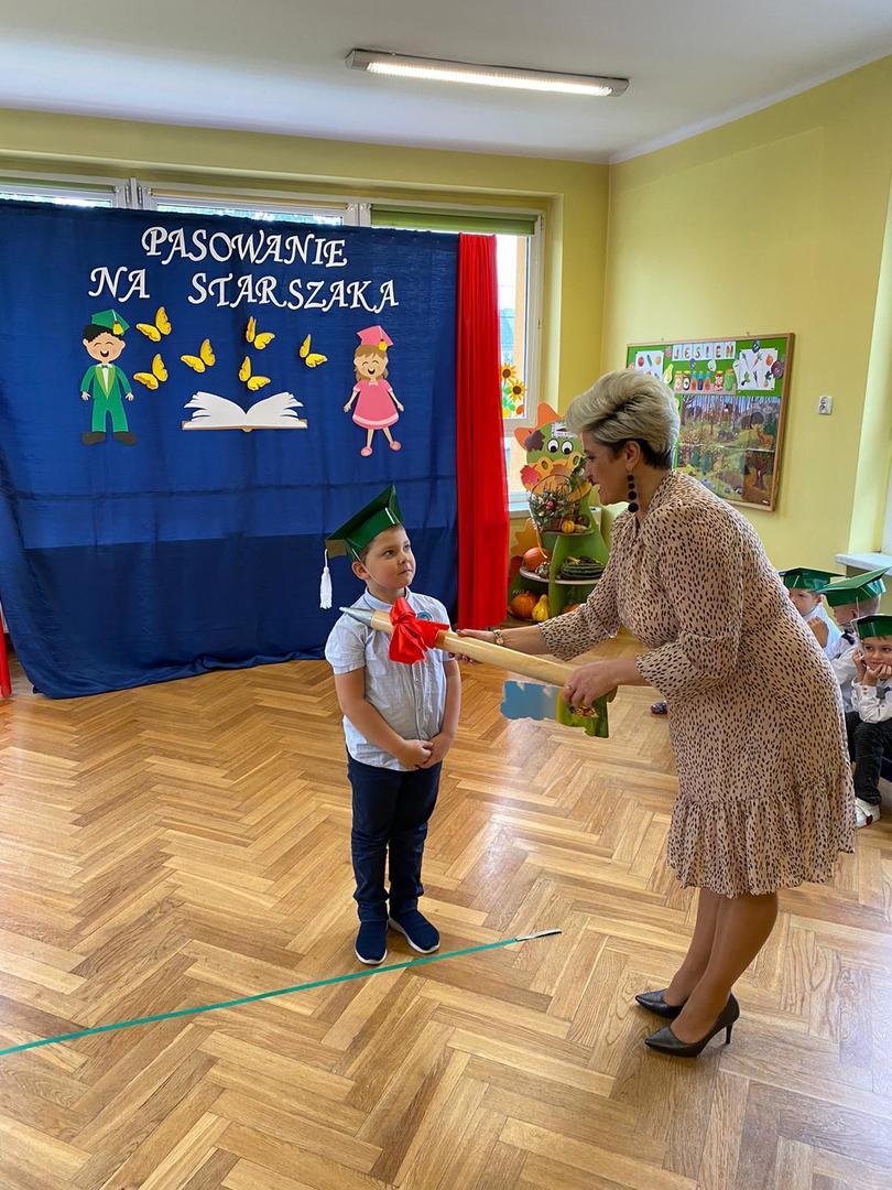 W dniu 14 października w dwóch najstarszych grupach odbyło się pasowanie na starszaka. Dzieci pod kierunkiem wychowawczyń Pań Magdaleny Strzeleckiej i Grażyny Paluch przygotowały programy artystyczne w których zaprezentowały się w tańcu, wierszu i piosence. Po części artystycznej nastąpiło uroczyste ślubowanie a po nim każde dziecko z rąk Pani Dyrektor Eweliny Gawlik zostało pasowane na starszaka. Na pamiątkę tego wyjątkowego dnia dzieci otrzymały dyplomy oraz przypinki.
