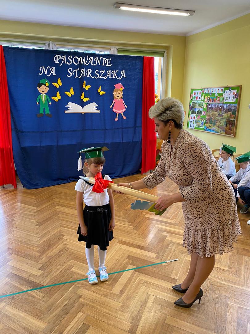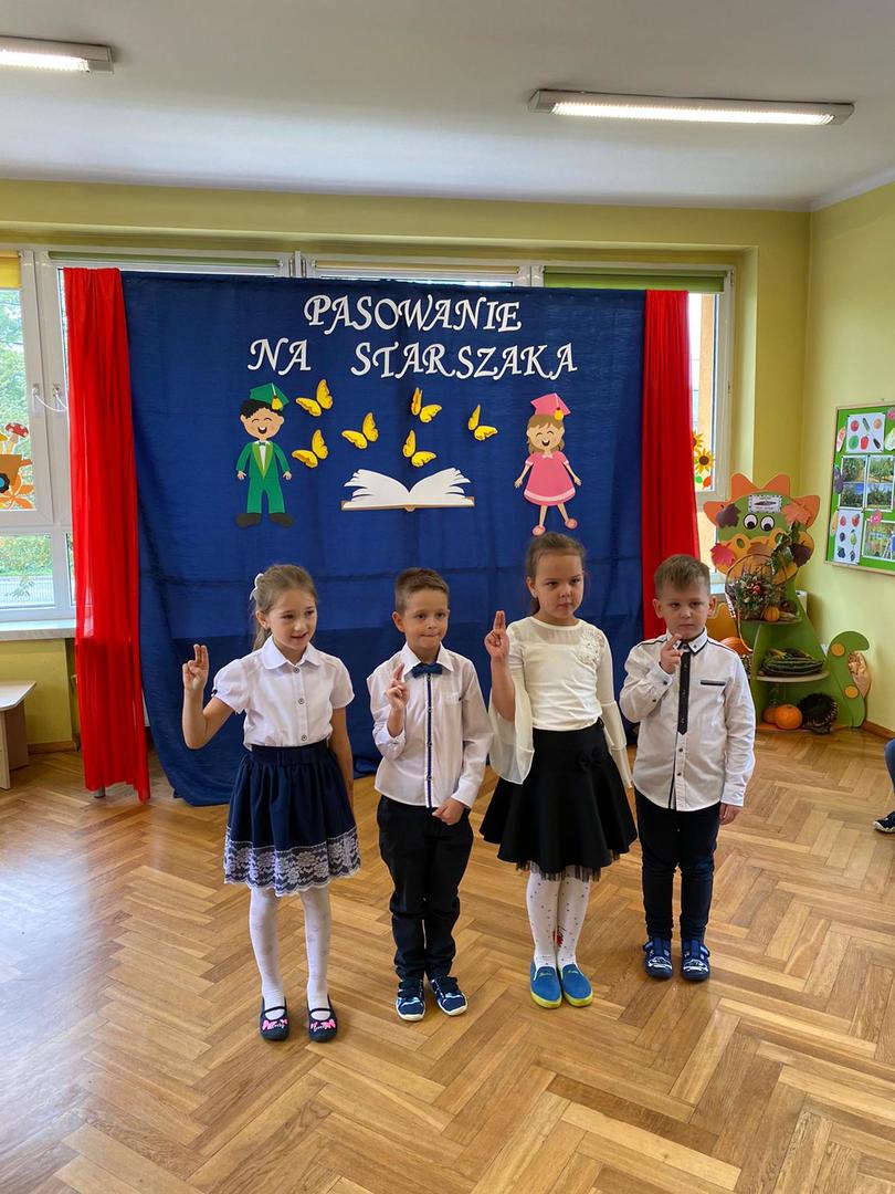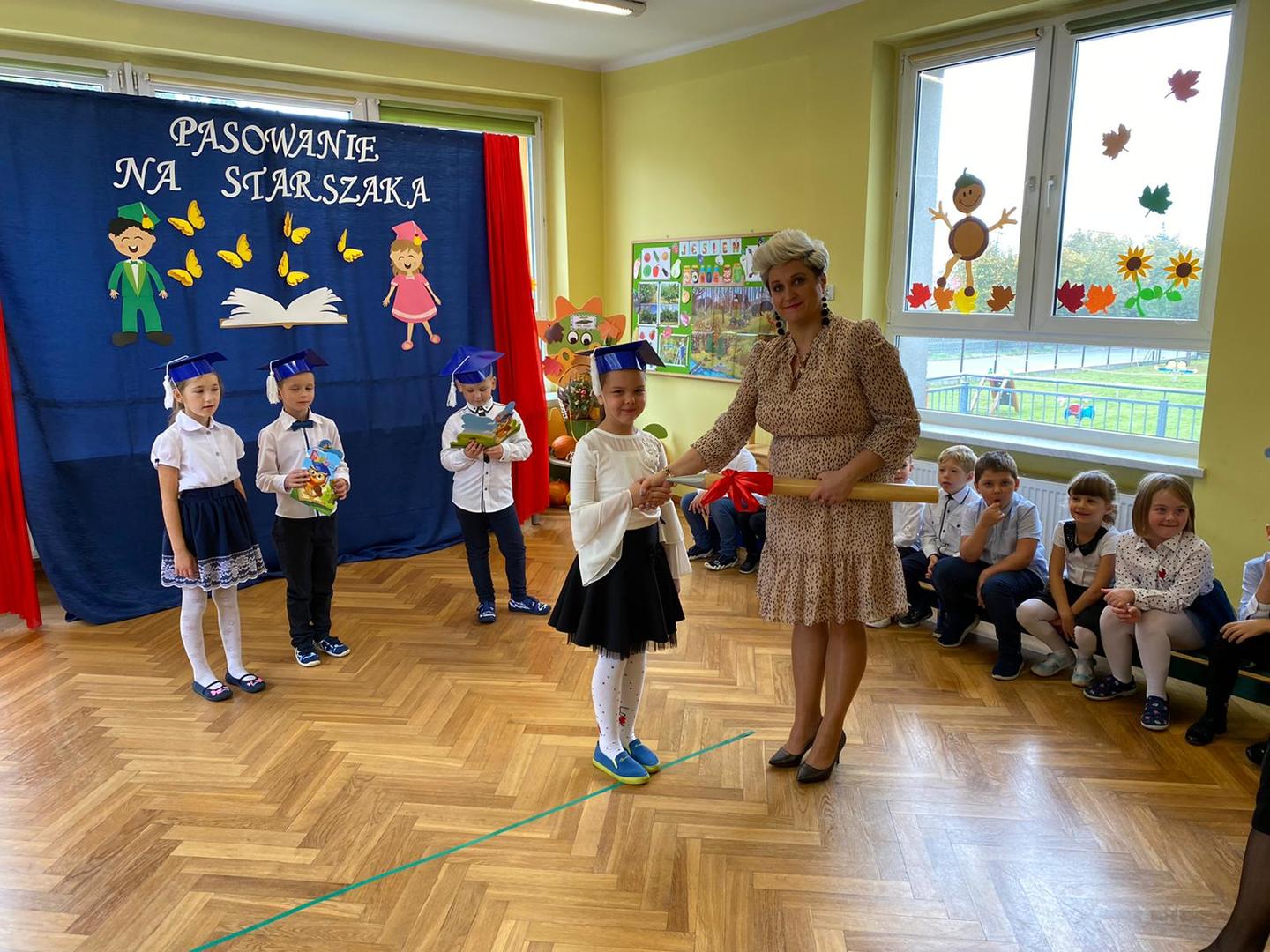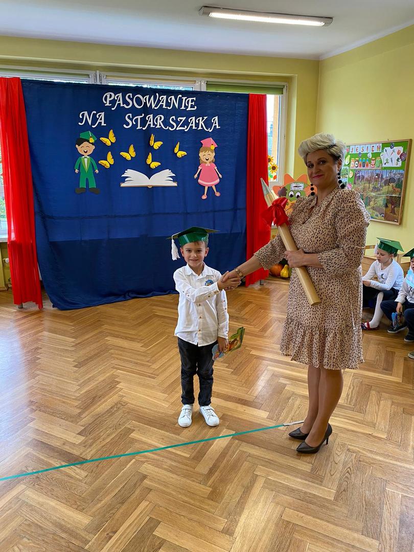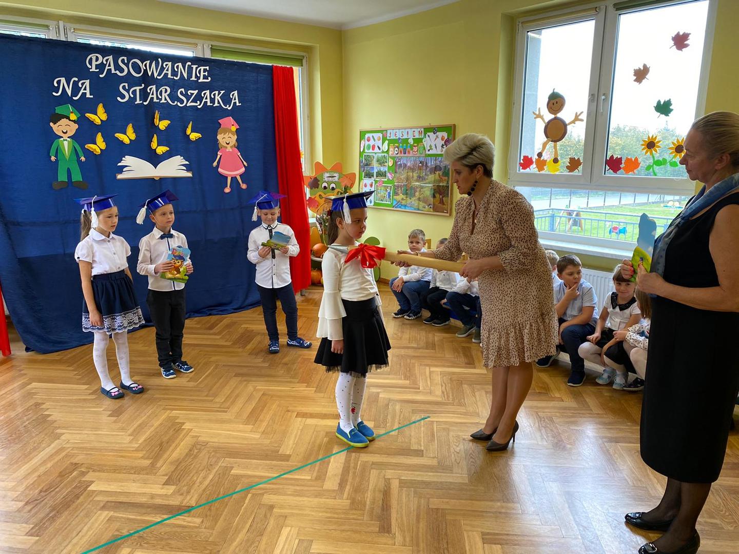 W dniu 14 października w dwóch najstarszych grupach odbyło się pasowanie na starszaka. Dzieci pod kierunkiem wychowawczyń Pań Magdaleny Strzeleckiej i Grażyny Paluch przygotowały programy artystyczne w których zaprezentowały się w tańcu, wierszu i piosence. Po części artystycznej nastąpiło uroczyste ślubowanie a po nim każde dziecko z rąk Pani Dyrektor Eweliny Gawlik zostało pasowane na starszaka. Na pamiątkę tego wyjątkowego dnia dzieci otrzymały dyplomy oraz przypinki.