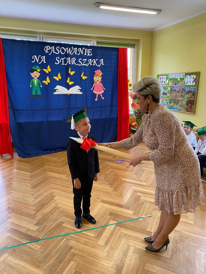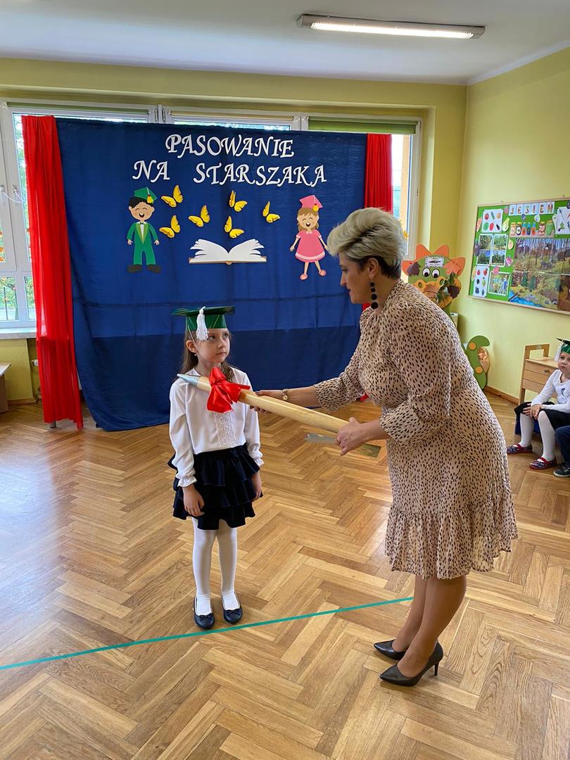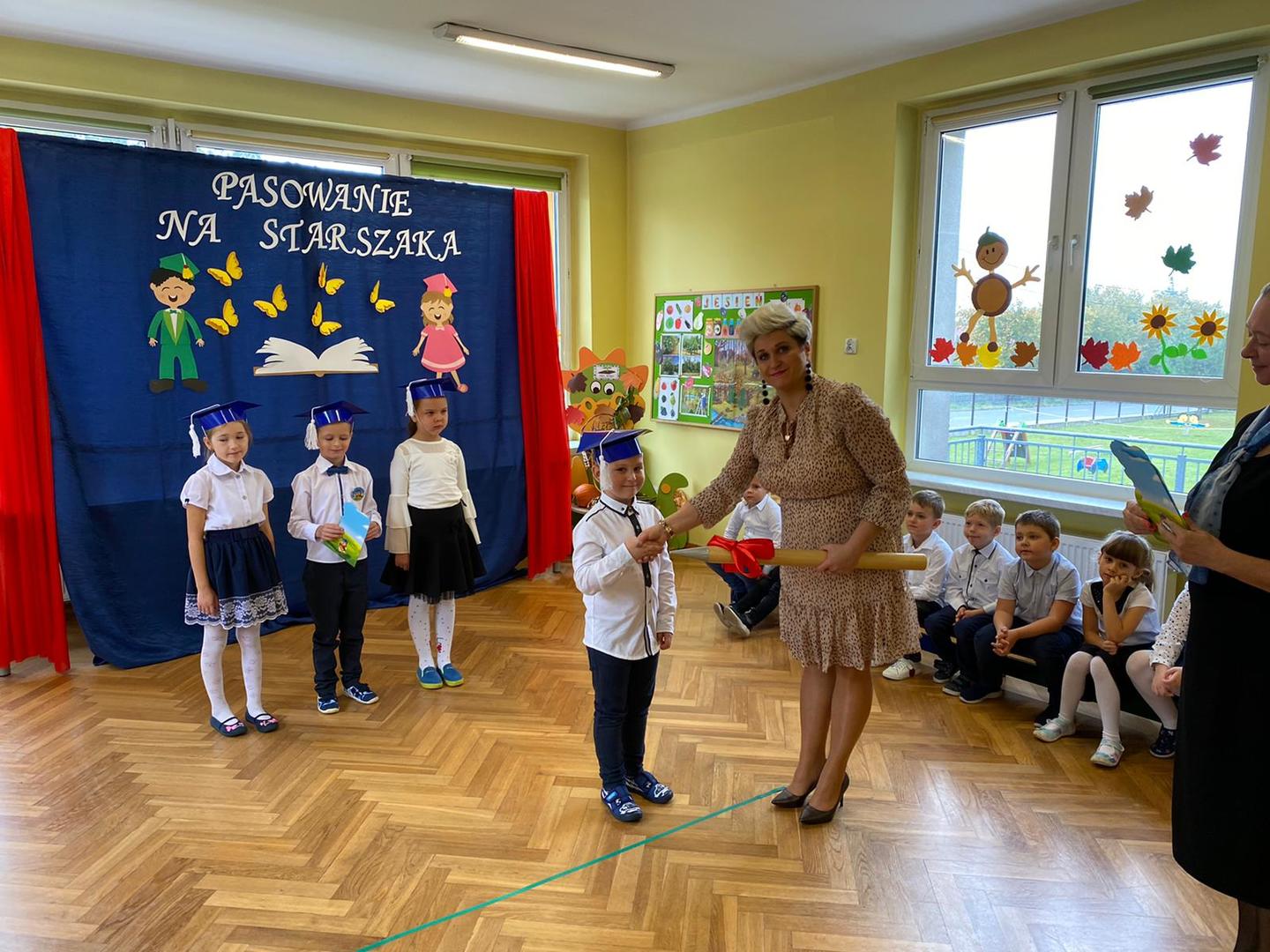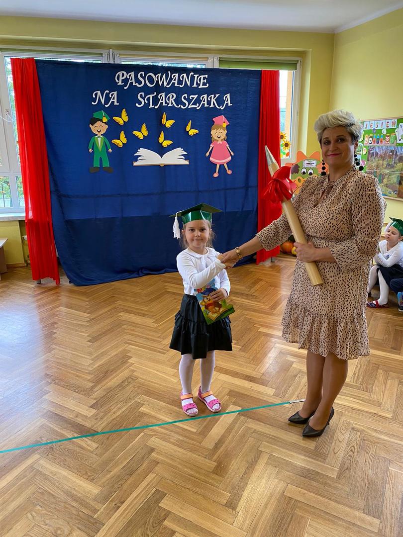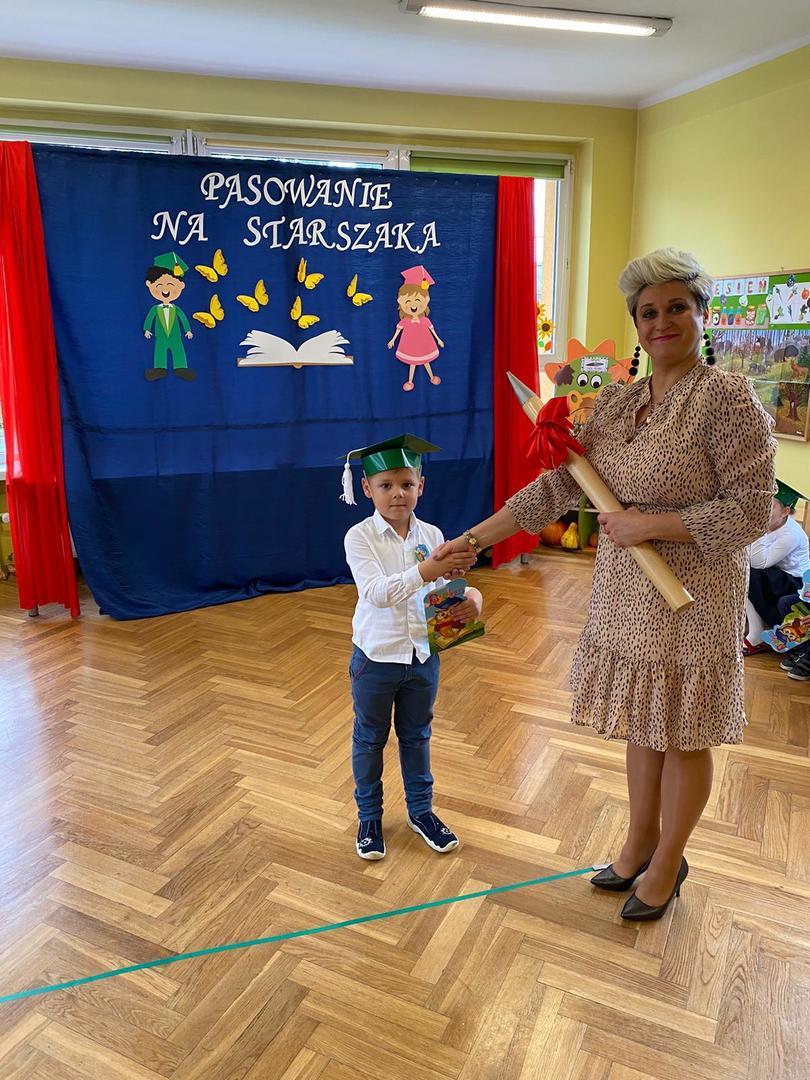 W dniu 14 października w dwóch najstarszych grupach odbyło się pasowanie na starszaka. Dzieci pod kierunkiem wychowawczyń Pań Magdaleny Strzeleckiej i Grażyny Paluch przygotowały programy artystyczne w których zaprezentowały się w tańcu, wierszu i piosence. Po części artystycznej nastąpiło uroczyste ślubowanie a po nim każde dziecko z rąk Pani Dyrektor Eweliny Gawlik zostało pasowane na starszaka. Na pamiątkę tego wyjątkowego dnia dzieci otrzymały dyplomy oraz przypinki.