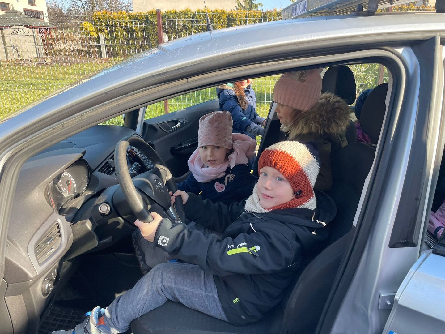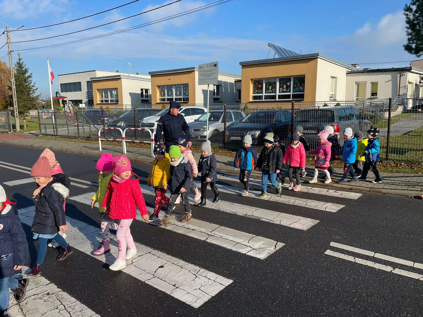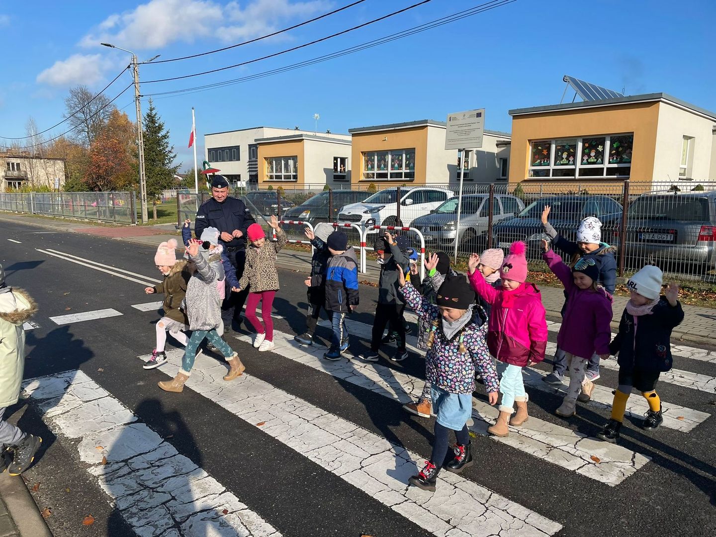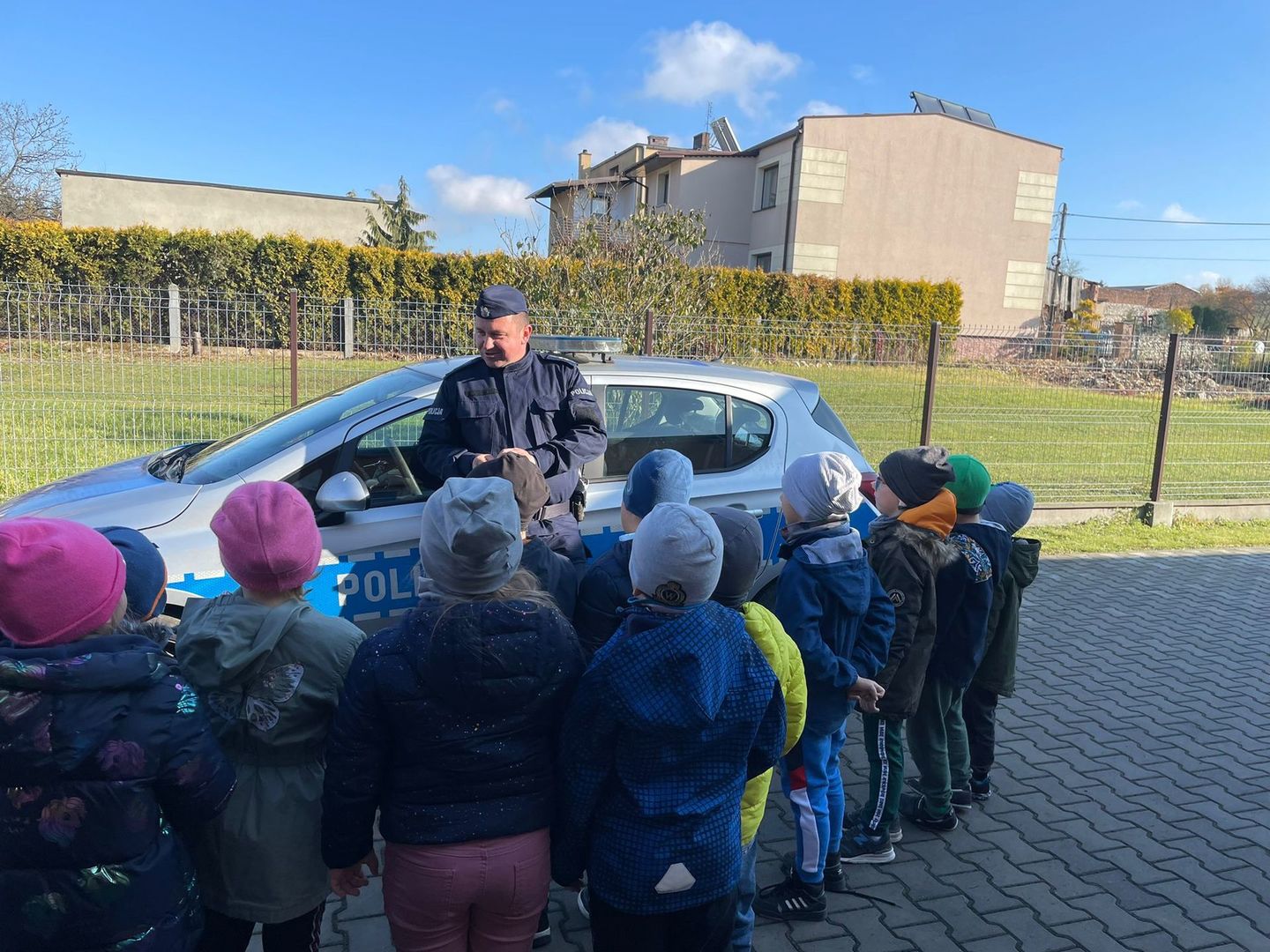 02 listopada 2021r na terenie przedszkola odbyło się spotkanie z policjantem asp. Adamem Blachą z Komisariatu Policji w Woźnikach. Tematem spotkania było utrwalenie zasad ruchu drogowego oraz przypomnienie zagadnień dotyczących bezpieczeństwa dzieci w przedszkolu i w domu. Pan policjant, w formie praktycznej, przypomniał podstawowe zasady przechodzenia przez jezdnię. Dzieci z dużym zainteresowaniem słuchały rad i wskazówek zaproszonego gościa. Na zakończenie chętne dzieci mogły usiąść w radiowozie. Dziękujemy i zapraszamy ponownie.