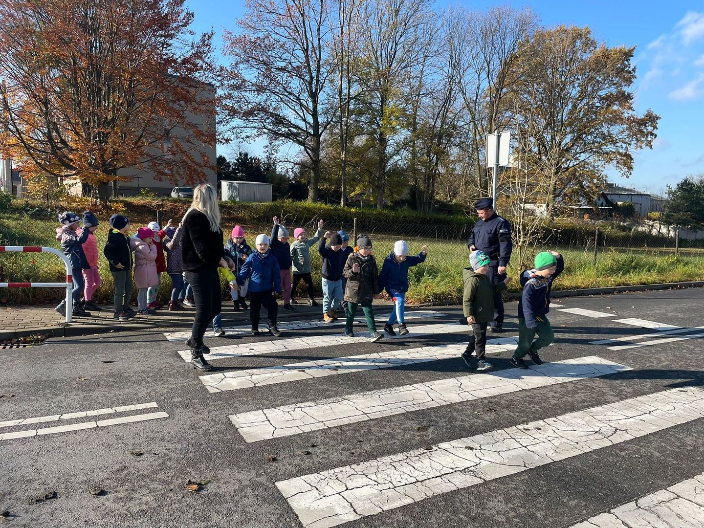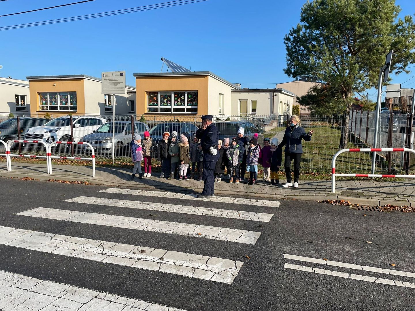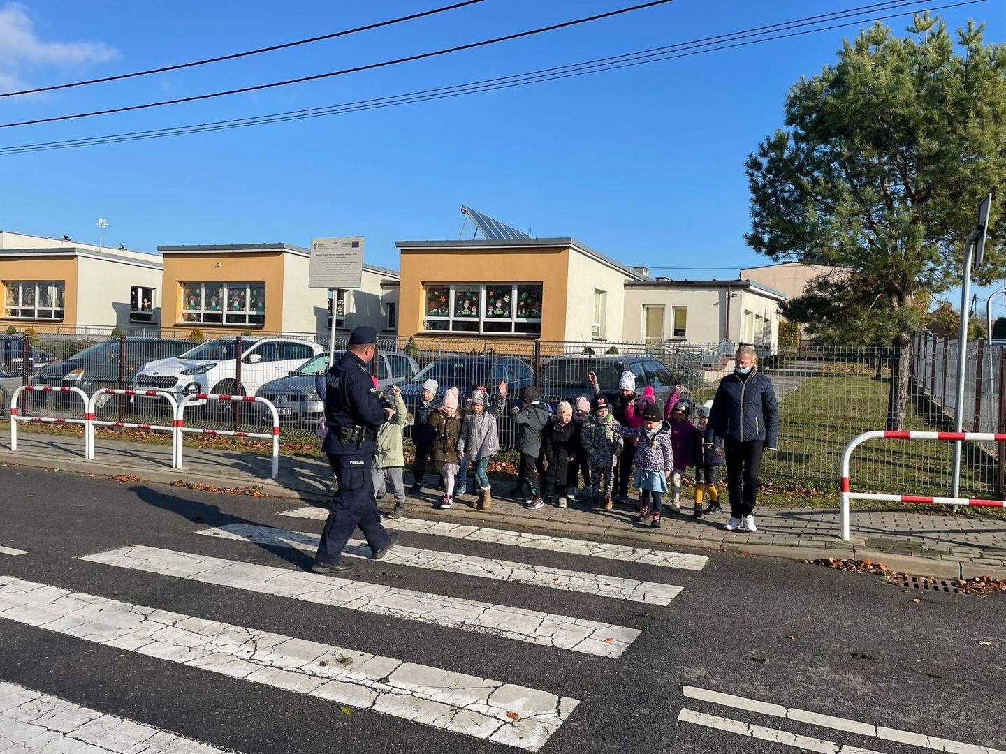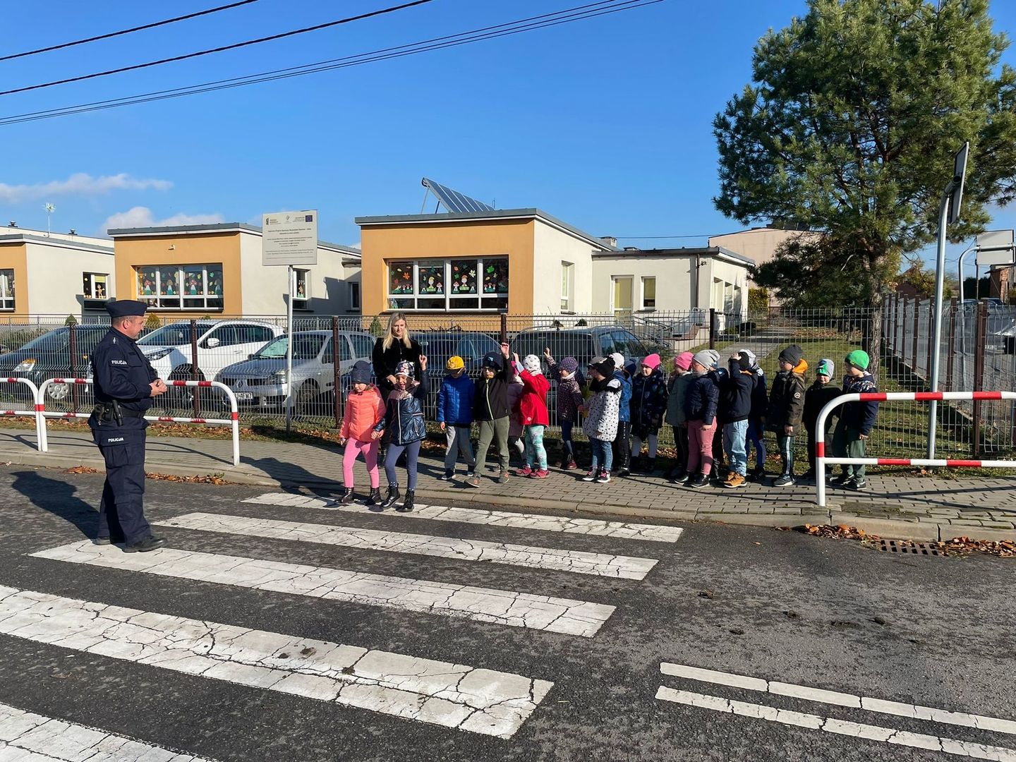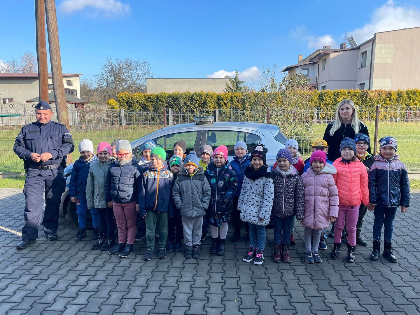 02 listopada 2021r na terenie przedszkola odbyło się spotkanie z policjantem asp. Adamem Blachą z Komisariatu Policji w Woźnikach. Tematem spotkania było utrwalenie zasad ruchu drogowego oraz przypomnienie zagadnień dotyczących bezpieczeństwa dzieci w przedszkolu i w domu. Pan policjant, w formie praktycznej, przypomniał podstawowe zasady przechodzenia przez jezdnię. Dzieci z dużym zainteresowaniem słuchały rad i wskazówek zaproszonego gościa. Na zakończenie chętne dzieci mogły usiąść w radiowozie. Dziękujemy i zapraszamy ponownie.