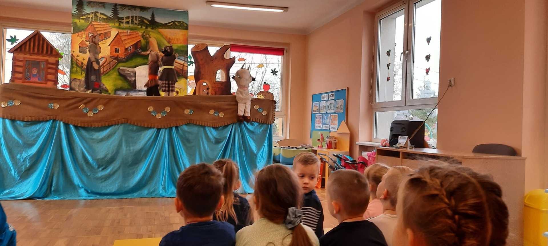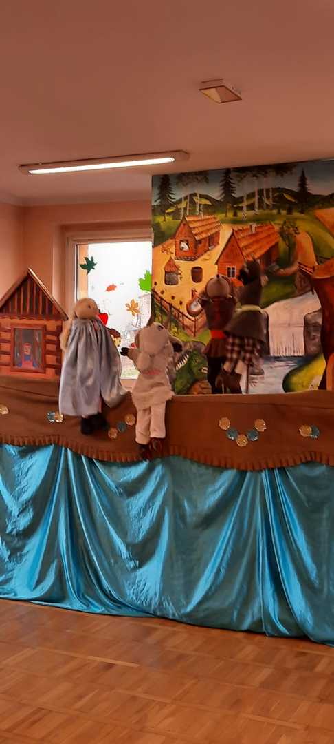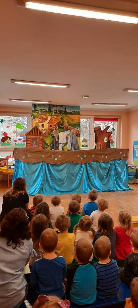 Dnia 09 listopada 2021r nasze przedszkole odwiedził teatr "Pinokio" z Nowego Sącza. Dzieci miały okazję zobaczyć przedstawienie kukiełkowe "Kłamstwa kozy". Spektakl w sposób humorystyczny ukazał, że kłamstwo ma krótkie nogi, a w życiu nie należy oszukiwać i żerować na cudzej dobroci. Dzieci w z wielkim zainteresowaniem śledziły cały spektakl. Było to bardzo udane spotkanie a radość jaką sprawiło same przedstawienie było czymś co pozostanie na długo w naszej pamięci.
