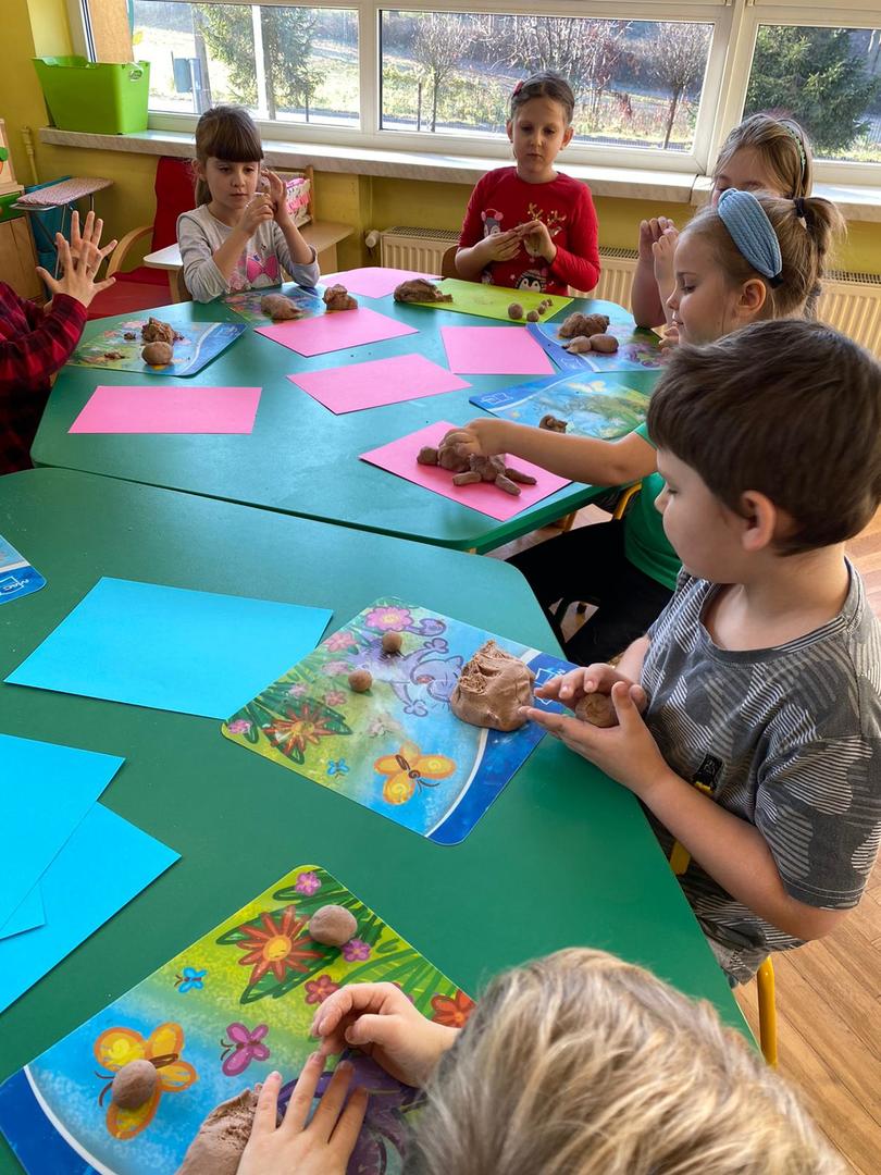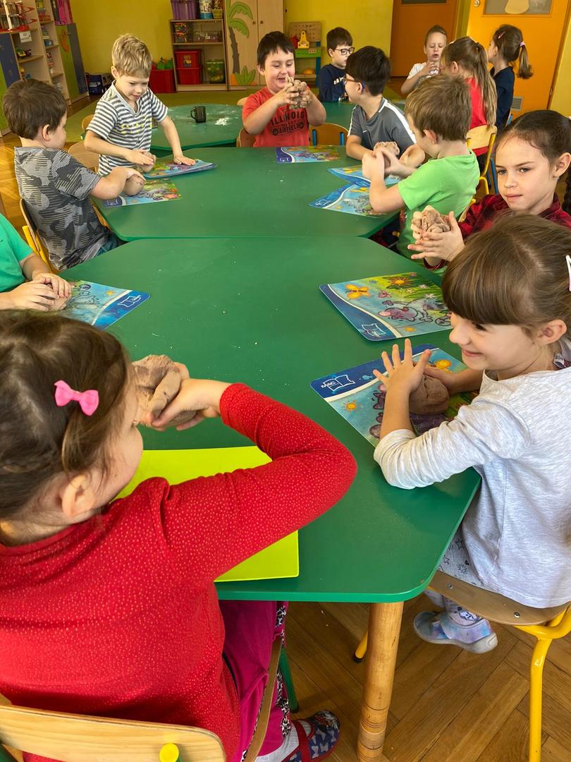 A działo się naprawdę wiele: były zabawy, piosenki, prace plastyczne, zadania z misiem w roli głównej, zabawy masą solną, a nawet wirtualne zadania, które rozwiązywała nasza najstarsza grupa.