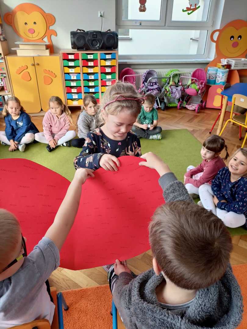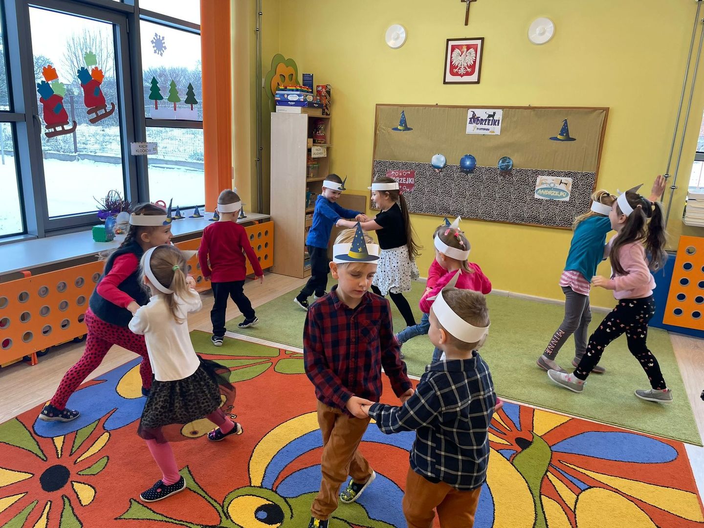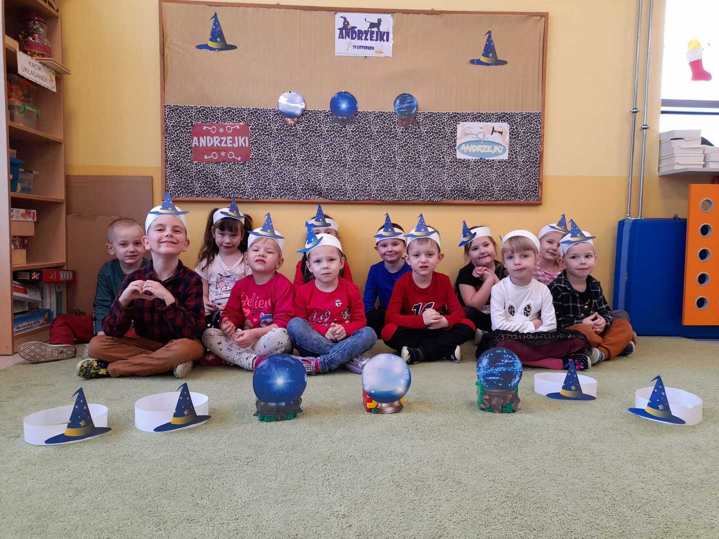 W naszym przedszkolu co roku podtrzymujemy tradycje związane z „Andrzejkami”. Temu wydarzeniu towarzyszyły konkursy, zabawy i wróżby andrzejkowe. Wszystko to odbywało się w rytm tańców i śpiewów. Nie zabrakło również tradycyjnego ustawiania „bucików”, „losowania rekwizytów” i innych wróżb związanych z tym świętem. Przedszkolaki z uśmiechem na twarzy chętnie brały udział w magicznym rytuale andrzejkowym.