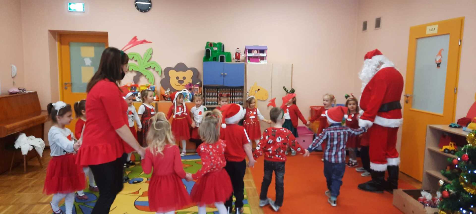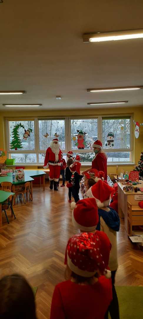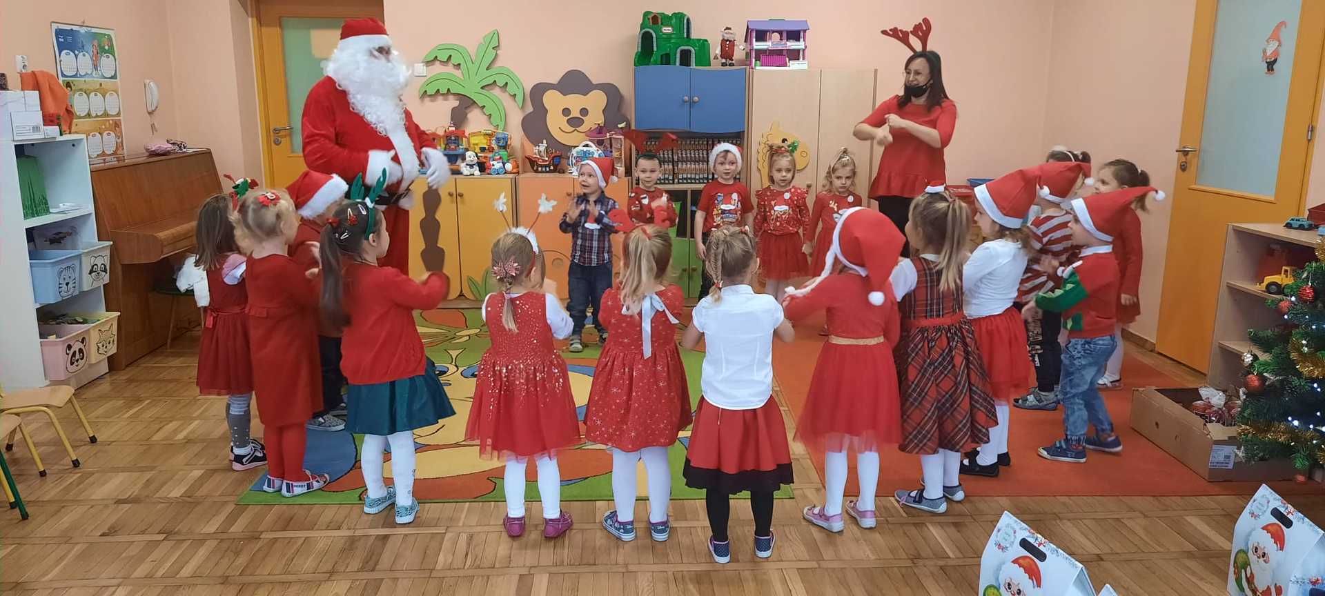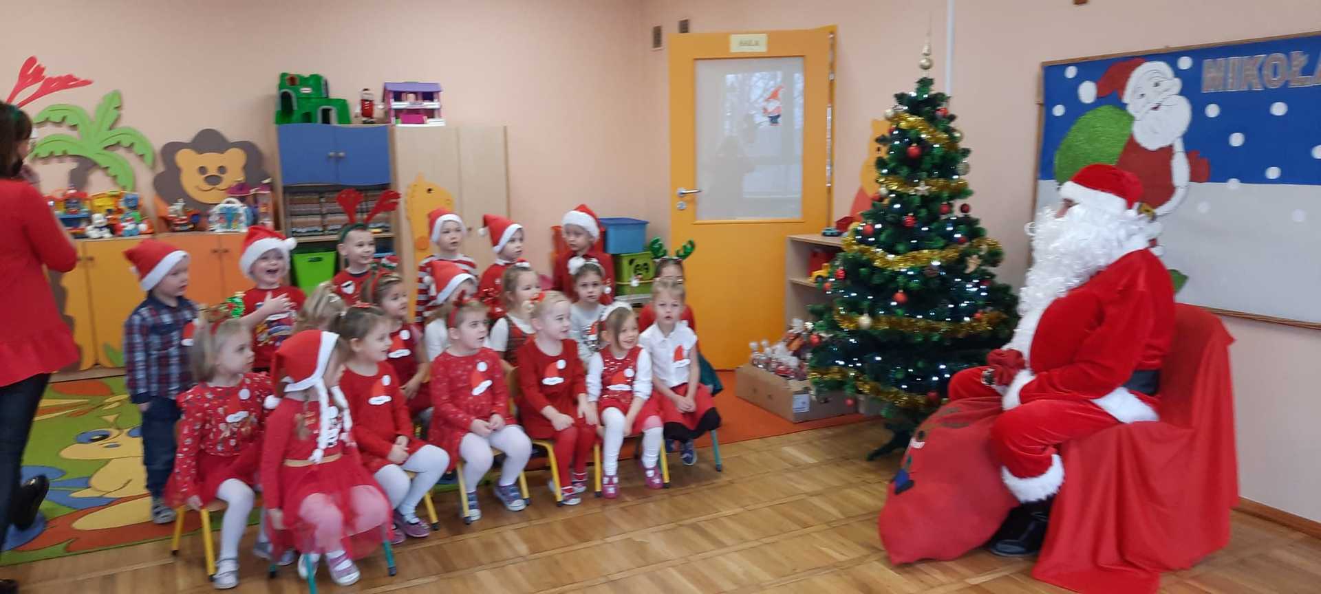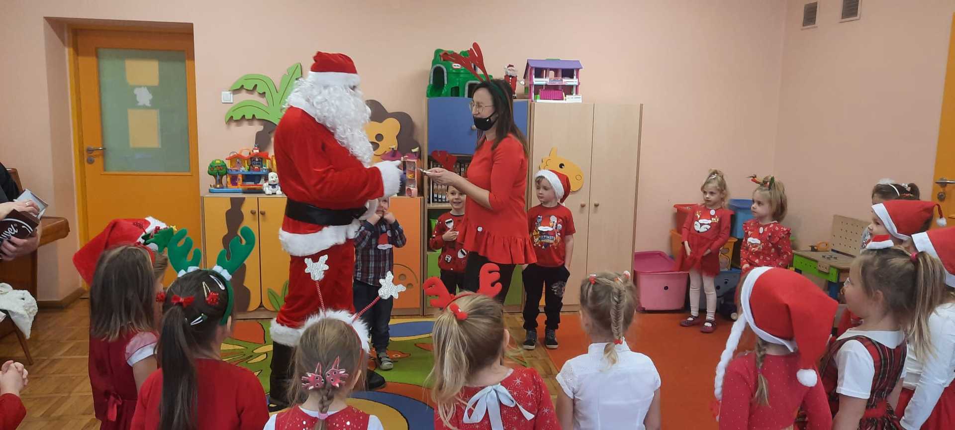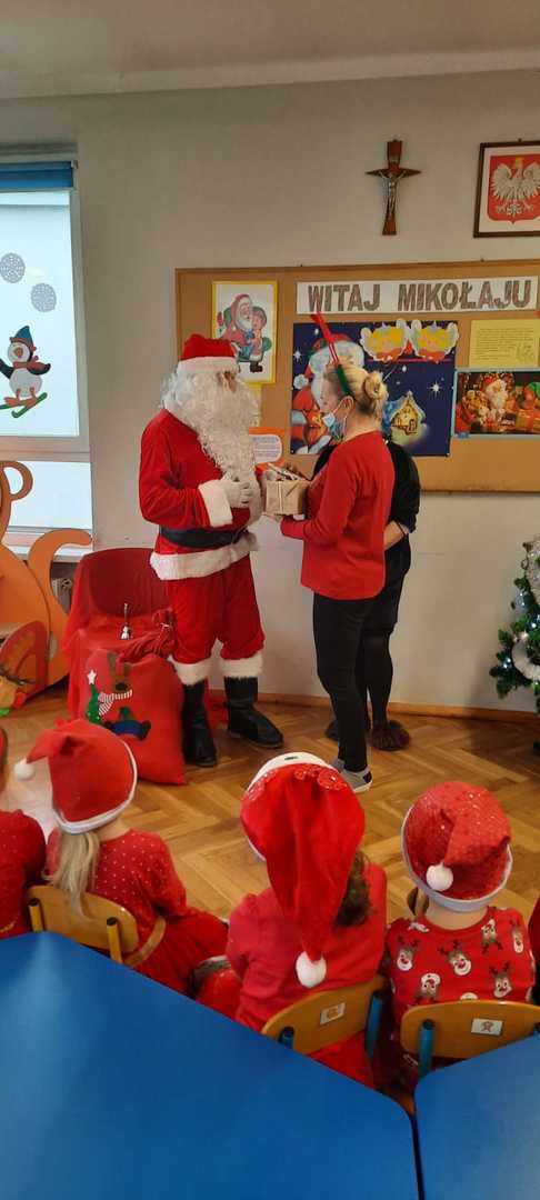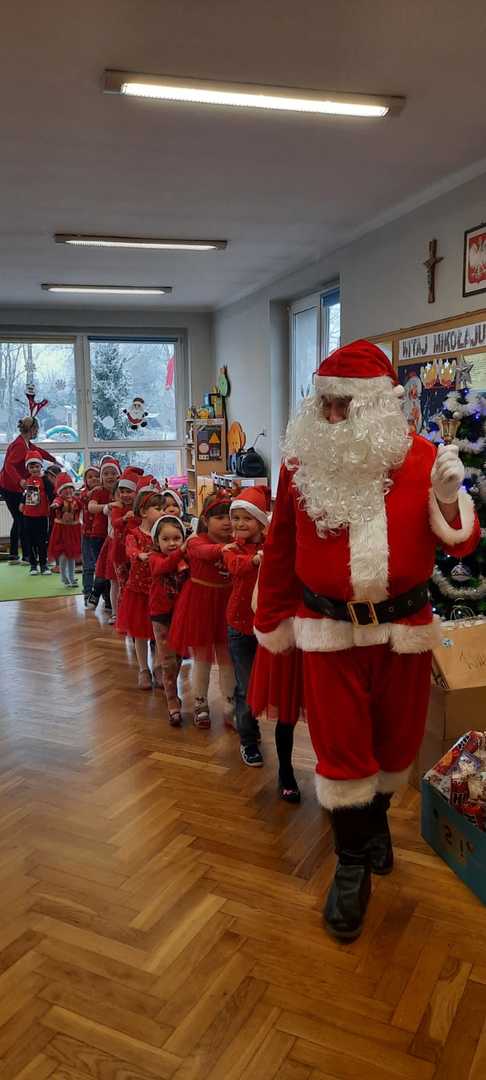 W poniedziałek 6 grudnia przedszkolaki już od rana czekały na Mikołaja. Dzieci nadsłuchiwały dźwięku dzwoneczków, które słychać było z daleka. I już wiadomo było, że do przedszkola zbliża się nikt inny, jak Święty Mikołaj we własnej osobie. Mikołaj nie zawiódł dzieci i nie kazał długo na siebie czekać. Już od samego rana zawitał do naszej placówki. Wszystkie przedszkolaki bardzo przeżywały to spotkanie, szczególnie te, które pierwszy raz witały Mikołaja w przedszkolu. Długo oczekiwany gość wywołał uśmiech na twarzach przedszkolaków. Dzieci z ogromną radością przywitały Mikołaja śpiewając mu piosenki i recytując wiersze. Każde dziecko złożyło obietnice, iż kolejny rok będzie grzeczne i posłuszne. Na zakończenie Święty Mikołaj wszystkim przedszkolakom osobiście przekazał piękne prezenty, a w nich – dla każdego coś dobrego.
